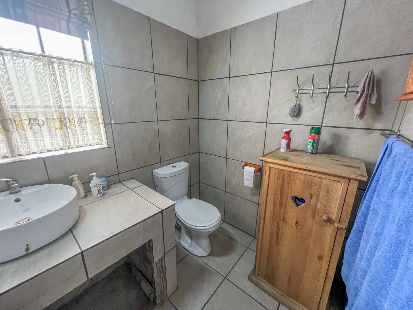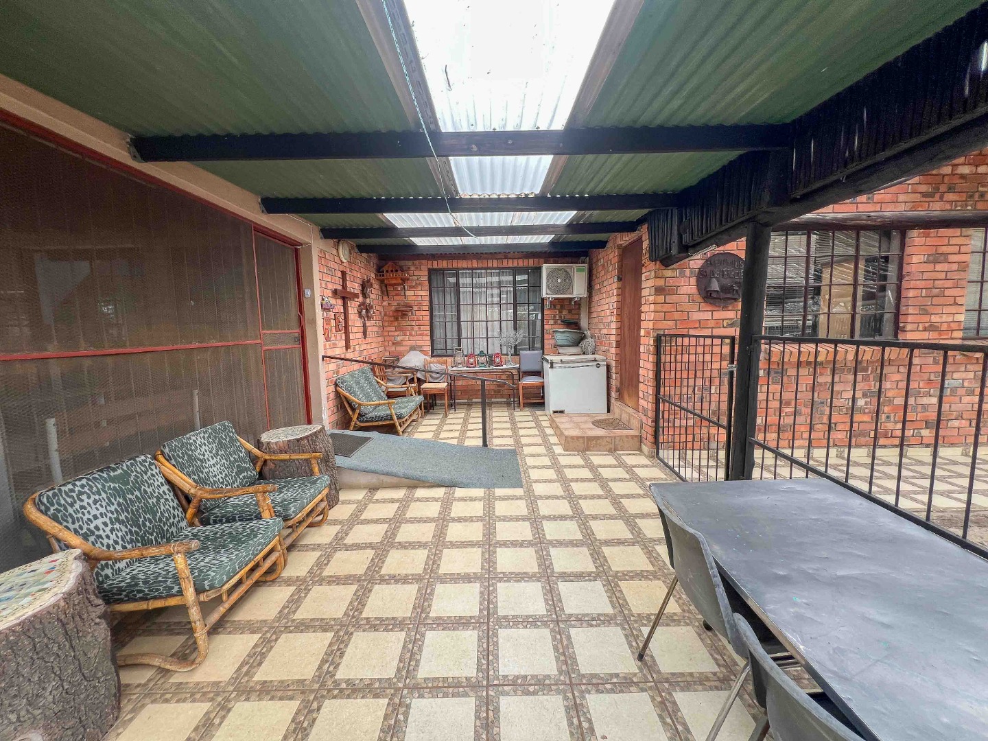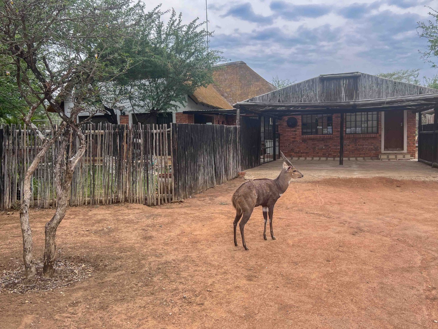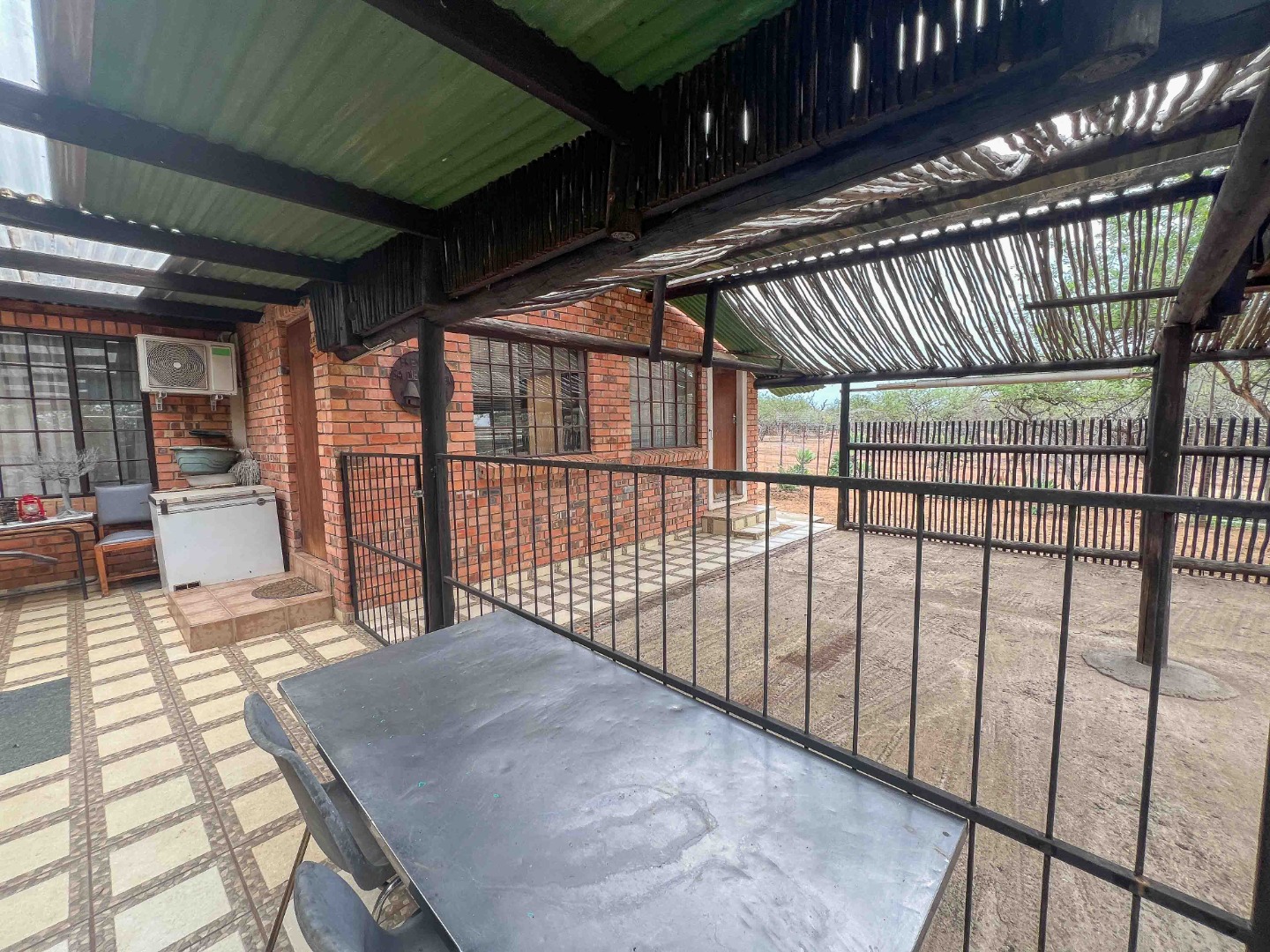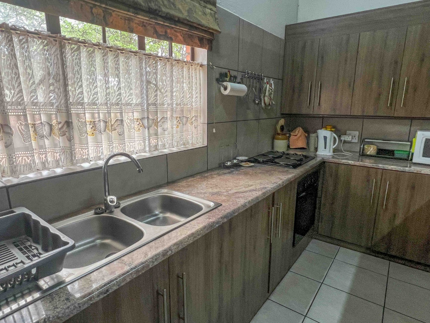 Experience unique wildlife estate living in Marloth Park with this charming 3-bedroom, 2-bathroom home. Spanning a 2000 sqm erf, the property showcases a rustic aesthetic with durable brick construction and a distinctive thatched roof featuring exposed wooden beams. The interior offers an inviting open-plan living space with high vaulted ceilings and tiled flooring, alongside a dedicated family TV room and a functional kitchen. A versatile mezzanine level/loft, complete with hardwood floors, provides additional flexible space.