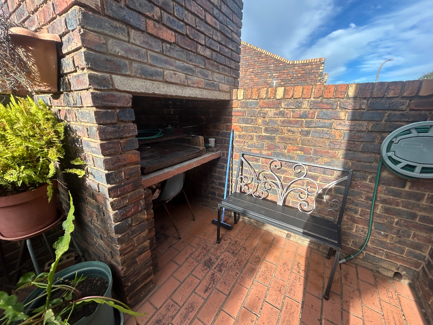 Outdoor living is a highlight, with a private patio area providing an ideal spot for alfresco dining or quiet contemplation. This space includes a built-in braai, perfect for enjoying South African outdoor cooking.