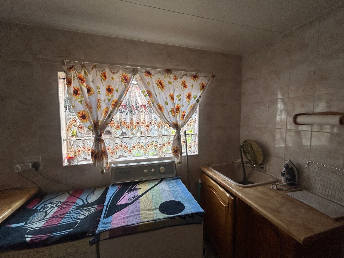 The functional kitchen is well-equipped to meet daily needs, while practical additions like a laundry area and ample storage enhance convenience. The back door opens onto the private court yard