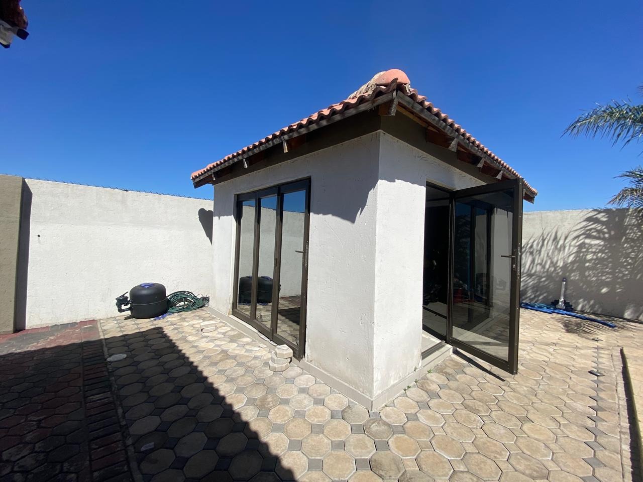 This inviting four-bedroom, three-and-a-half-bathroom residence offers comfortable family living in the desirable suburban area of Aerorand, Middelburg. Designed for practicality and ease, the home features a well-appointed kitchen, a dedicated dining room, and a spacious lounge, providing ample space for both daily routines and entertaining guests. The layout ensures a seamless flow between these essential living areas, catering to a modern lifestyle. The property boasts four generously sized bedrooms, offering private retreats for all family members. With three and a half bathrooms, including facilities for guests, convenience is prioritised. While specific finishes are not detailed, the overall design supports a functional and adaptable living environment, ready for personal touches. Outdoor living is enhanced by a refreshing swimming pool, perfect for relaxation and recreation during warmer months. The property includes a double garage and an additional parking space, ensuring secure accommodation for vehicles. Practical paving surrounds the home, contributing to a neat and low-maintenance exterior. Pets are permitted, making this an ideal home for animal lovers. Security is a key consideration, with an alarm system and electric fencing providing peace of mind for residents. Located in Aerorand, a well-established suburban neighbourhood in Middelburg, the property benefits from a tranquil setting while remaining accessible to local amenities and services. This area is known for its family-friendly atmosphere and community feel. Key Features: * Four Bedrooms * Three and a Half Bathrooms * Well-appointed Kitchen * Dedicated Dining Room * Spacious Lounge * Refreshing Swimming Pool * Double Garage * Additional Parking * Alarm System * Electric Fencing
