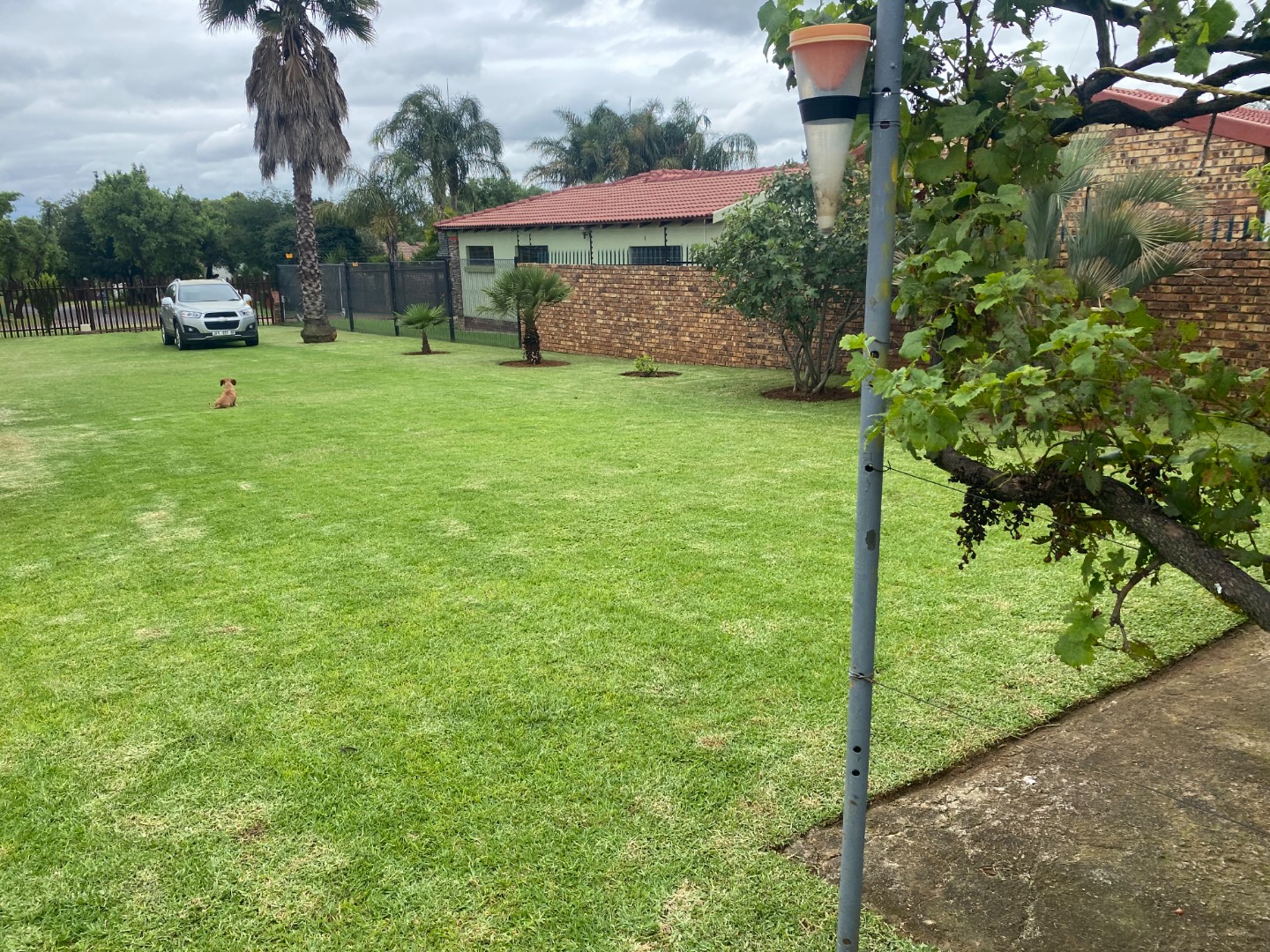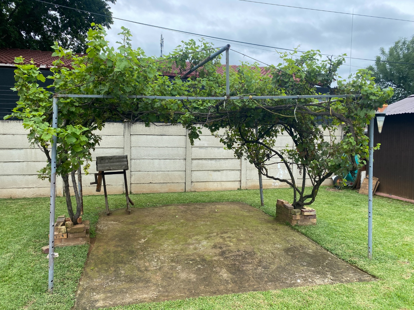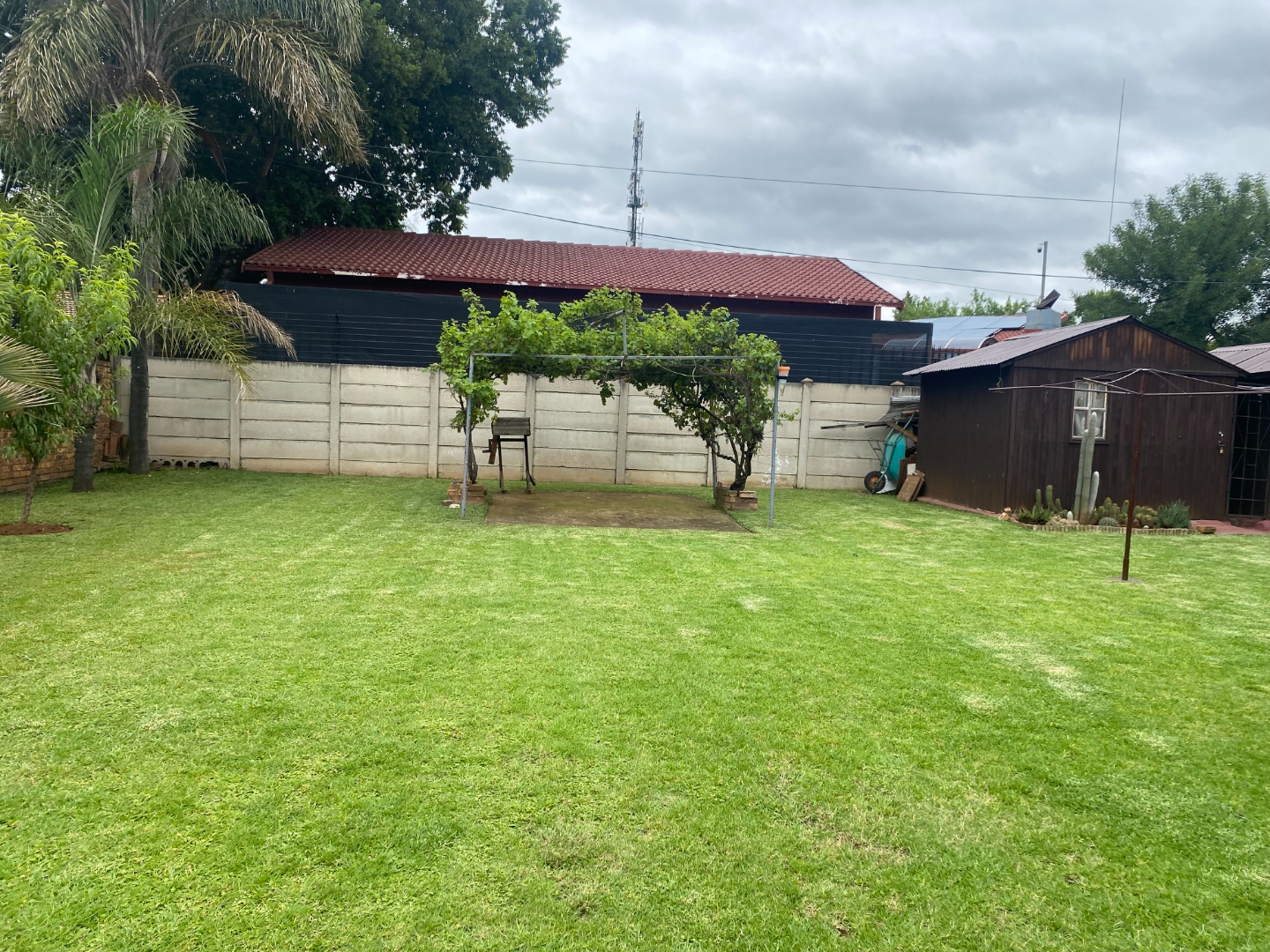The generous 1600 sqm erf size allows for a substantial outdoor area, highlighted by the well-kept garden and an enclosed sunroom-style extension offering additional functional space. Security is a priority, with visible features such as an electric security fence, security bars on windows, and gated access enhancing peace of mind. The property also includes a double garage, providing secure parking for two vehicles.