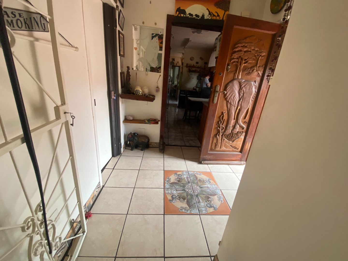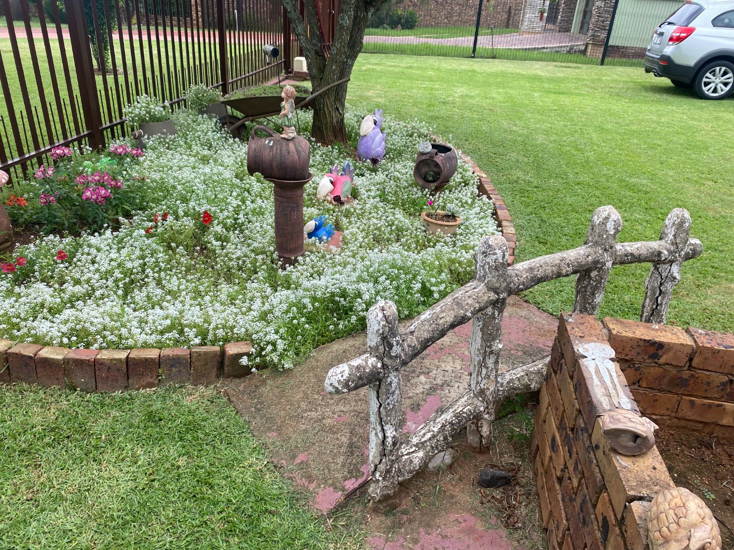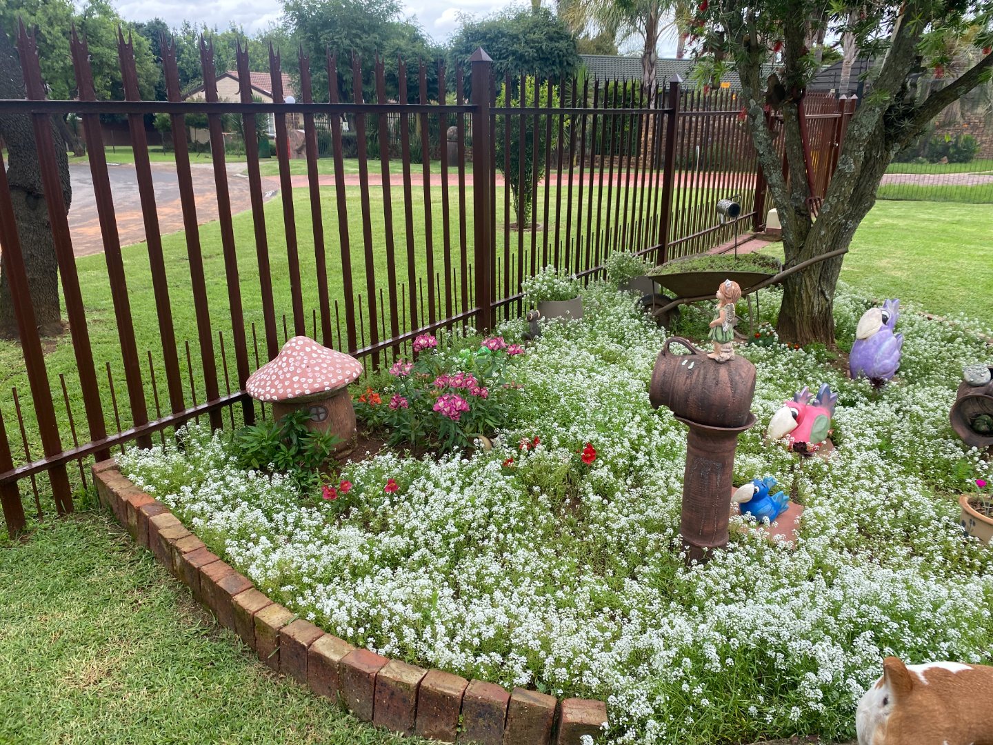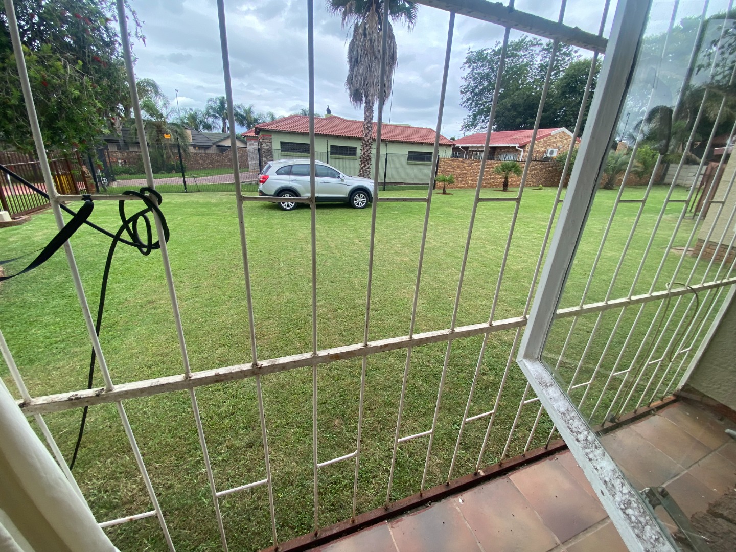 The generous 1600 sqm erf size allows for a substantial outdoor area, highlighted by the well-kept garden and an enclosed sunroom-style extension offering additional functional space. Security is a priority, with visible features such as an electric security fence, security bars on windows, and gated access enhancing peace of mind. The property also includes a double garage, providing secure parking for two vehicles.