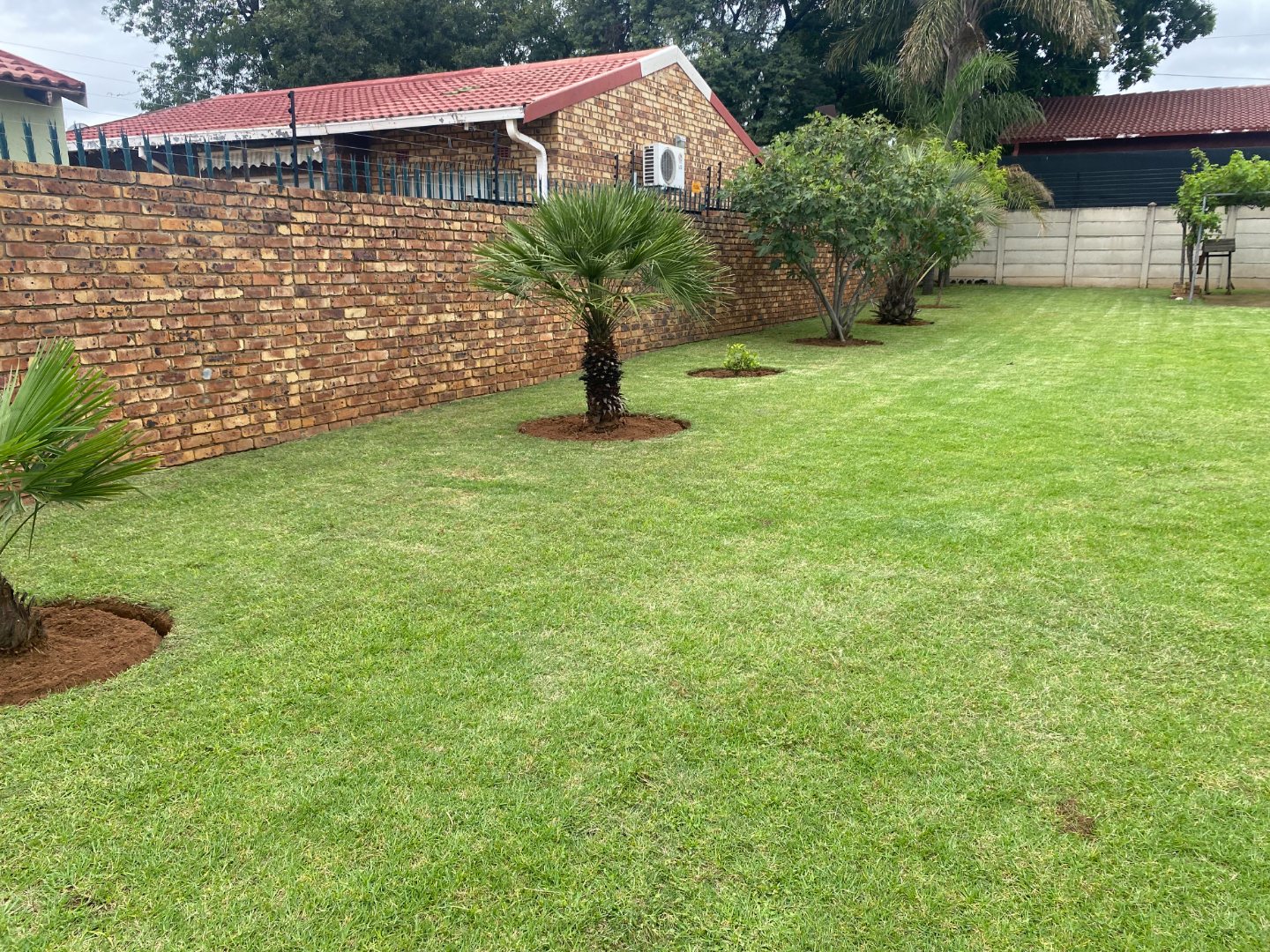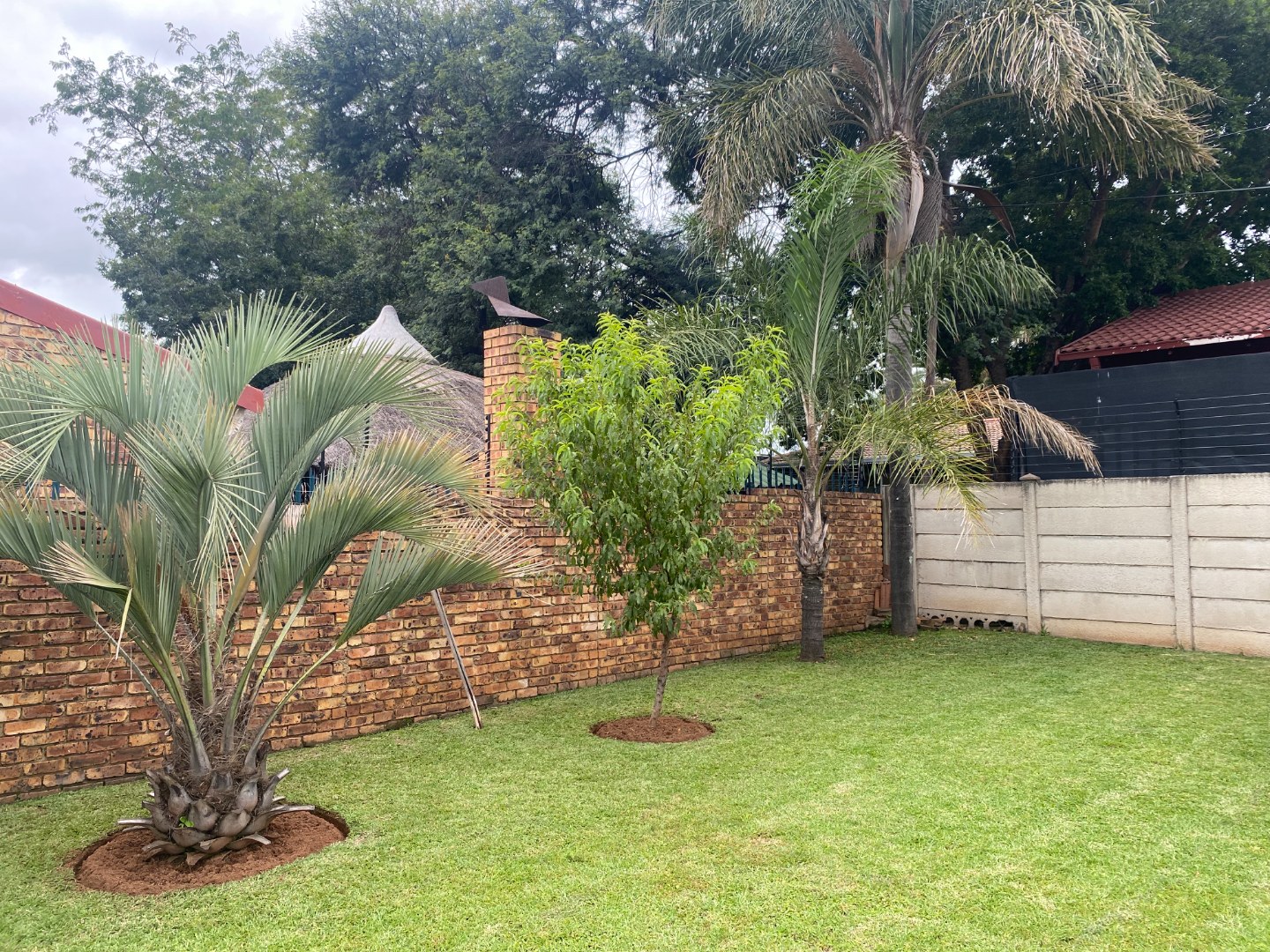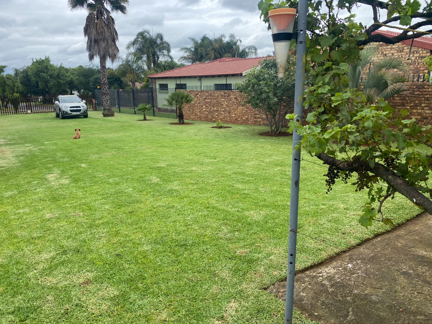 Discover this exclusive charming suburban home in Aerorand, Middelburg, offering a blend of comfort and practicality. The property immediately impresses with its well-maintained exterior, featuring a lush green lawn and newly planted young palm trees, all secured by a sturdy brick boundary wall, contributing to its kerb appeal.