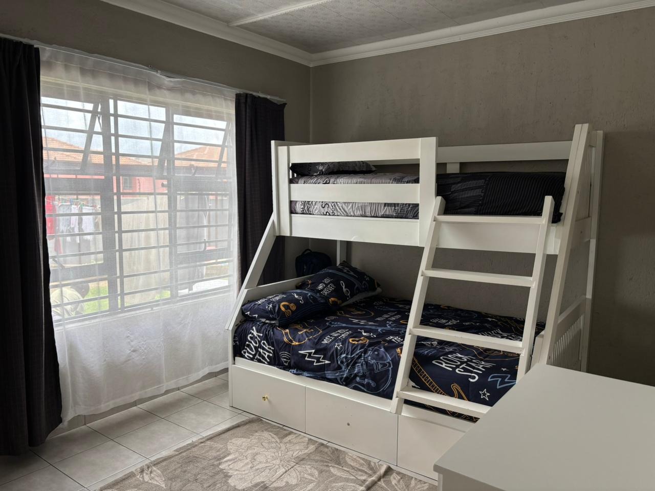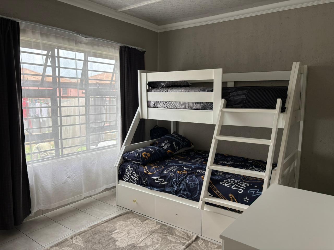 This modern residence is set in the sought-after suburb of Aerorand West, offering comfort, style, and security. The home features a generous open-plan layout where the lounge, dining area, and sleek kitchen flow seamlessly together. The kitchen is complemented by a separate scullery, ideal for practical everyday living.