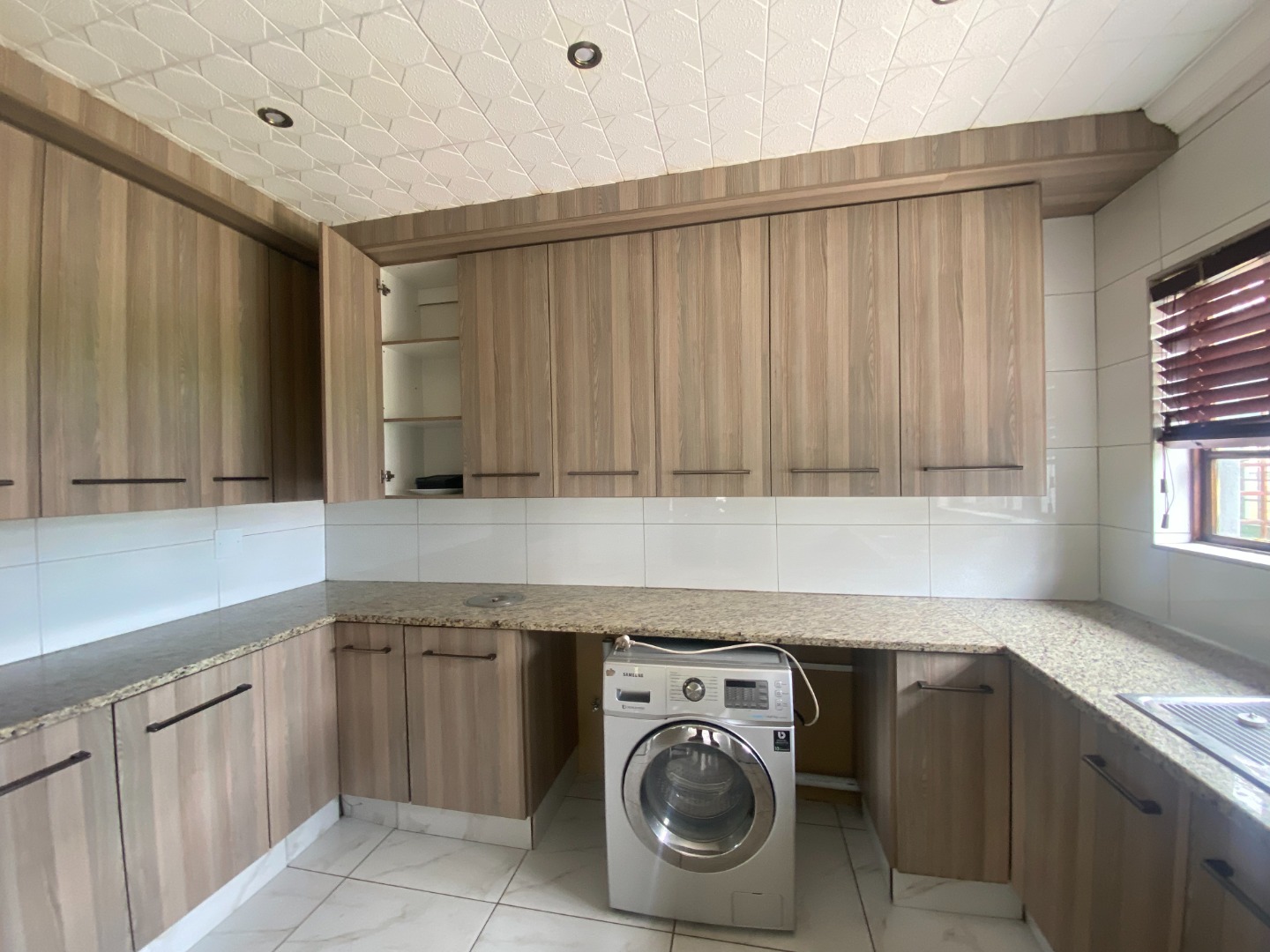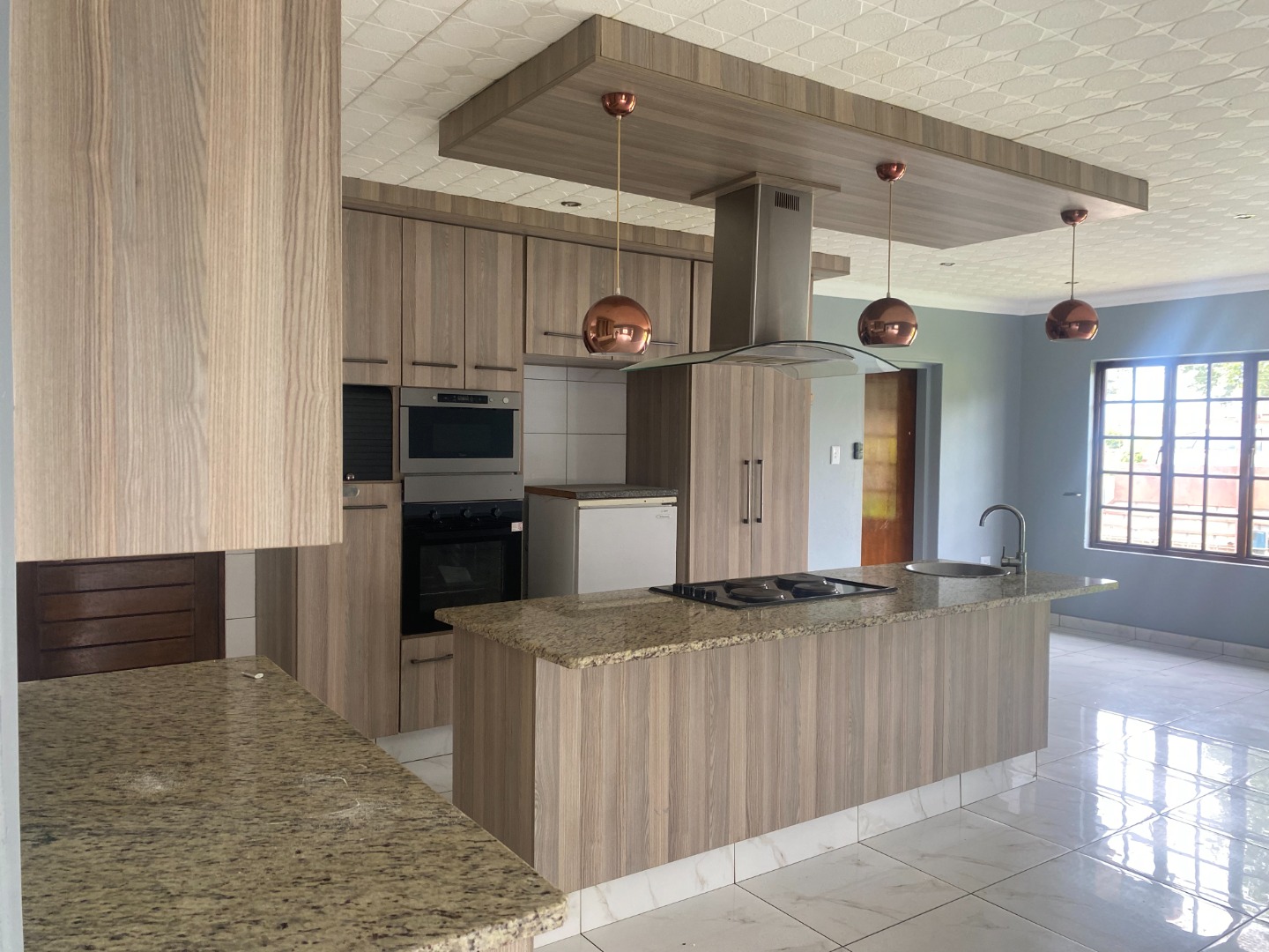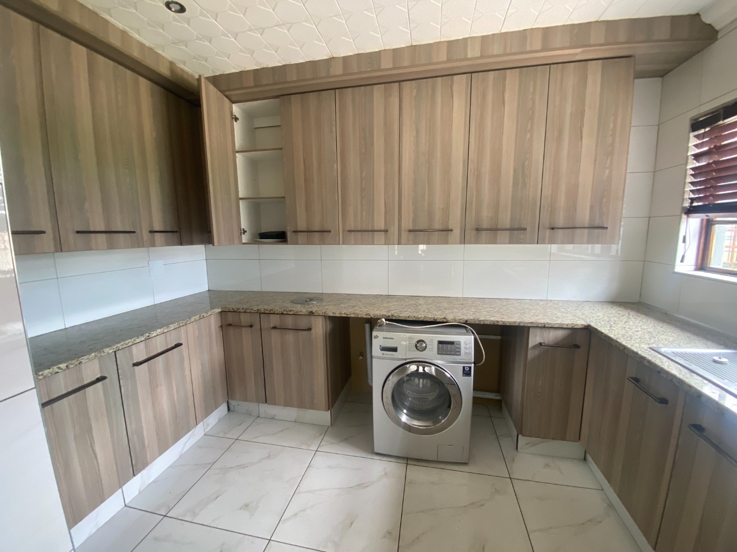 This inviting 4-bedroom, 2-bathroom residence in Middelburg offers a blend of modern living and practical design, ideal for families seeking comfort and space. The property presents a welcoming kerb appeal, leading into a thoughtfully laid-out interior designed for contemporary lifestyles. The heart of the home features a spacious, open-plan kitchen and living area. The kitchen boasts modern wood-look cabinetry, durable granite countertops, and a functional island complete with a hob and sink. Integrated oven and microwave enhance its sleek design, complemented by large format floor tiles and a mix of pendant and recessed lighting. An additional L-shaped kitchen provides further convenience with light wood-grain cabinets, granite countertops, and dedicated space for a washing machine, all illuminated by natural light. The living and dining areas are bright and airy, characterized by freshly painted neutral grey walls and clean white tiled flooring throughout. Large glass double doors and windows ensure ample natural light, creating an inviting atmosphere and offering potential access to outdoor spaces. The two bathrooms are fully tiled for easy maintenance, each featuring a combination of a bathtub and a separate shower, along with a pedestal sink and toilet, providing functional amenities for the household. Set on an 827 sqm erf, this property includes a double garage, offering secure parking and additional storage. The layout provides flexibility for personalization, allowing new owners to create their ideal outdoor oasis. Security is well-addressed with an alarm system and electric fencing, ensuring peace of mind for residents. Pets are allowed, making it a suitable home for animal lovers. Aerorand is a desirable suburban area in Middelburg, known for its tranquil environment and convenient access to local amenities. This well-located property offers an excellent opportunity for comfortable family living in an established community within South Africa. Key Features: * Four spacious bedrooms * Two functional bathrooms * Modern open-plan kitchen with island * Integrated oven and microwave * Bright living and dining areas * Double garage * 827 sqm erf size * Alarm system and electric fencing * Pet-friendly environment