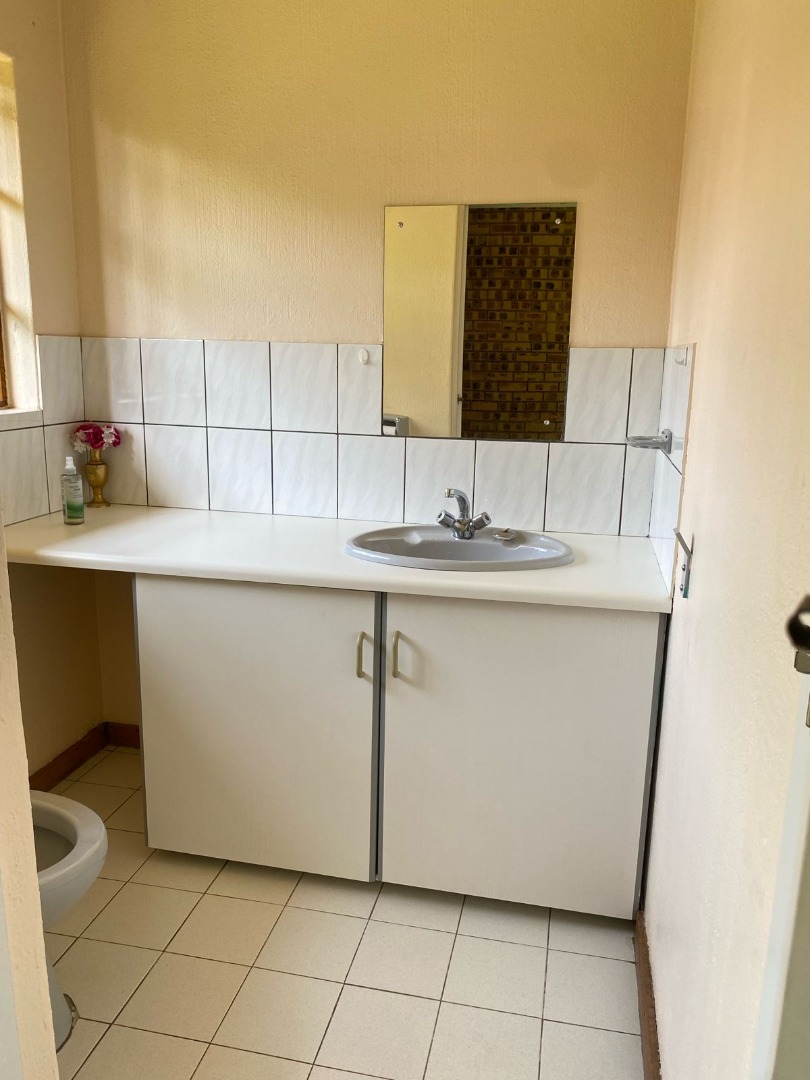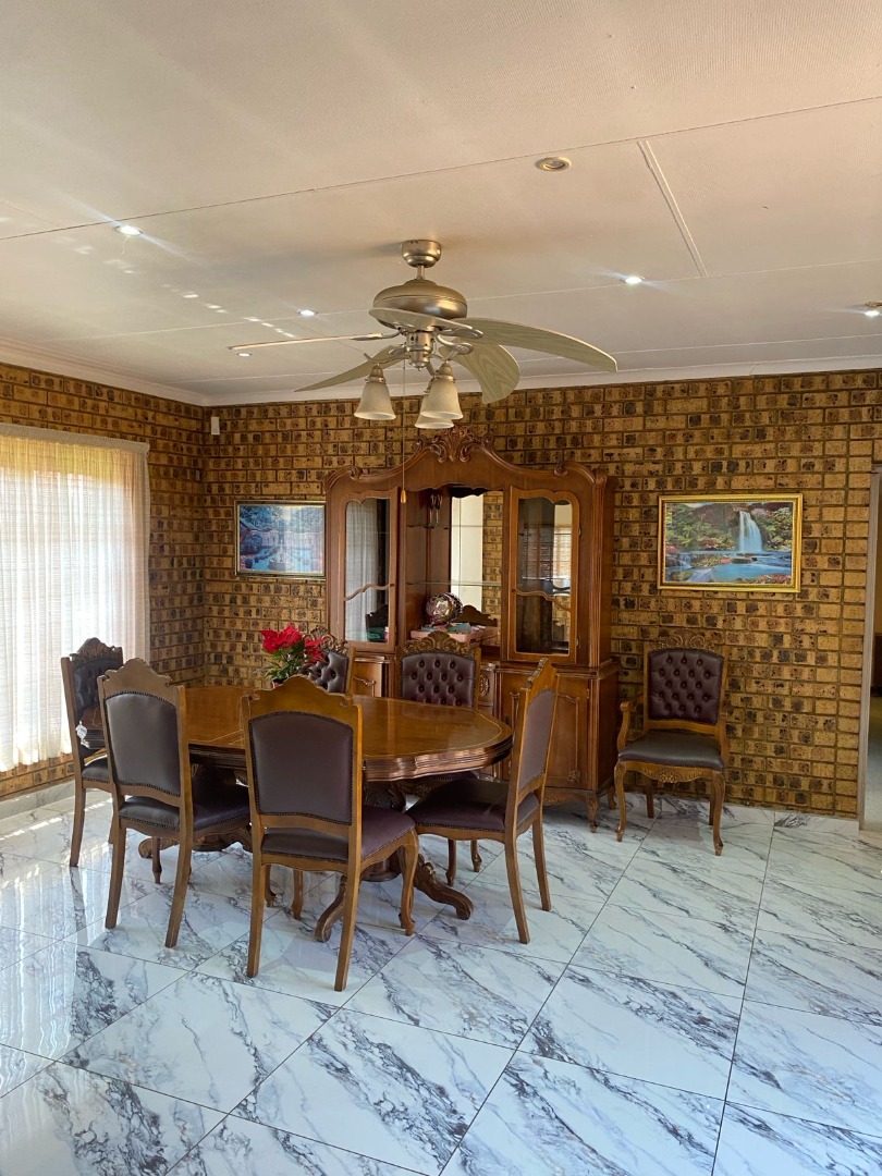 This substantial residential property in the desirable Aerorand suburb of Middelburg, South Africa, presents an excellent opportunity for discerning buyers. The home boasts a classic brick exterior with a red tiled roof, complemented by a neatly maintained green lawn and paved pathways, offering appealing kerb appeal. Situated on a generous 1432 sqm erf, this property combines comfortable living with significant potential for enhancement. Inside, the residence features an inviting open-plan layout encompassing the kitchen, dining, and lounge areas. The modern kitchen is equipped with sleek white cabinetry, a built-in oven, and ample counter space, all set against attractive marble-effect tiled flooring and illuminated by recessed ceiling spotlights. Exposed brick elements add character to this contemporary space. A dedicated family TV room, a practical pantry, and a study provide additional functional areas for daily living and work-from-home arrangements. The home offers four comfortable bedrooms and 5.5 bathrooms, including a convenient guest toilet and additional outside facilities, ensuring ample convenience for residents and visitors. While some areas, such as a utilitarian bathroom and certain versatile rooms, are ready for your personal touch and renovation, they offer a blank canvas to create bespoke spaces tailored to your preferences. A dedicated laundry room and various storage areas further enhance practicality. Outdoor living is well-catered for with a private garden, a patio perfect for entertaining, and a refreshing swimming pool. The property includes four garages and two additional parking spaces, providing extensive secure parking. Pets are welcome, and the perimeter is secured with electric fencing, offering peace of mind. Aerorand is a well-regarded suburban area in Middelburg, known for its family-friendly environment and convenient access to local amenities. This location offers a balanced lifestyle within an established community. **Key Features:** * 4 Bedrooms, 5.5 Bathrooms * Open-plan Kitchen, Dining, Lounge * Modern Kitchen with White Cabinetry * Marble-effect Tiled Flooring * Dedicated Family TV Room & Study * Swimming Pool & Patio * Large 1432 sqm Erf * 4 Garages, 2 Parking Spaces * Electric Fencing * Pets Allowed
