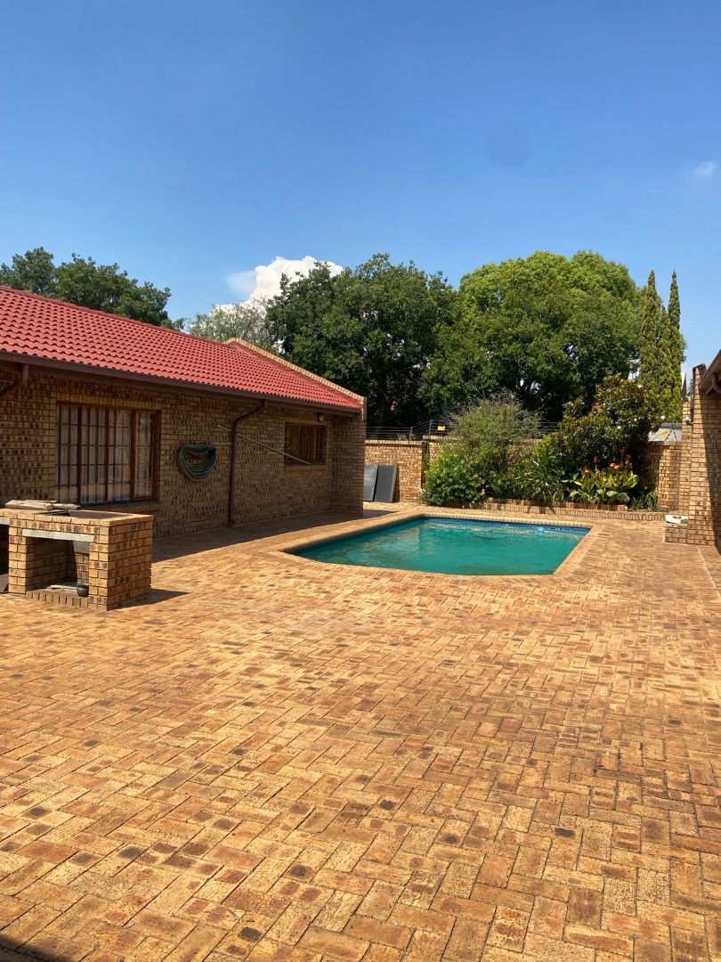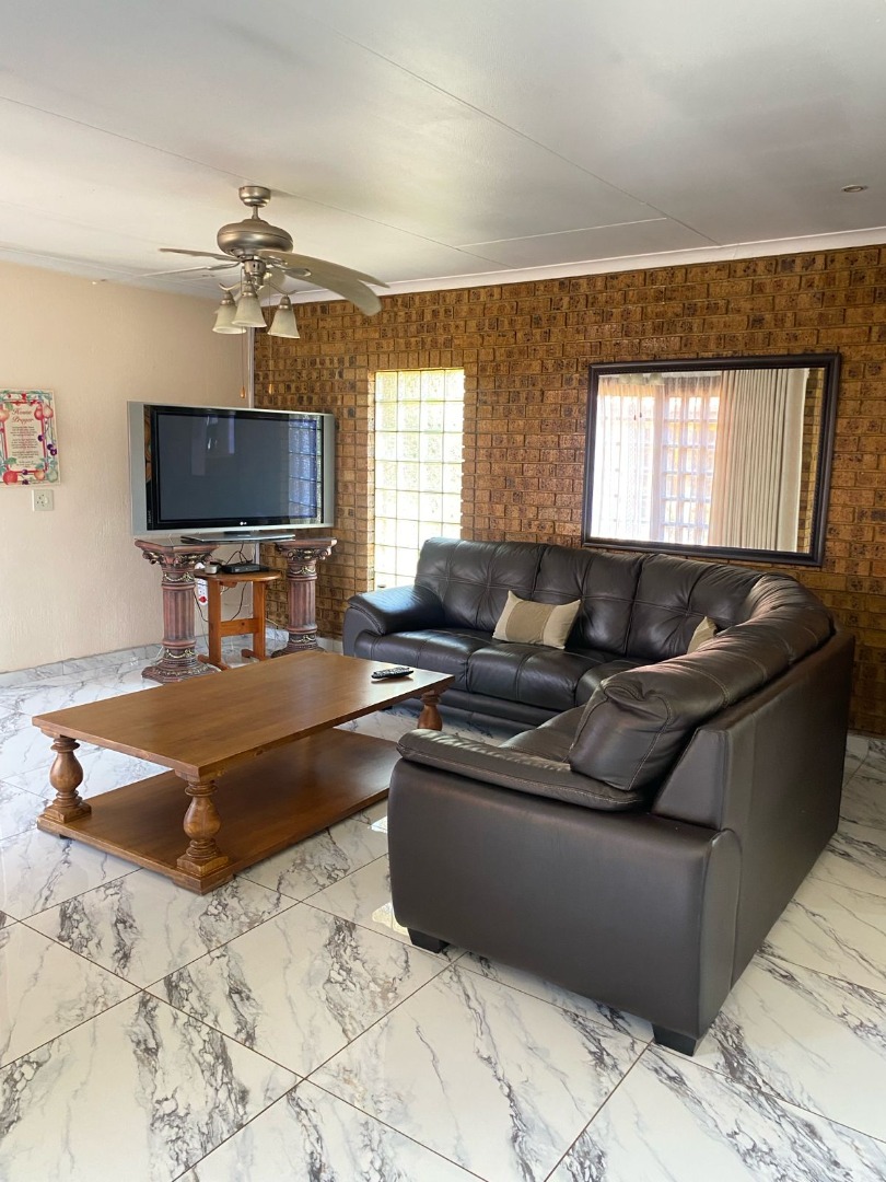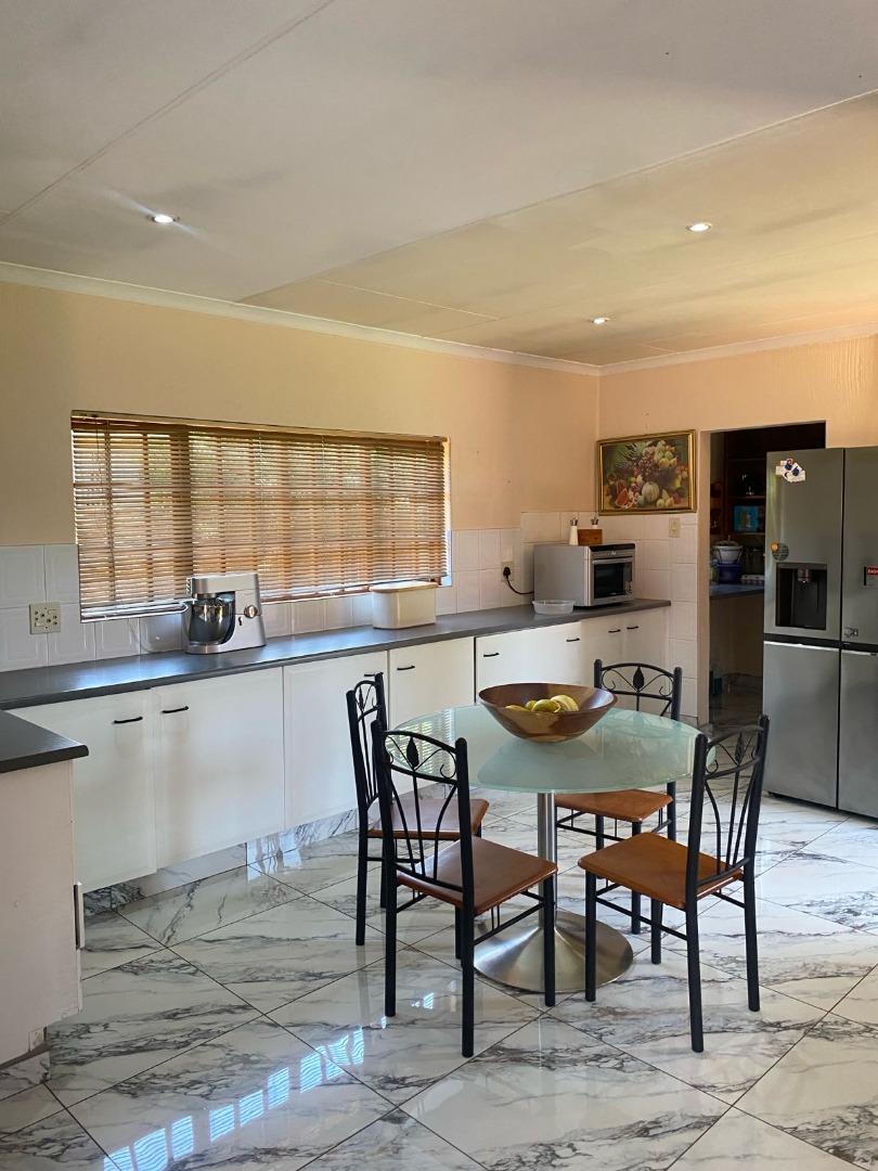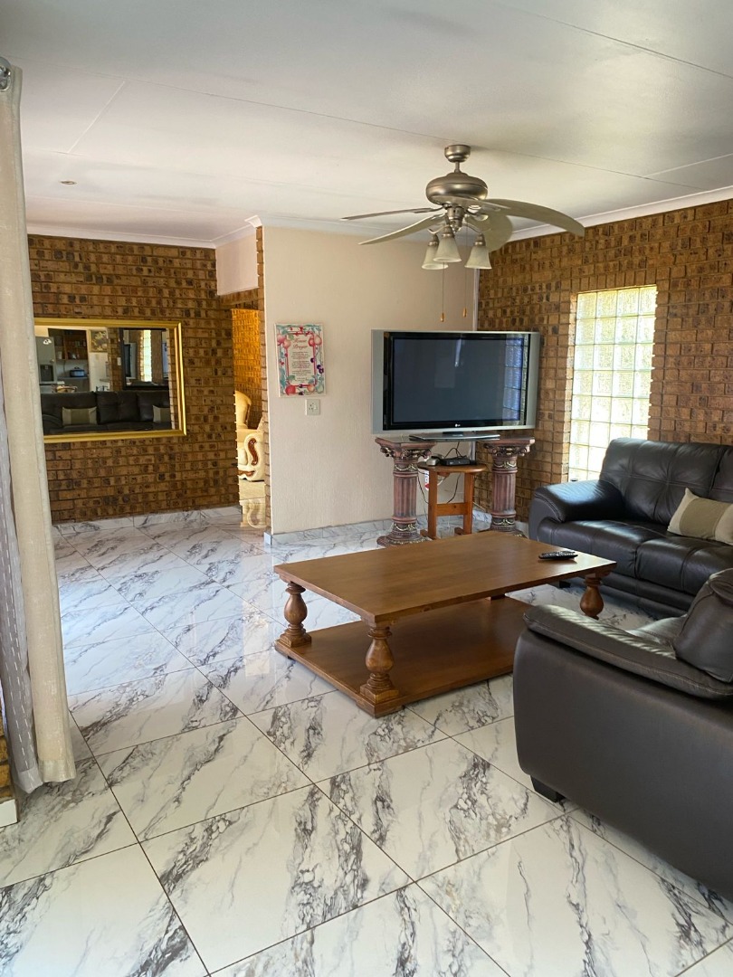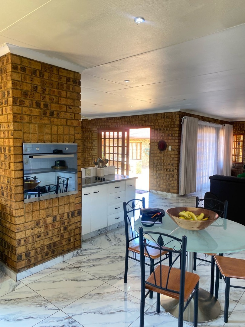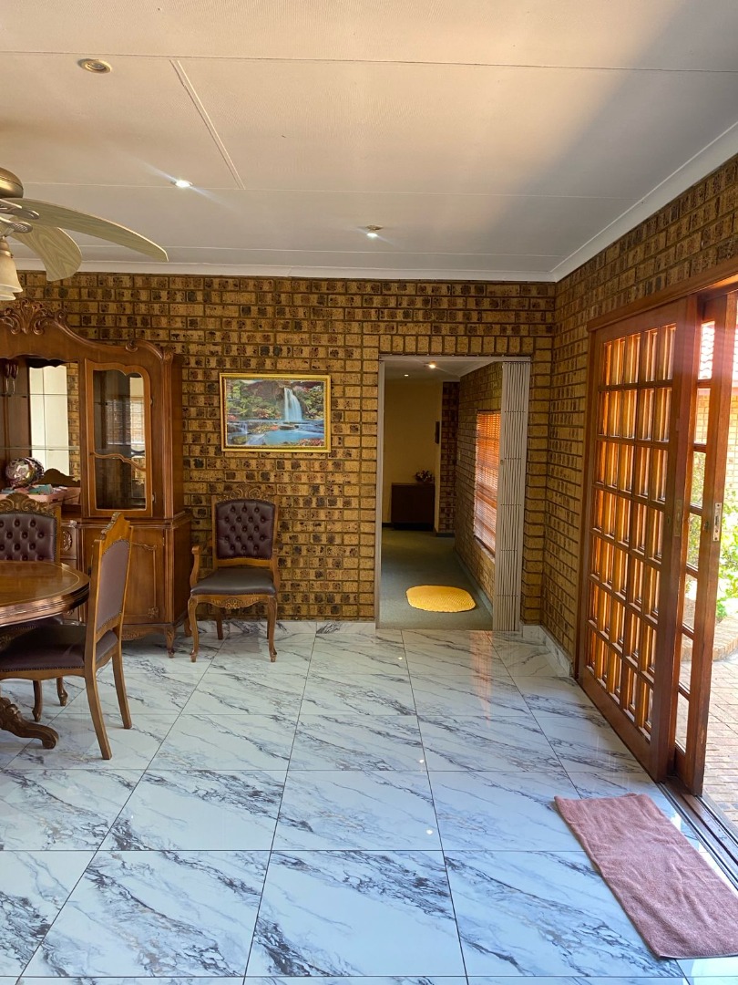 This substantial residential property in the desirable Aerorand suburb of Middelburg, South Africa, presents an excellent opportunity for discerning buyers. The home boasts a classic brick exterior with a red tiled roof, complemented by a neatly maintained green lawn and paved pathways, offering appealing kerb appeal. Situated on a generous 1432 sqm erf, this property combines comfortable living with significant potential for enhancement. Inside, the residence features an inviting open-plan layout encompassing the kitchen, dining, and lounge areas. The modern kitchen is equipped with sleek white cabinetry, a built-in oven, and ample counter space, all set against attractive marble-effect tiled flooring and illuminated by recessed ceiling spotlights. Exposed brick elements add character to this contemporary space. A dedicated family TV room, a practical pantry, and a study provide additional functional areas for daily living and work-from-home arrangements. The home offers four comfortable bedrooms and 5.5 bathrooms, including a convenient guest toilet and additional outside facilities, ensuring ample convenience for residents and visitors. While some areas, such as a utilitarian bathroom and certain versatile rooms, are ready for your personal touch and renovation, they offer a blank canvas to create bespoke spaces tailored to your preferences. A dedicated laundry room and various storage areas further enhance practicality. Outdoor living is well-catered for with a private garden, a patio perfect for entertaining, and a refreshing swimming pool. The property includes four garages and two additional parking spaces, providing extensive secure parking. Pets are welcome, and the perimeter is secured with electric fencing, offering peace of mind. Aerorand is a well-regarded suburban area in Middelburg, known for its family-friendly environment and convenient access to local amenities. This location offers a balanced lifestyle within an established community. **Key Features:** * 4 Bedrooms, 5.5 Bathrooms * Open-plan Kitchen, Dining, Lounge * Modern Kitchen with White Cabinetry * Marble-effect Tiled Flooring * Dedicated Family TV Room & Study * Swimming Pool & Patio * Large 1432 sqm Erf * 4 Garages, 2 Parking Spaces * Electric Fencing * Pets Allowed
