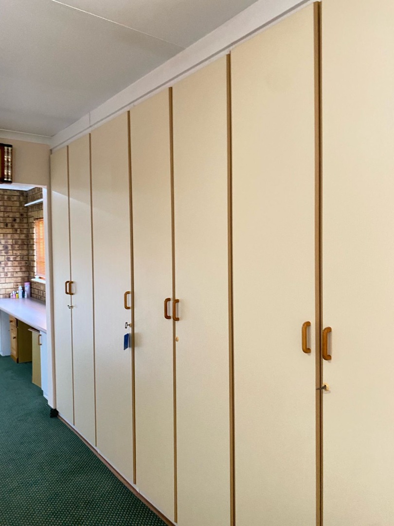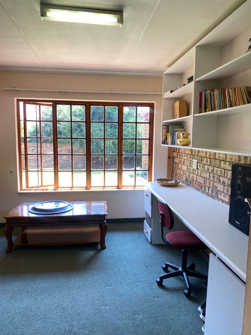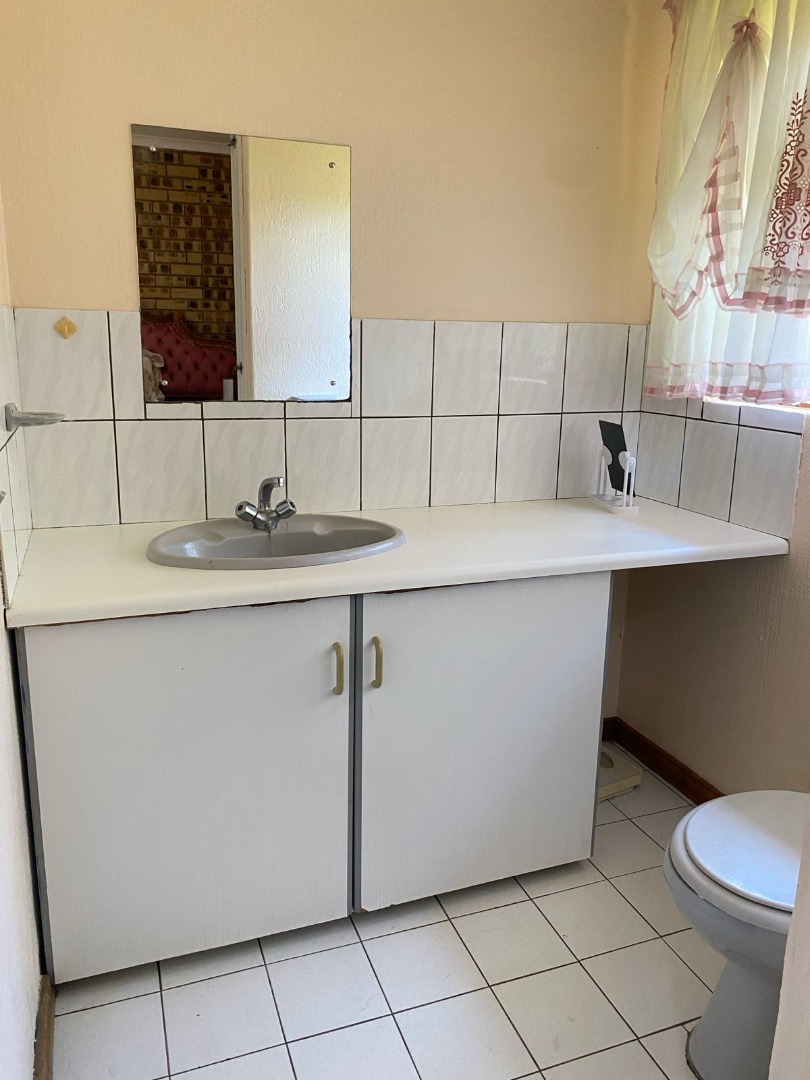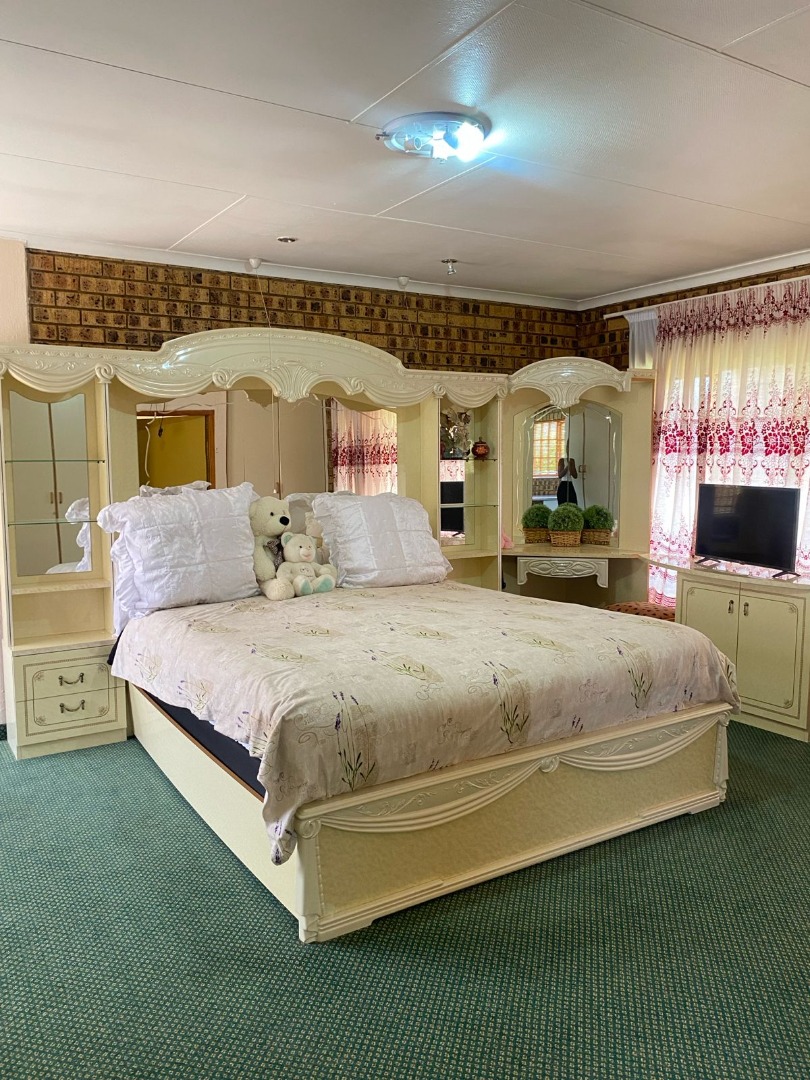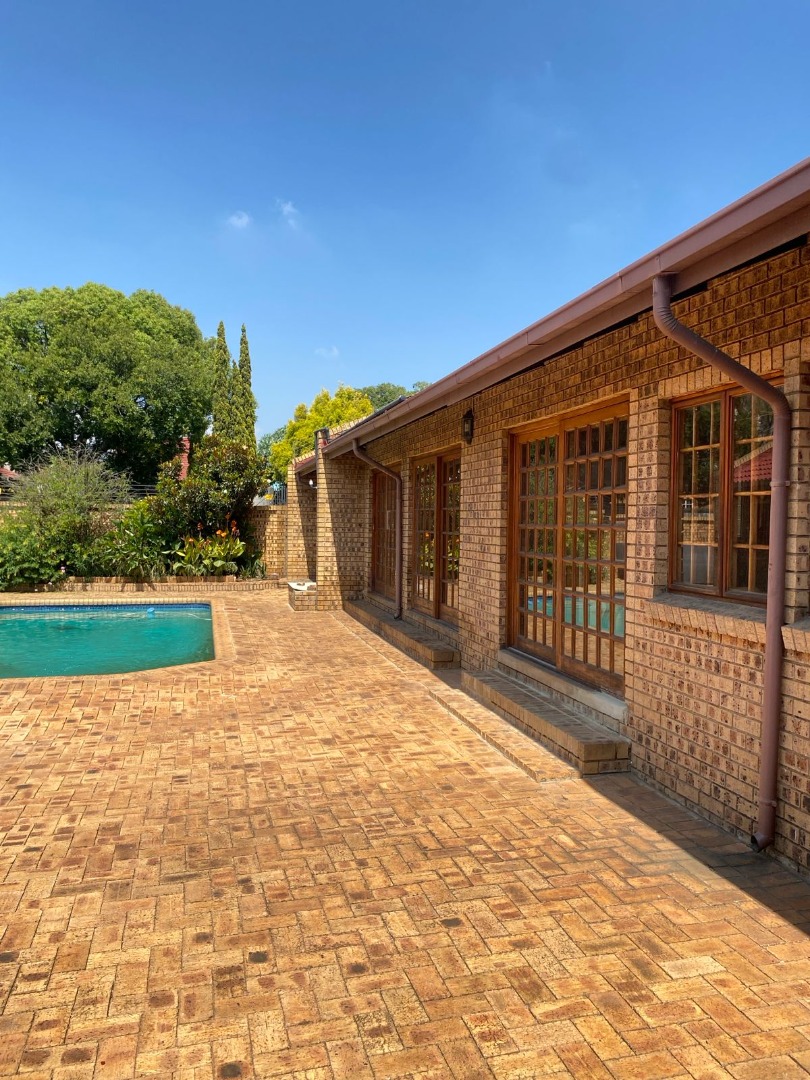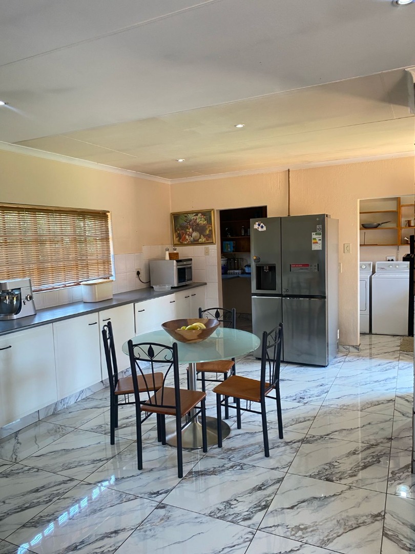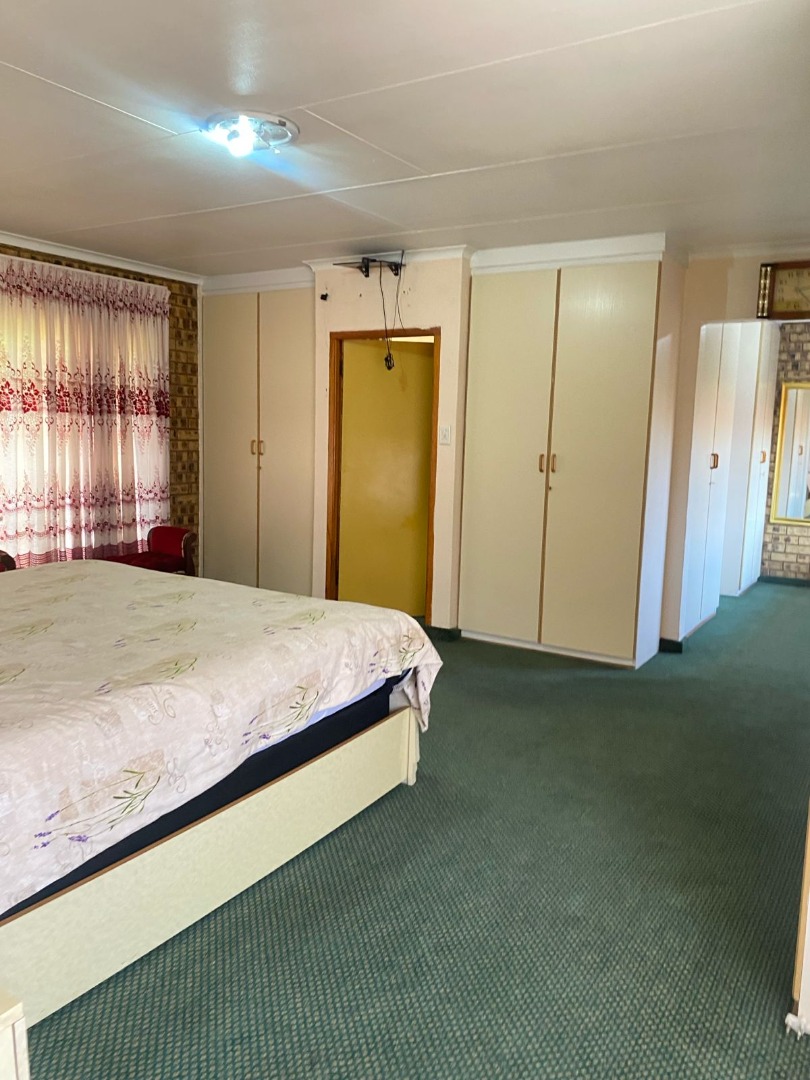 This substantial residential property in the desirable Aerorand suburb of Middelburg, South Africa, presents an excellent opportunity for discerning buyers. The home boasts a classic brick exterior with a red tiled roof, complemented by a neatly maintained green lawn and paved pathways, offering appealing kerb appeal. Situated on a generous 1432 sqm erf, this property combines comfortable living with significant potential for enhancement. Inside, the residence features an inviting open-plan layout encompassing the kitchen, dining, and lounge areas. The modern kitchen is equipped with sleek white cabinetry, a built-in oven, and ample counter space, all set against attractive marble-effect tiled flooring and illuminated by recessed ceiling spotlights. Exposed brick elements add character to this contemporary space. A dedicated family TV room, a practical pantry, and a study provide additional functional areas for daily living and work-from-home arrangements. The home offers four comfortable bedrooms and 5.5 bathrooms, including a convenient guest toilet and additional outside facilities, ensuring ample convenience for residents and visitors. While some areas, such as a utilitarian bathroom and certain versatile rooms, are ready for your personal touch and renovation, they offer a blank canvas to create bespoke spaces tailored to your preferences. A dedicated laundry room and various storage areas further enhance practicality. Outdoor living is well-catered for with a private garden, a patio perfect for entertaining, and a refreshing swimming pool. The property includes four garages and two additional parking spaces, providing extensive secure parking. Pets are welcome, and the perimeter is secured with electric fencing, offering peace of mind. Aerorand is a well-regarded suburban area in Middelburg, known for its family-friendly environment and convenient access to local amenities. This location offers a balanced lifestyle within an established community. **Key Features:** * 4 Bedrooms, 5.5 Bathrooms * Open-plan Kitchen, Dining, Lounge * Modern Kitchen with White Cabinetry * Marble-effect Tiled Flooring * Dedicated Family TV Room & Study * Swimming Pool & Patio * Large 1432 sqm Erf * 4 Garages, 2 Parking Spaces * Electric Fencing * Pets Allowed