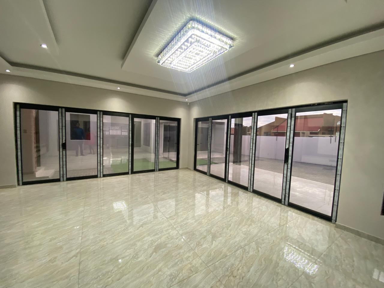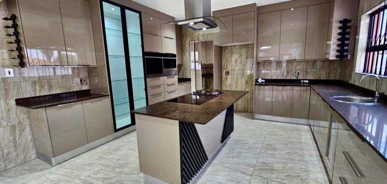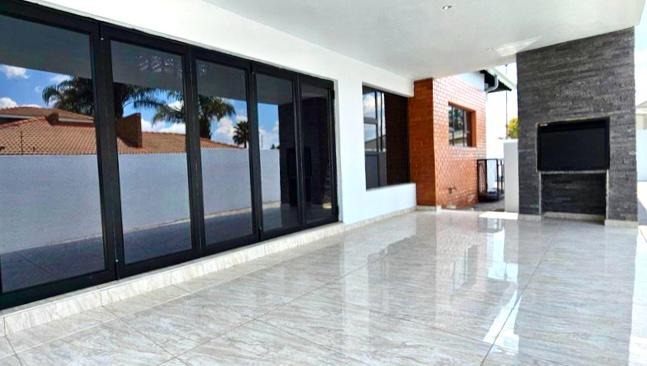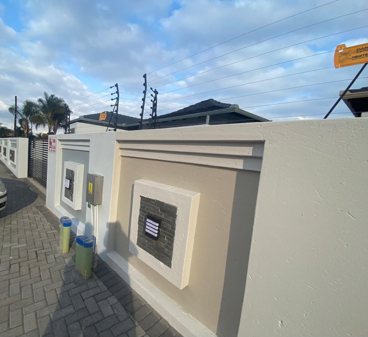 Discover an exquisite residential offering in the esteemed suburban enclave of Aerorand, Middelburg. This meticulously designed home presents a contemporary architectural aesthetic, featuring a striking facade and a grand paved entrance. Inside, five opulent bedrooms and five lavish bathrooms provide unparalleled comfort, complemented by extensive built-in storage and sleek tiled flooring. The sophisticated kitchen boasts high-gloss cabinetry, stone countertops, and a central island with an integrated gas hob. Seamlessly transition to the expansive covered patio with a built-in braai, perfect for al fresco gatherings. Security is paramount, with electric fencing, robust gates, and an alarm system ensuring peace of mind. Key Features: * 5 Bedrooms, 5 Bathrooms * Modern Architectural Design * Gourmet Kitchen with Island * Covered Patio with Built-in Braai * Enhanced Security Features * Double Garage