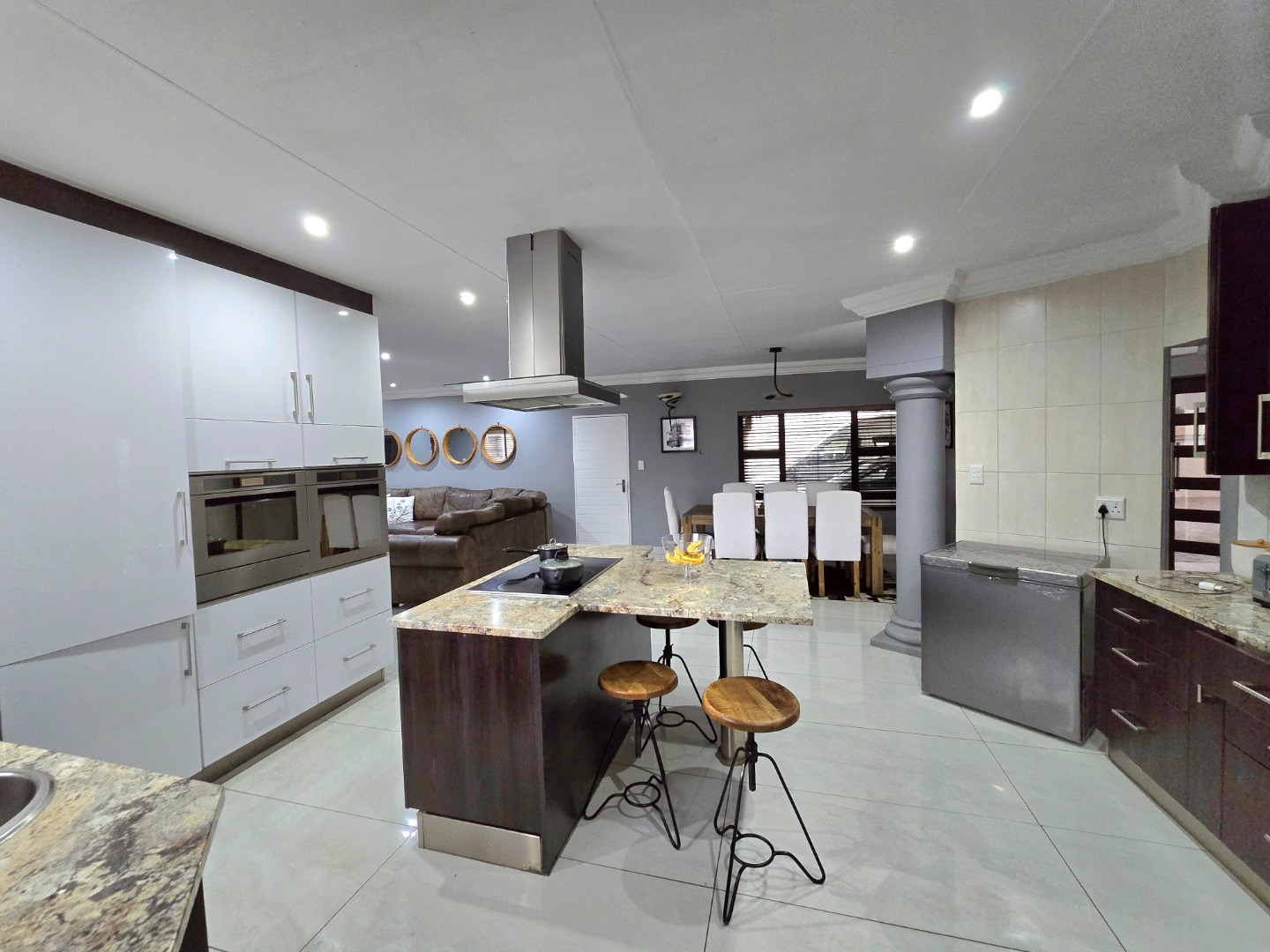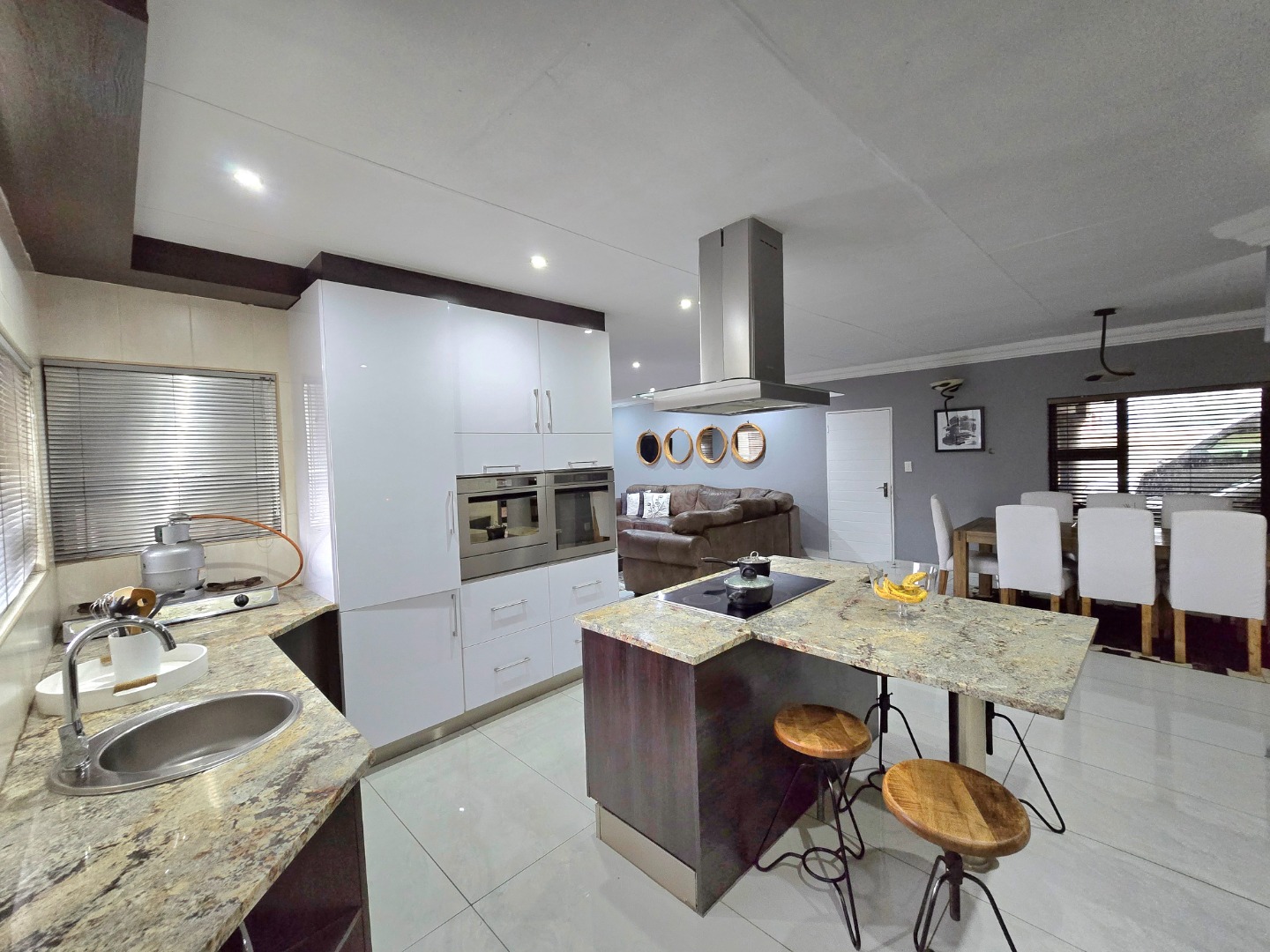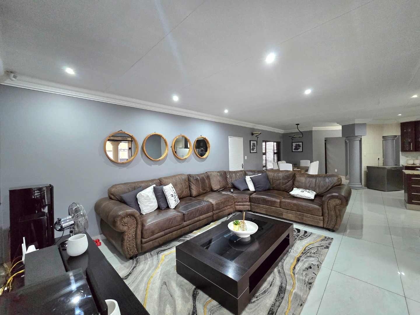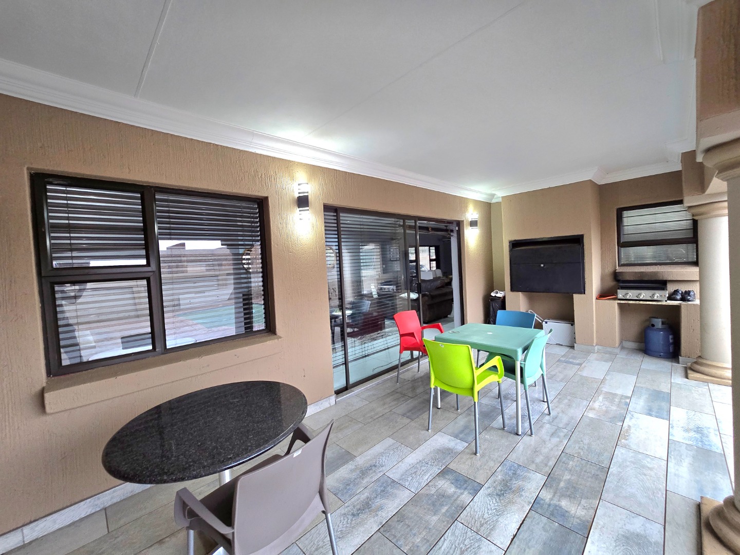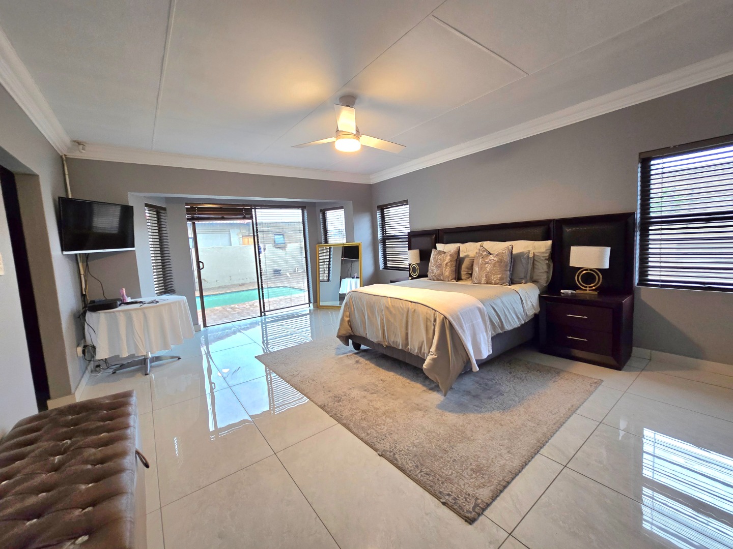 Experience modern luxury in this beautifully designed 4-bedroom home, perfectly located in the sought-after Aerorand neighborhood. With contemporary finishes, spacious living areas, and excellent entertainment features, this home offers the perfect blend of comfort and style. From the moment you enter, the welcoming lounge sets a warm and elegant tone. The modern open-plan kitchen, complete with a sleek center island and separate scullery, seamlessly connects to the dining area and TV room—creating an inviting family space. Sliding doors lead to a covered patio with a built-in braai, making it ideal for entertaining in any season.