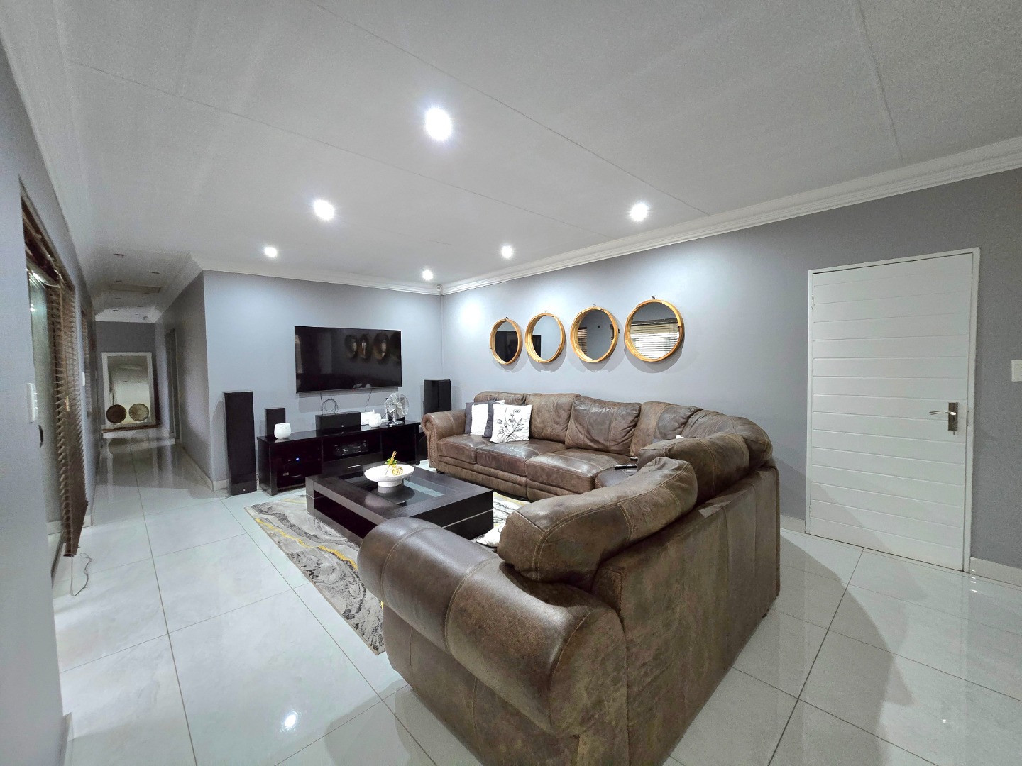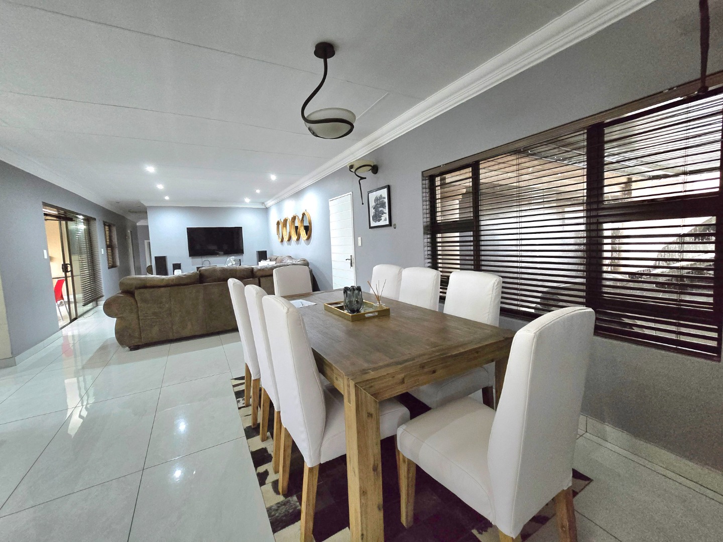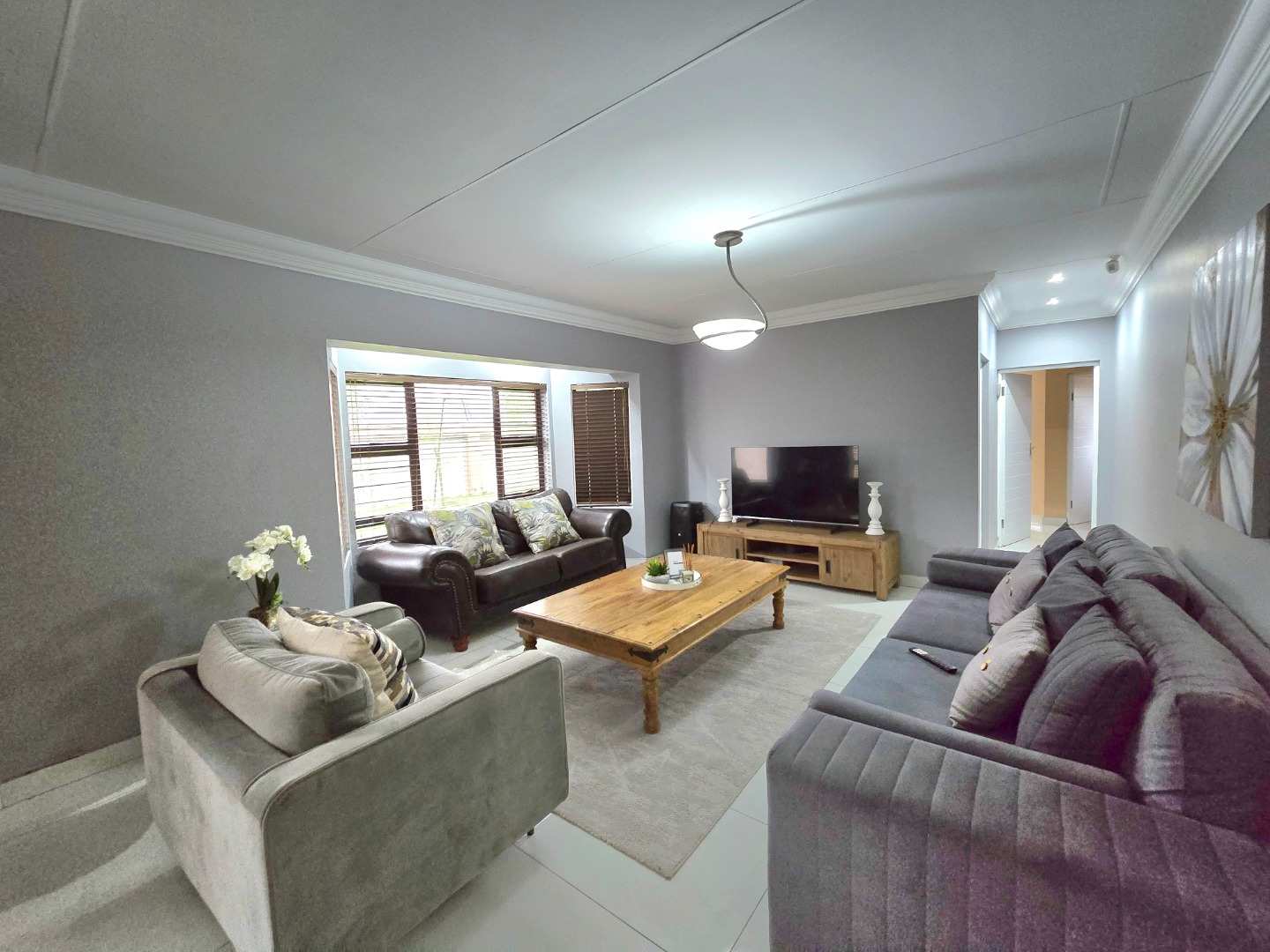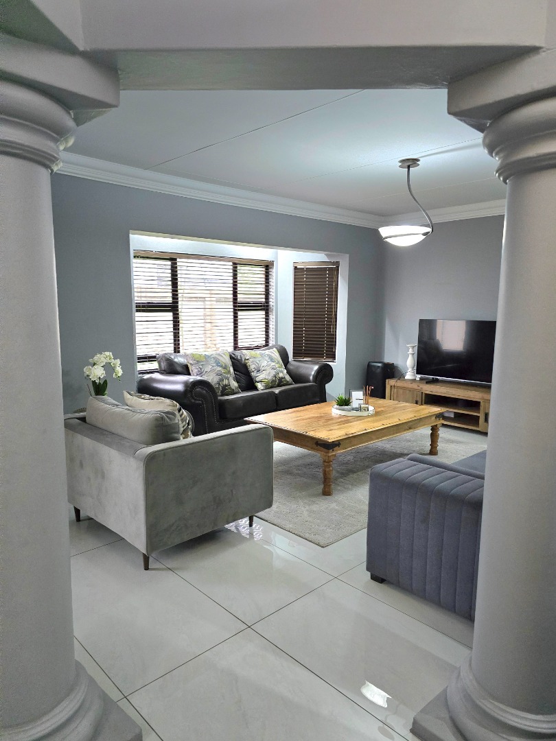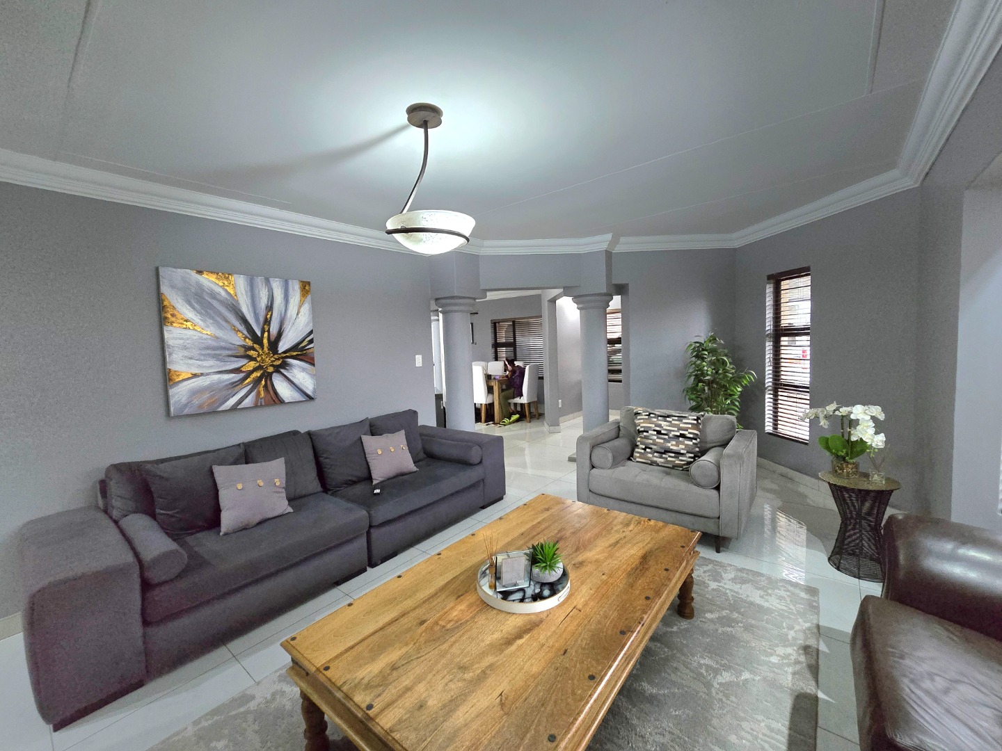 Experience modern luxury in this beautifully designed 4-bedroom home, perfectly located in the sought-after Aerorand neighborhood. With contemporary finishes, spacious living areas, and excellent entertainment features, this home offers the perfect blend of comfort and style. From the moment you enter, the welcoming lounge sets a warm and elegant tone. The modern open-plan kitchen, complete with a sleek center island and separate scullery, seamlessly connects to the dining area and TV room—creating an inviting family space. Sliding doors lead to a covered patio with a built-in braai, making it ideal for entertaining in any season.