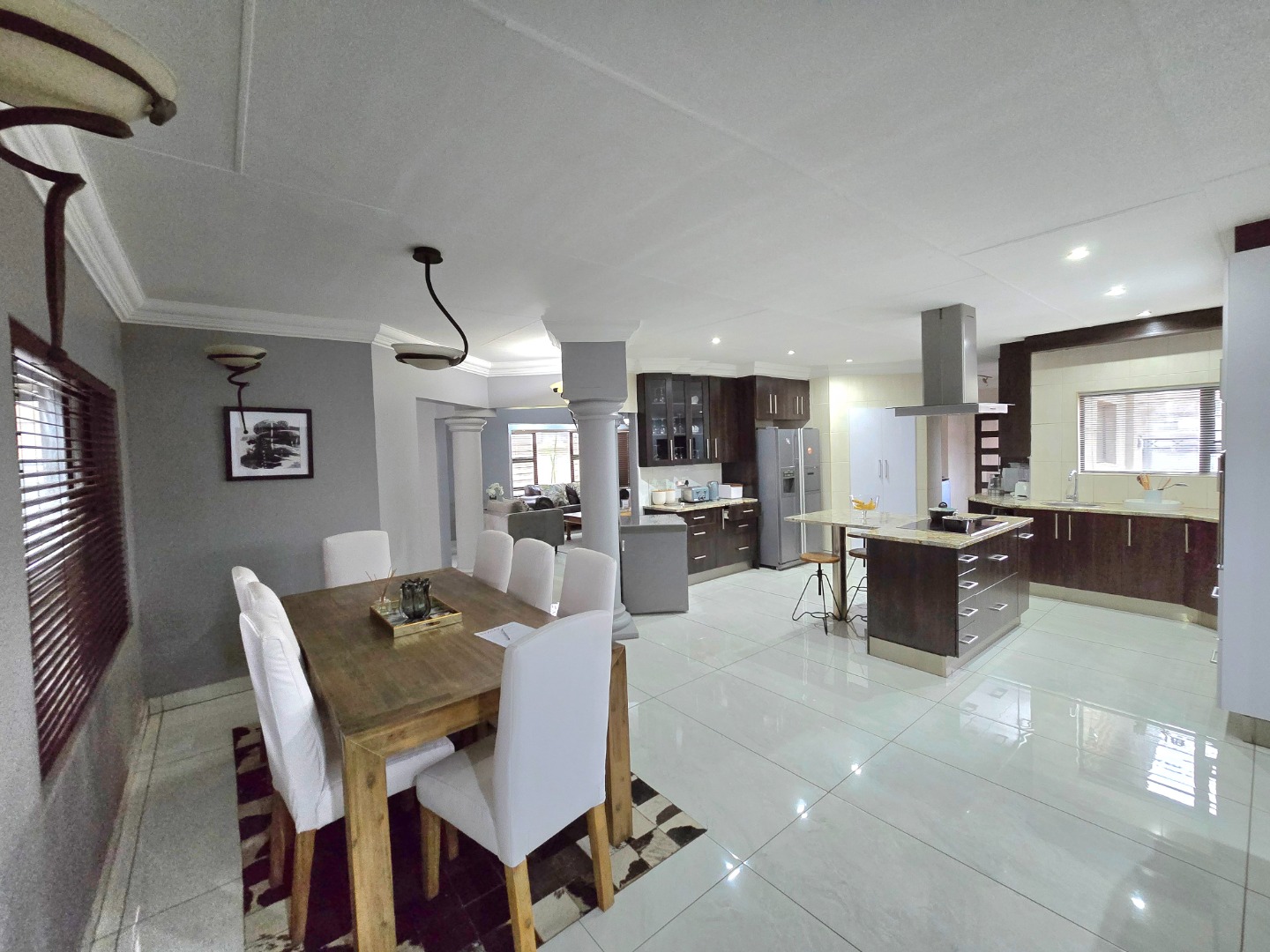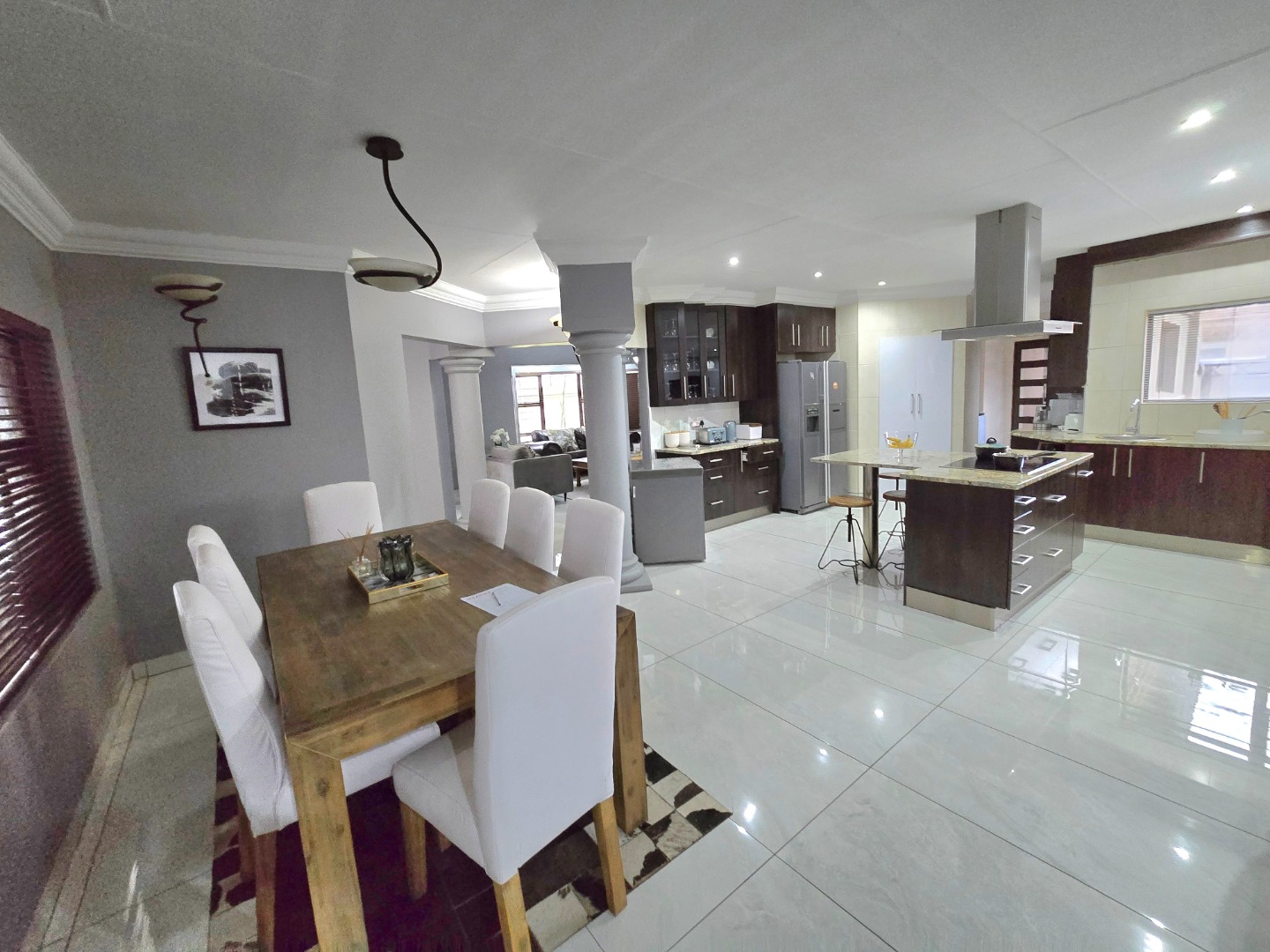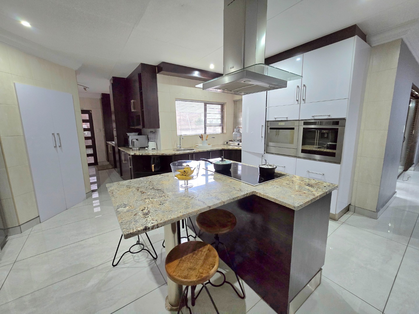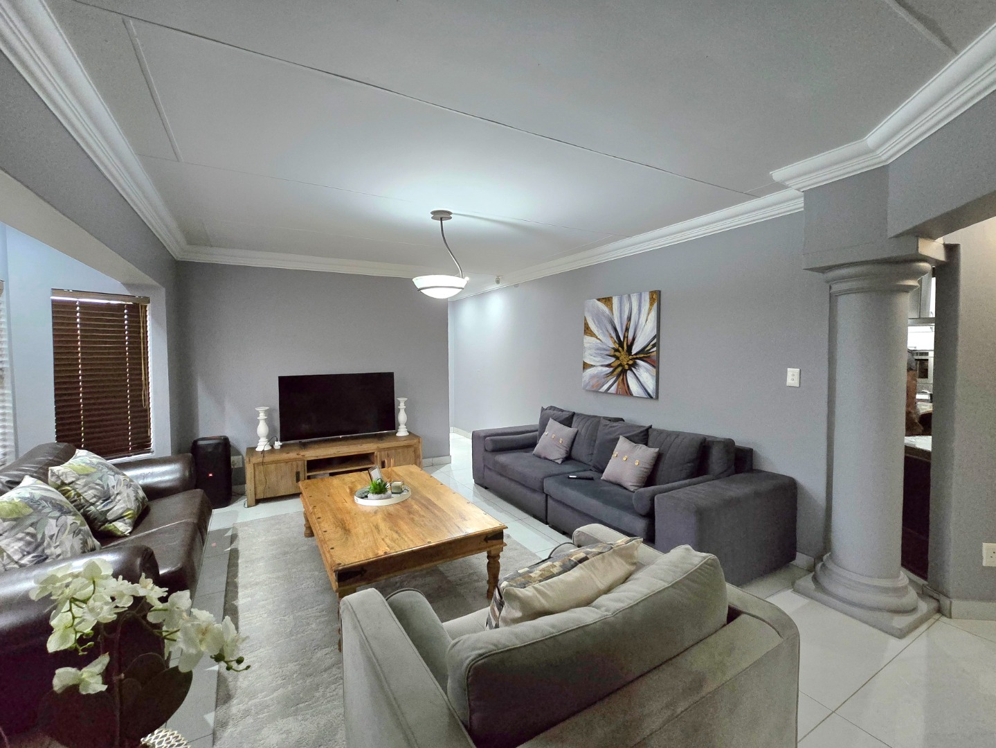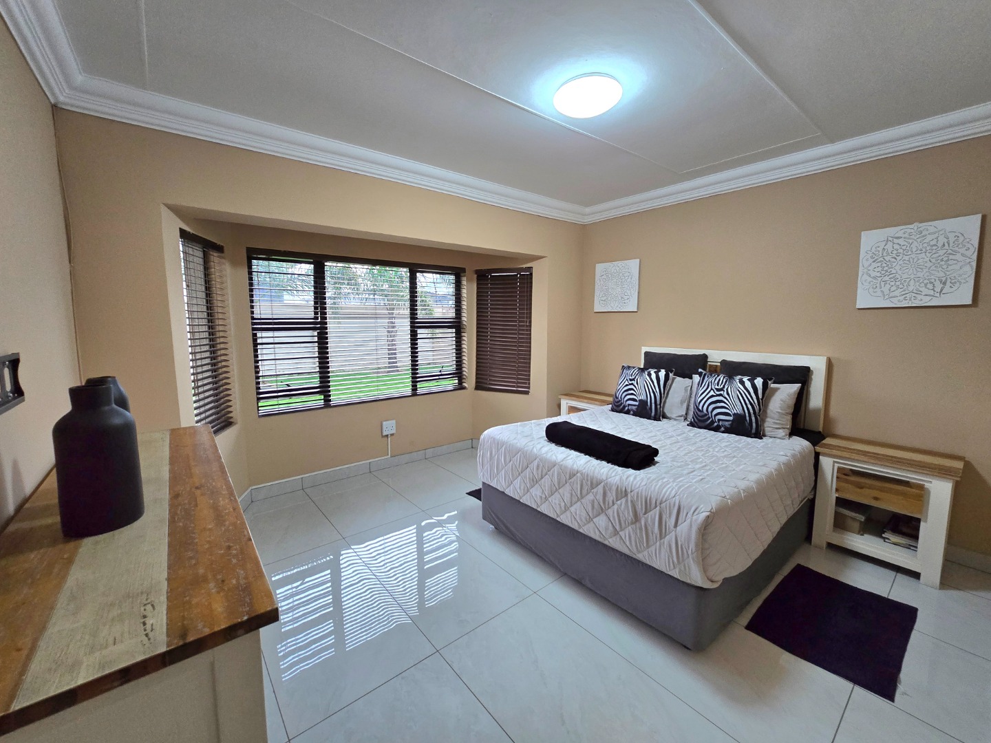 Experience modern luxury in this beautifully designed 4-bedroom home, perfectly located in the sought-after Aerorand neighborhood. With contemporary finishes, spacious living areas, and excellent entertainment features, this home offers the perfect blend of comfort and style. From the moment you enter, the welcoming lounge sets a warm and elegant tone. The modern open-plan kitchen, complete with a sleek center island and separate scullery, seamlessly connects to the dining area and TV room—creating an inviting family space. Sliding doors lead to a covered patio with a built-in braai, making it ideal for entertaining in any season.