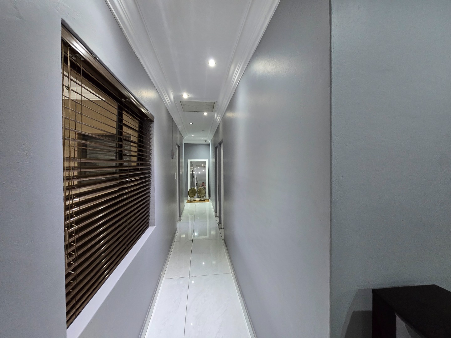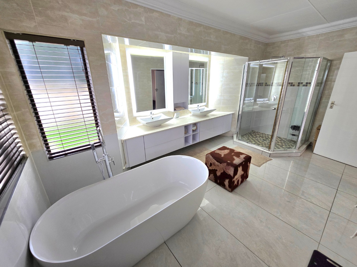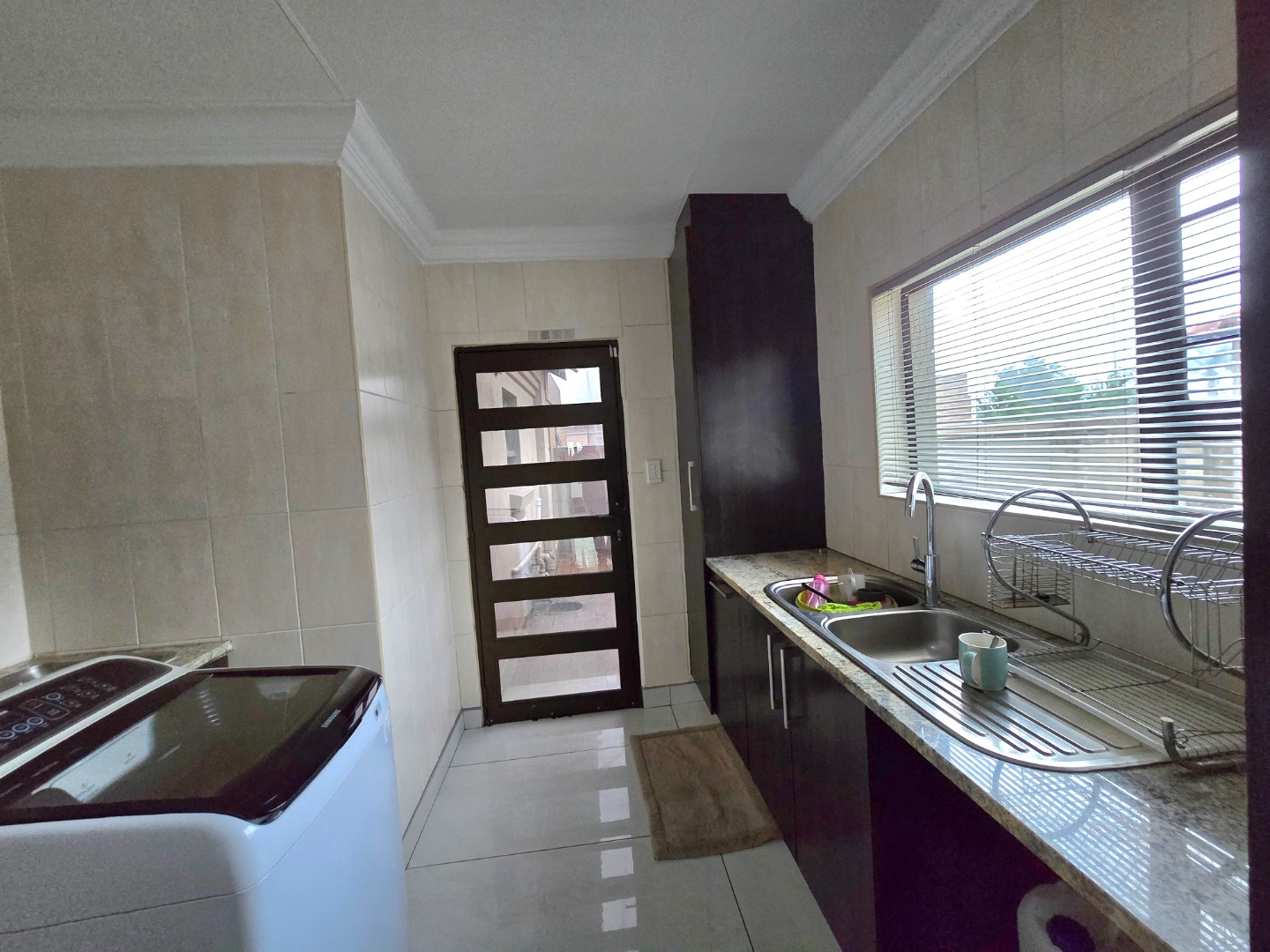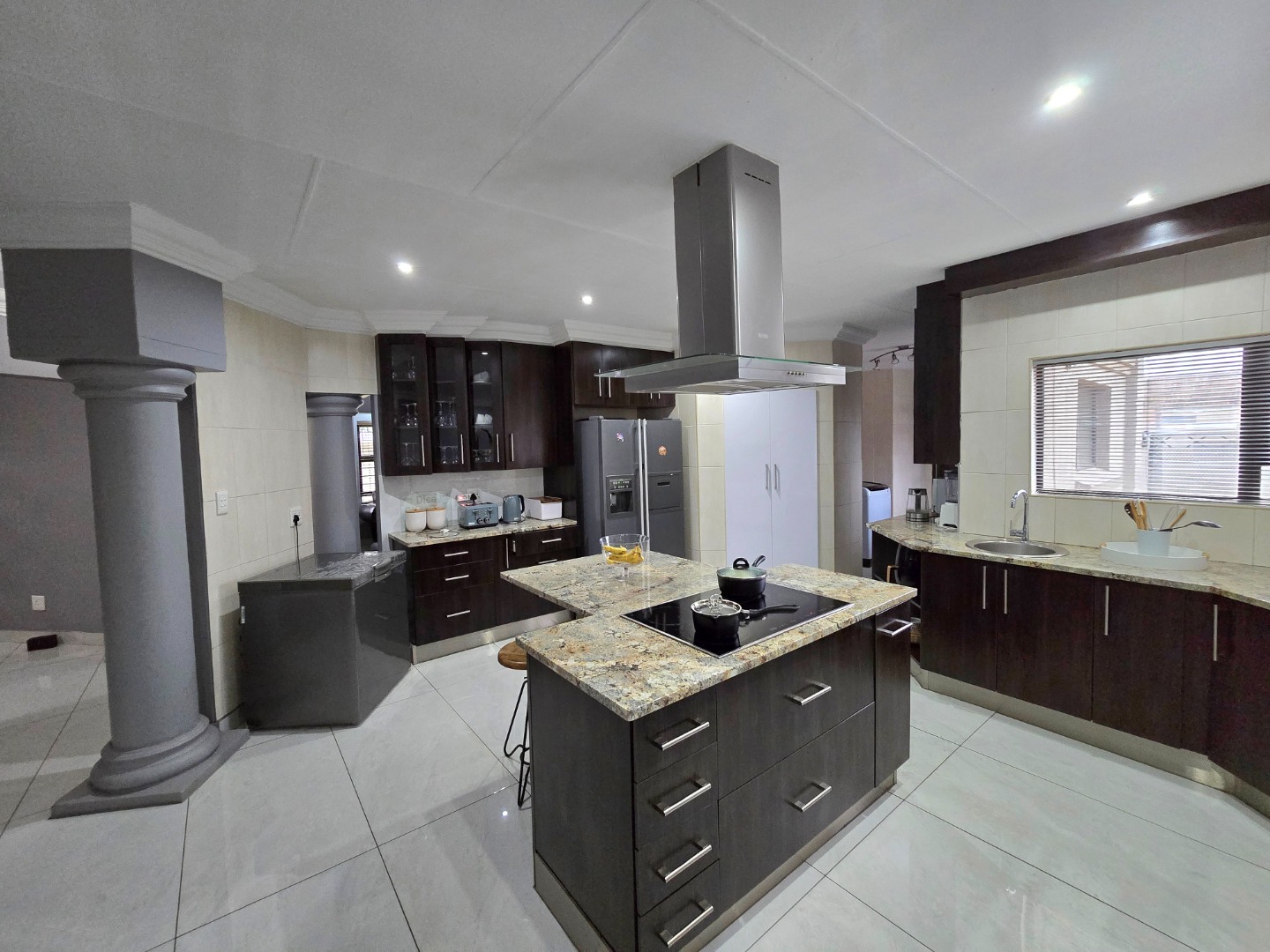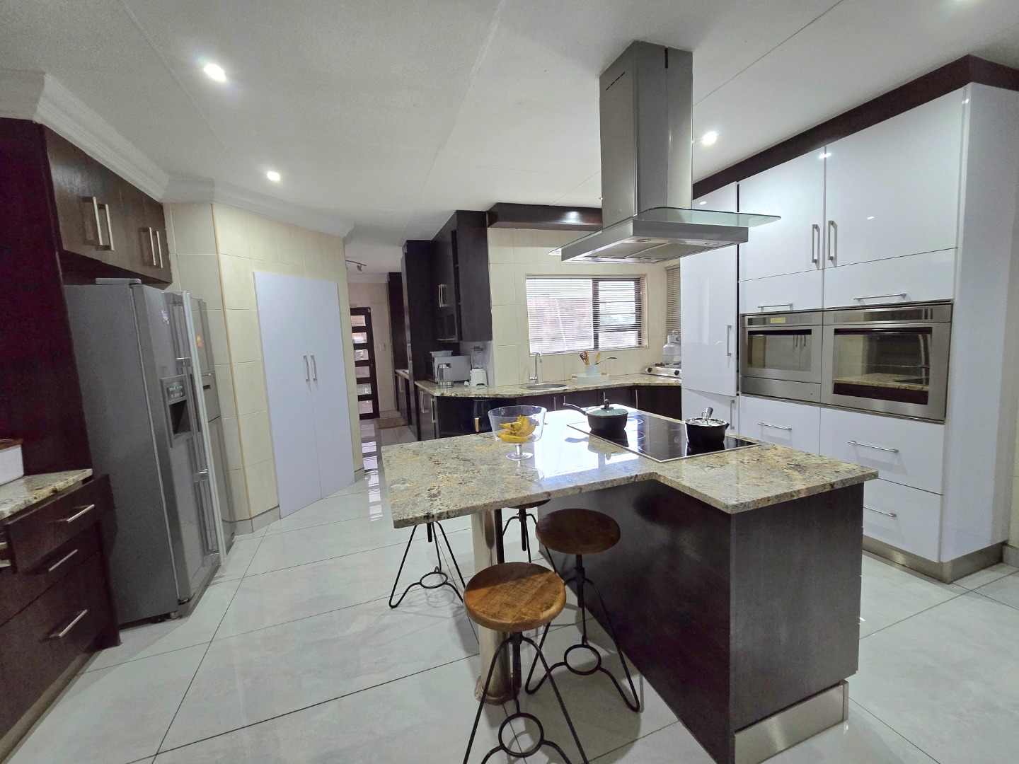 Experience modern luxury in this beautifully designed 4-bedroom home, perfectly located in the sought-after Aerorand neighborhood. With contemporary finishes, spacious living areas, and excellent entertainment features, this home offers the perfect blend of comfort and style. From the moment you enter, the welcoming lounge sets a warm and elegant tone. The modern open-plan kitchen, complete with a sleek center island and separate scullery, seamlessly connects to the dining area and TV room—creating an inviting family space. Sliding doors lead to a covered patio with a built-in braai, making it ideal for entertaining in any season.