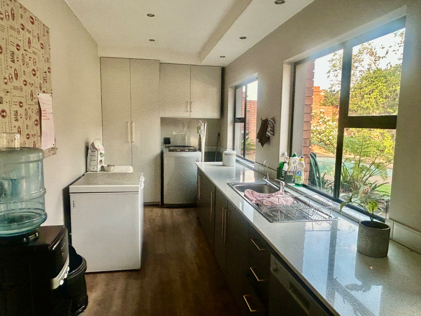 Security is paramount with 24-hour security, an alarm system, CCTV, electric fencing, an access gate, and a security post within the totally walled property. Embrace sustainable living with a solar geyser, solar panels, and a battery inverter, ensuring energy efficiency. Fibre connectivity is also available. This suburban estate offers a nature reserve lifestyle, providing a tranquil environment for residents.