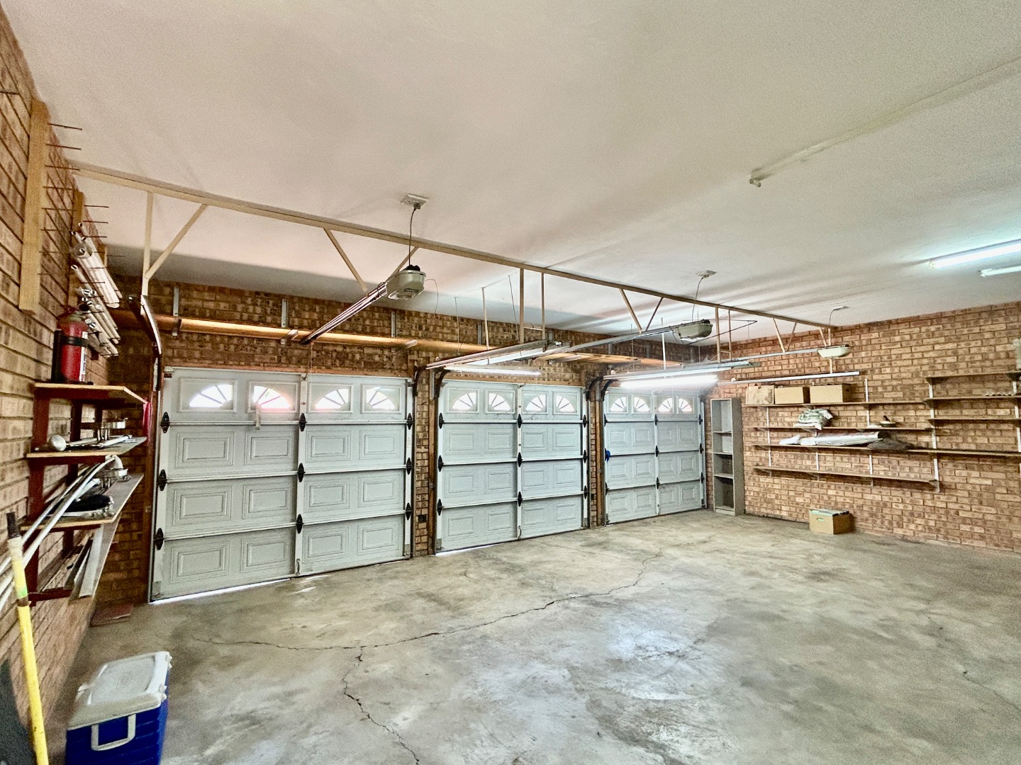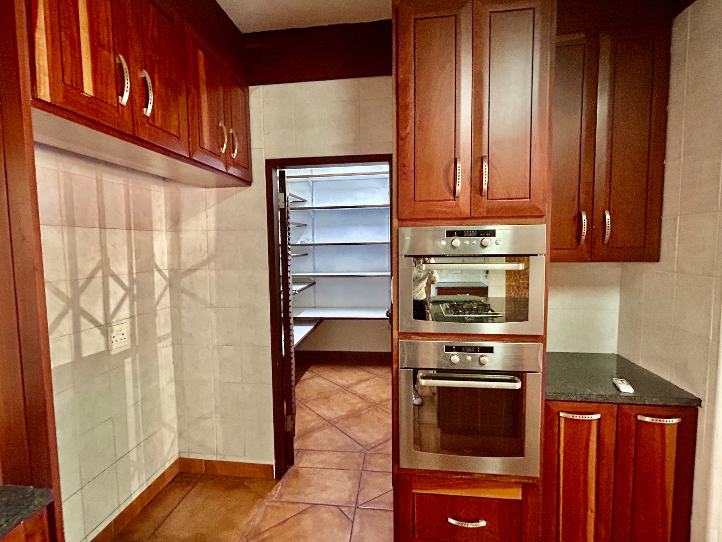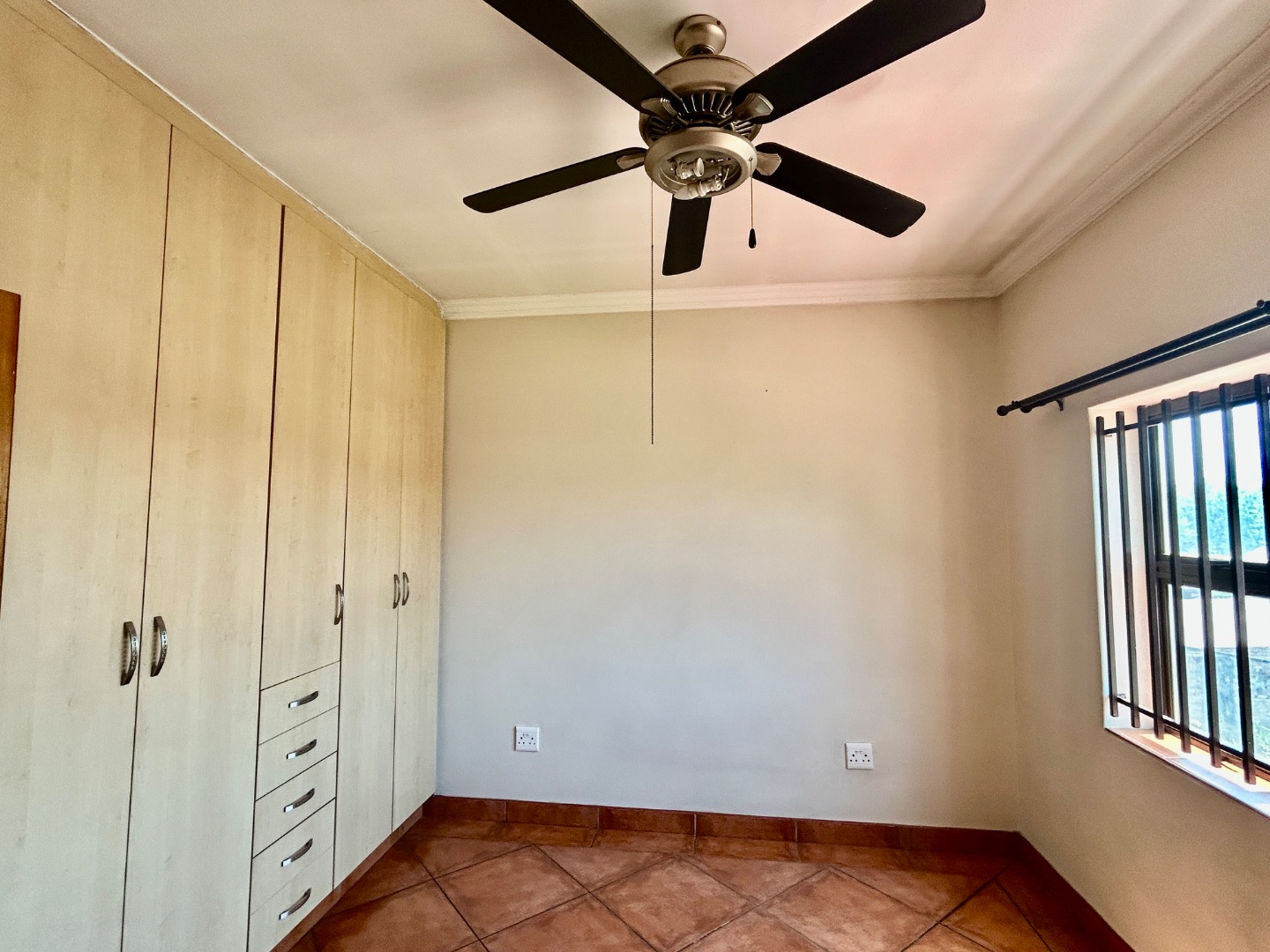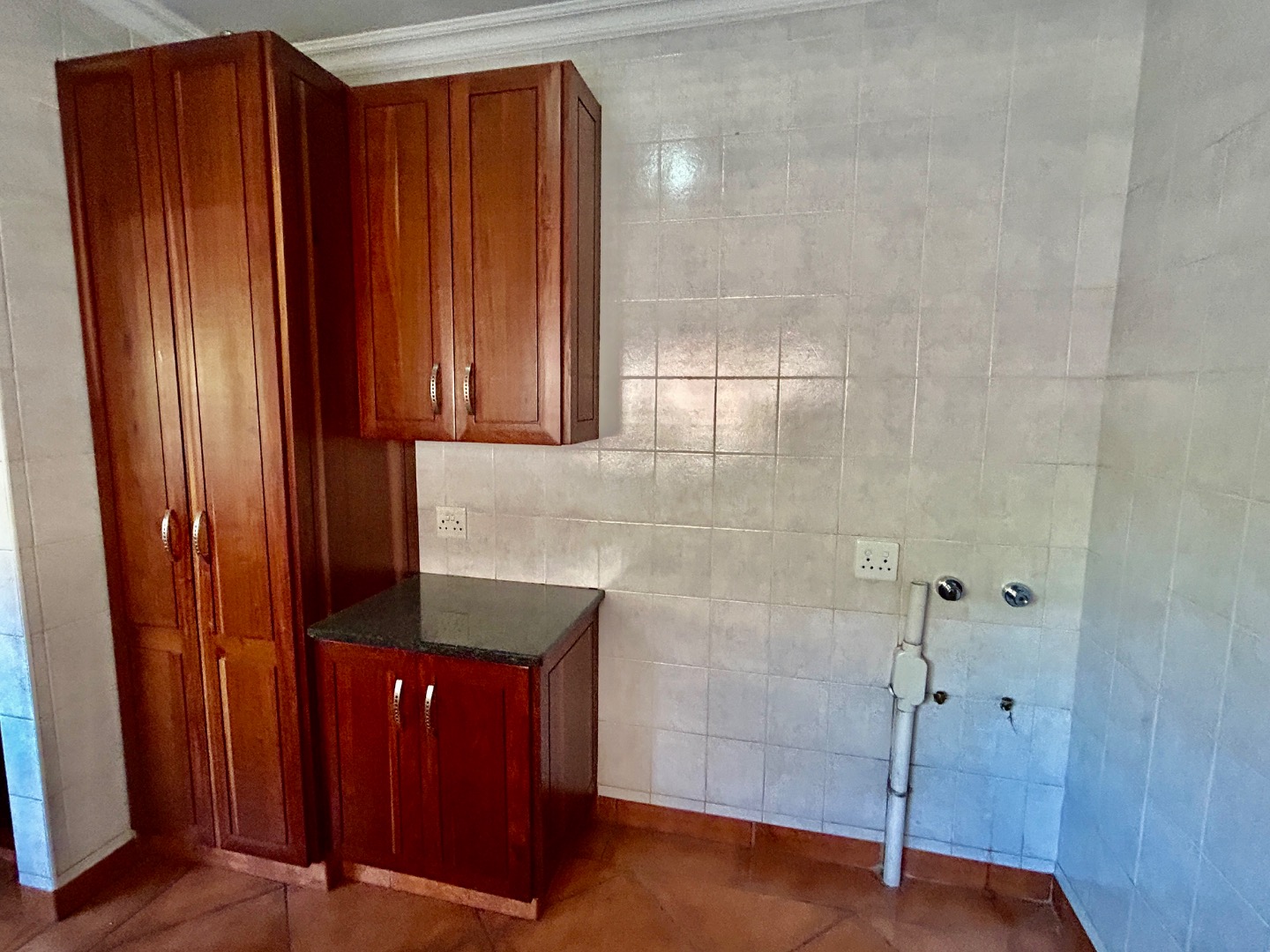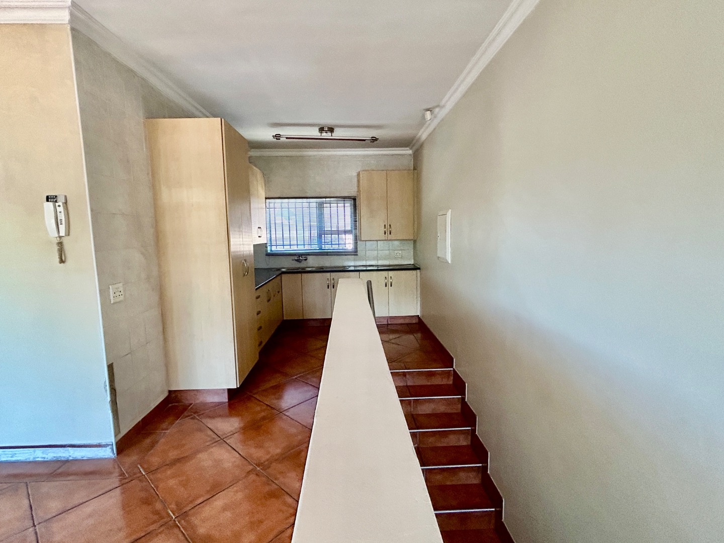 Outdoor spaces are designed for enjoyment, featuring an extensive paved courtyard, a private swimming pool, and a lush garden with a patio. A dedicated braai room with a built-in braai is ideal for year-round gatherings. Parking is abundant with three garages and four additional spaces. Security is paramount with security gates, burglar bars, electric fencing, and a totally walled perimeter. Modern conveniences include air conditioning, fibre connectivity, and water tanks.