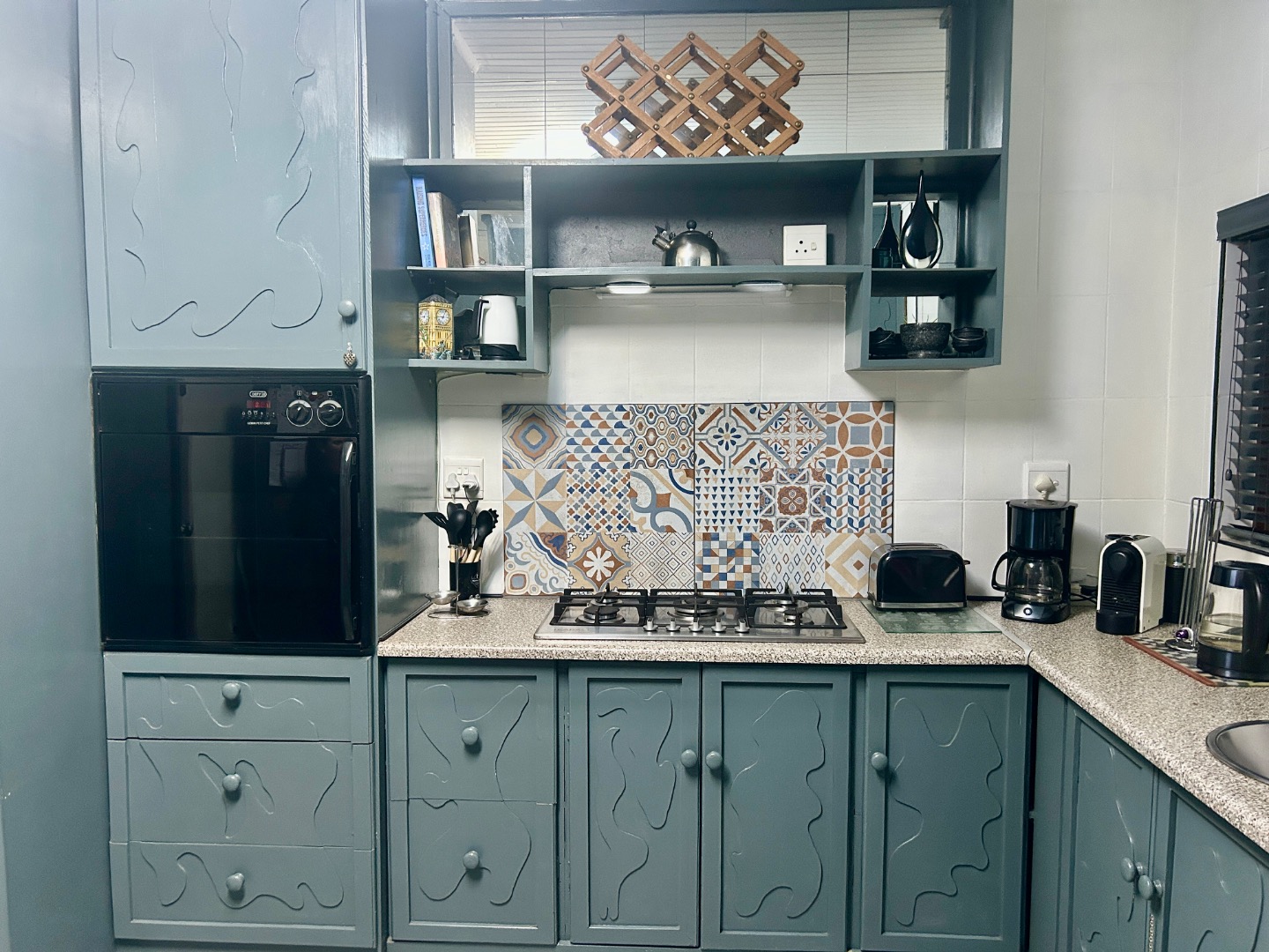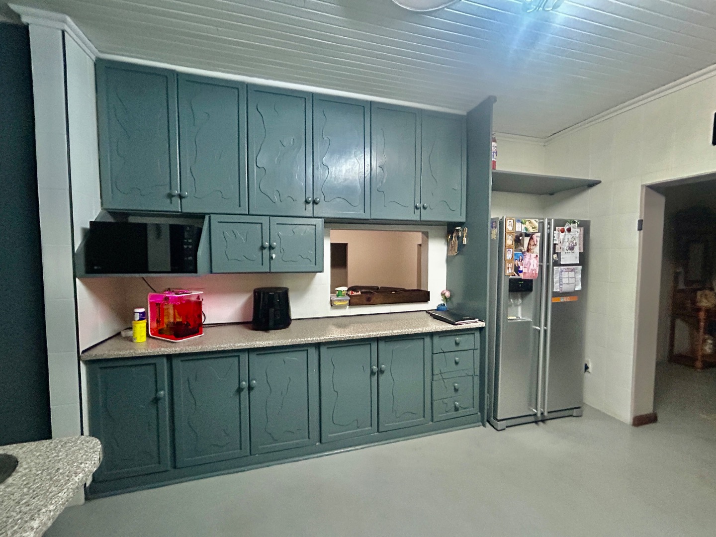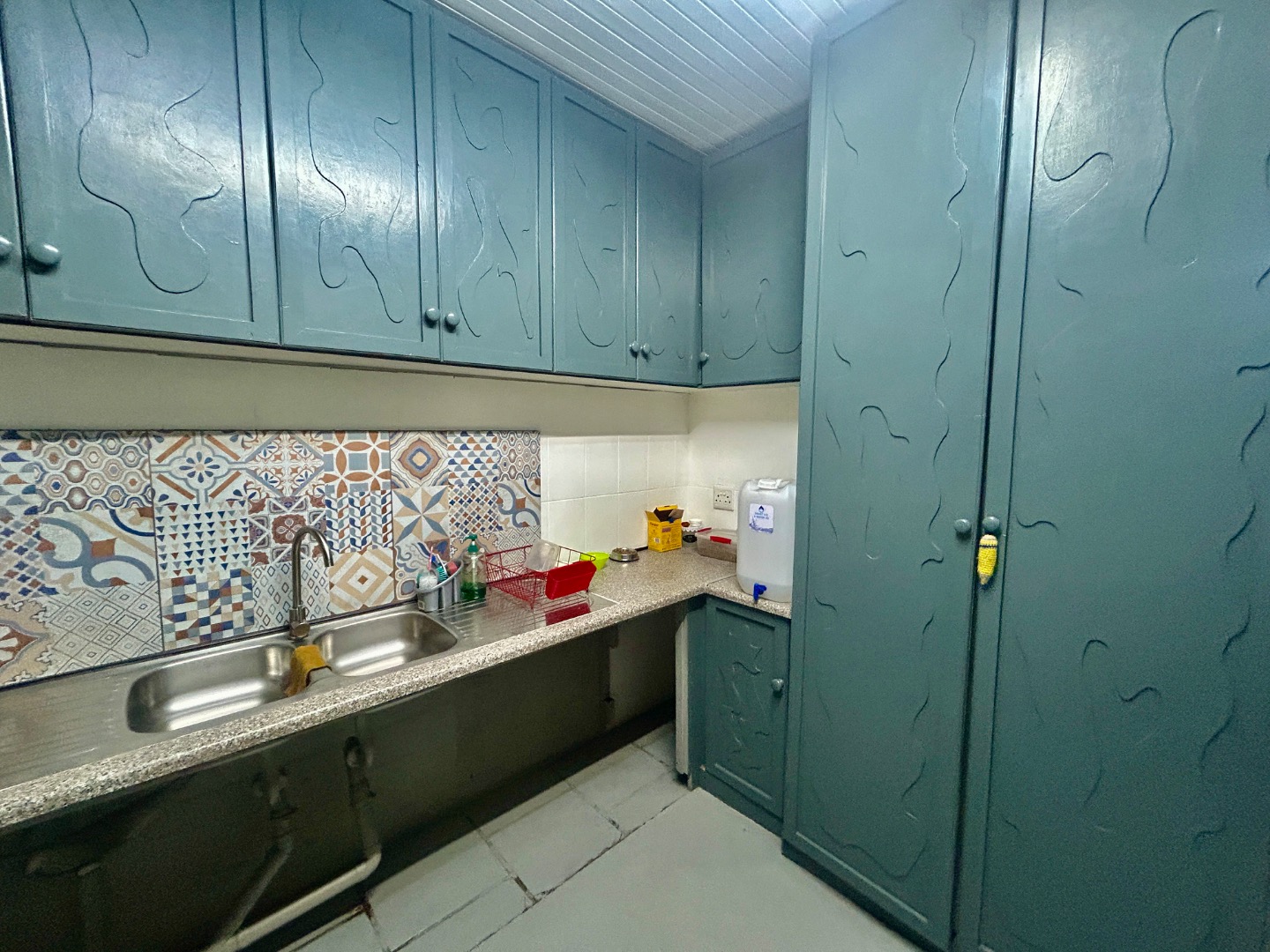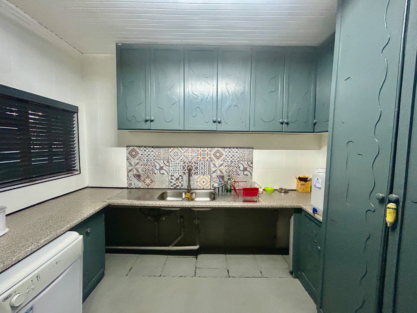 The Kitchen large with separate washing area and outside a covered area for drying, washing.