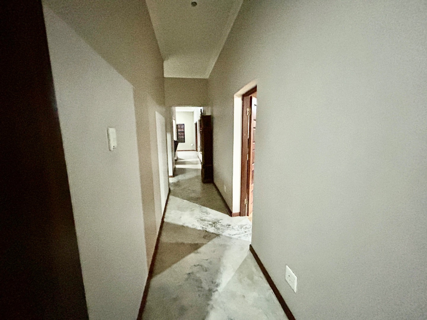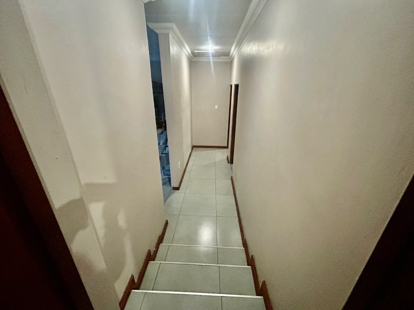 The entrance hall leads to the garages, the kitchen and down the hall to the living area.
