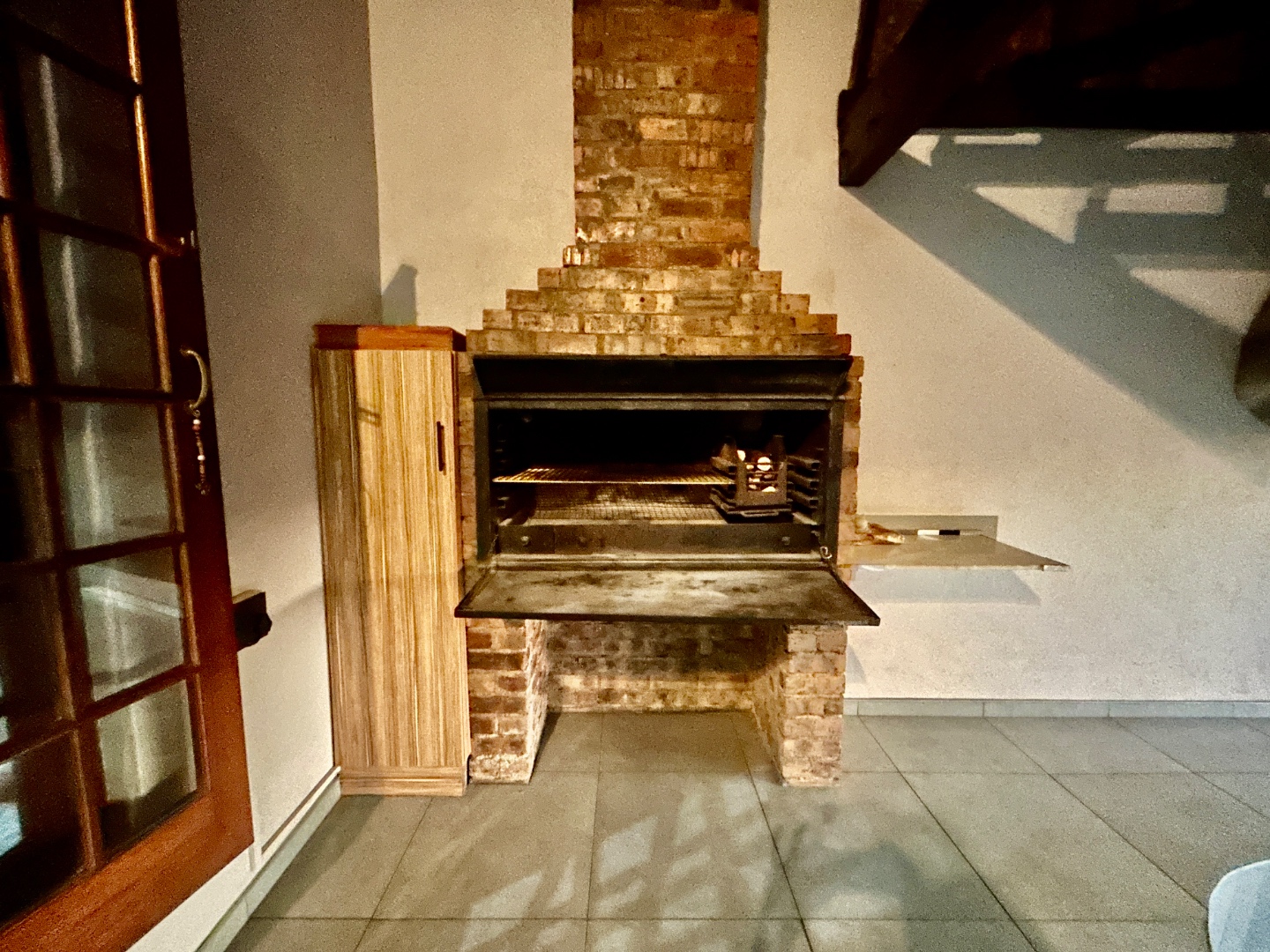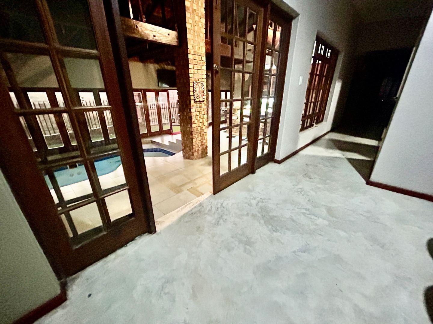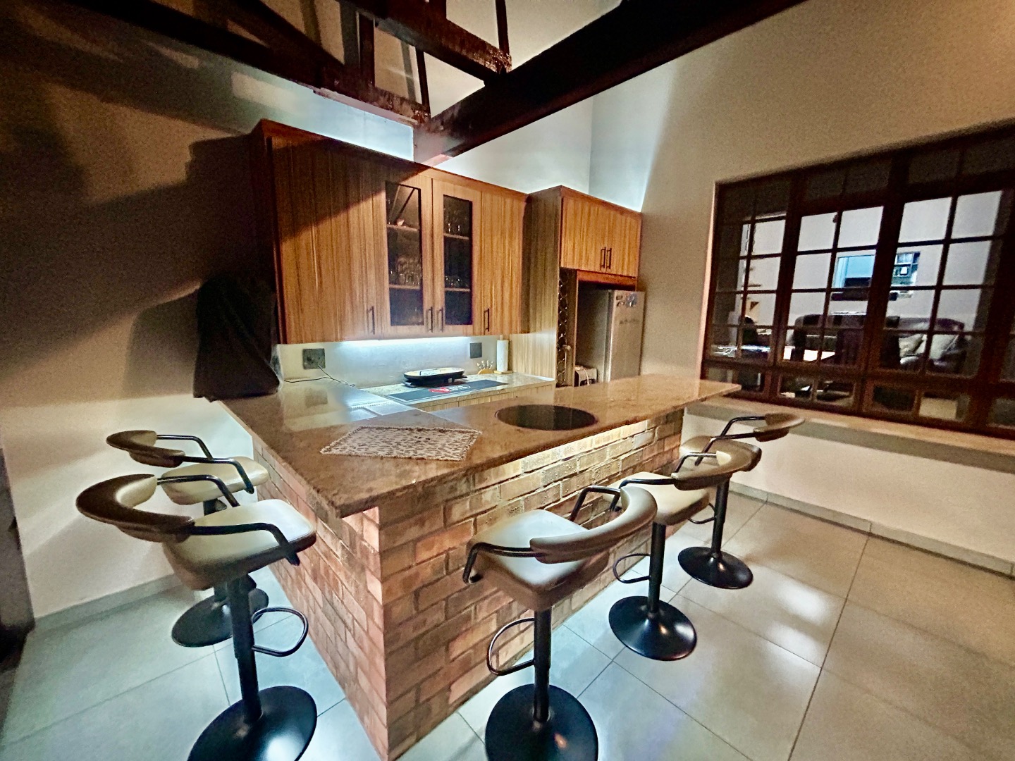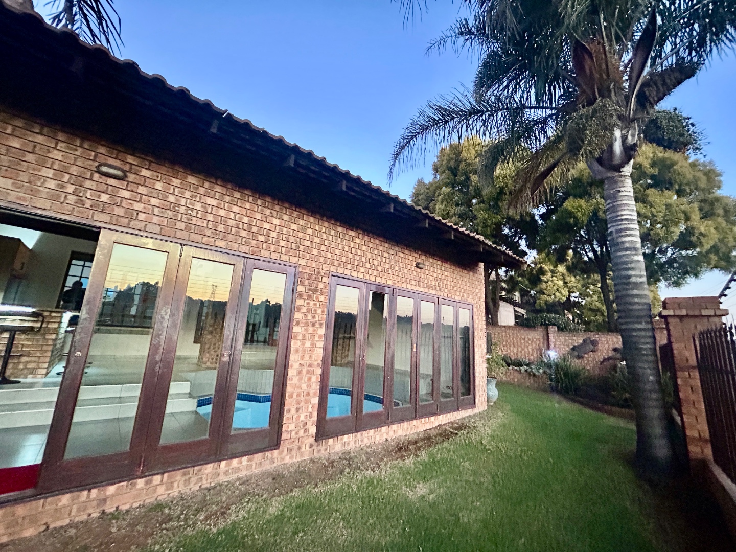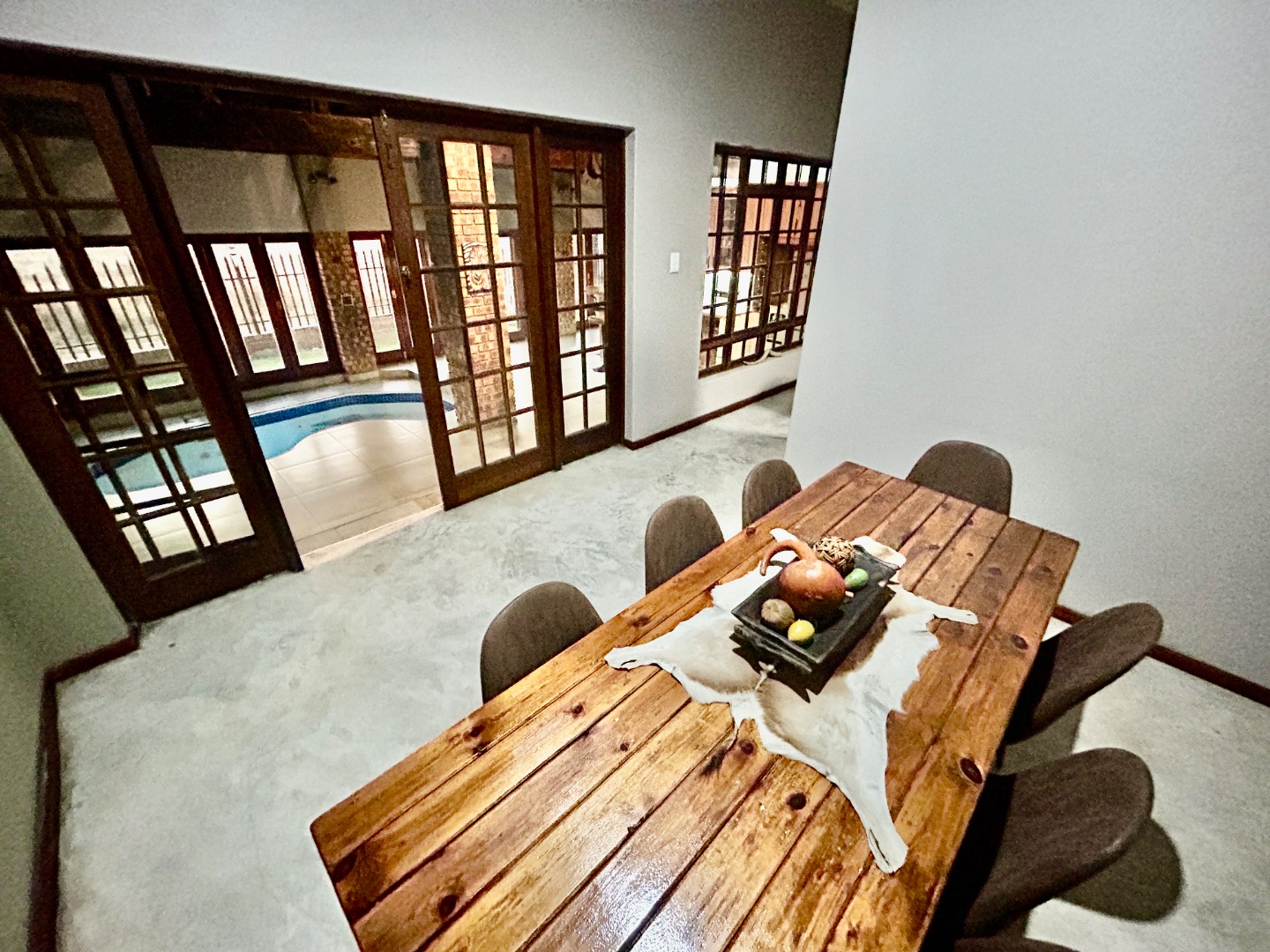 The entertainment area with warm pool, braai and bar are covered with glass folding doors.