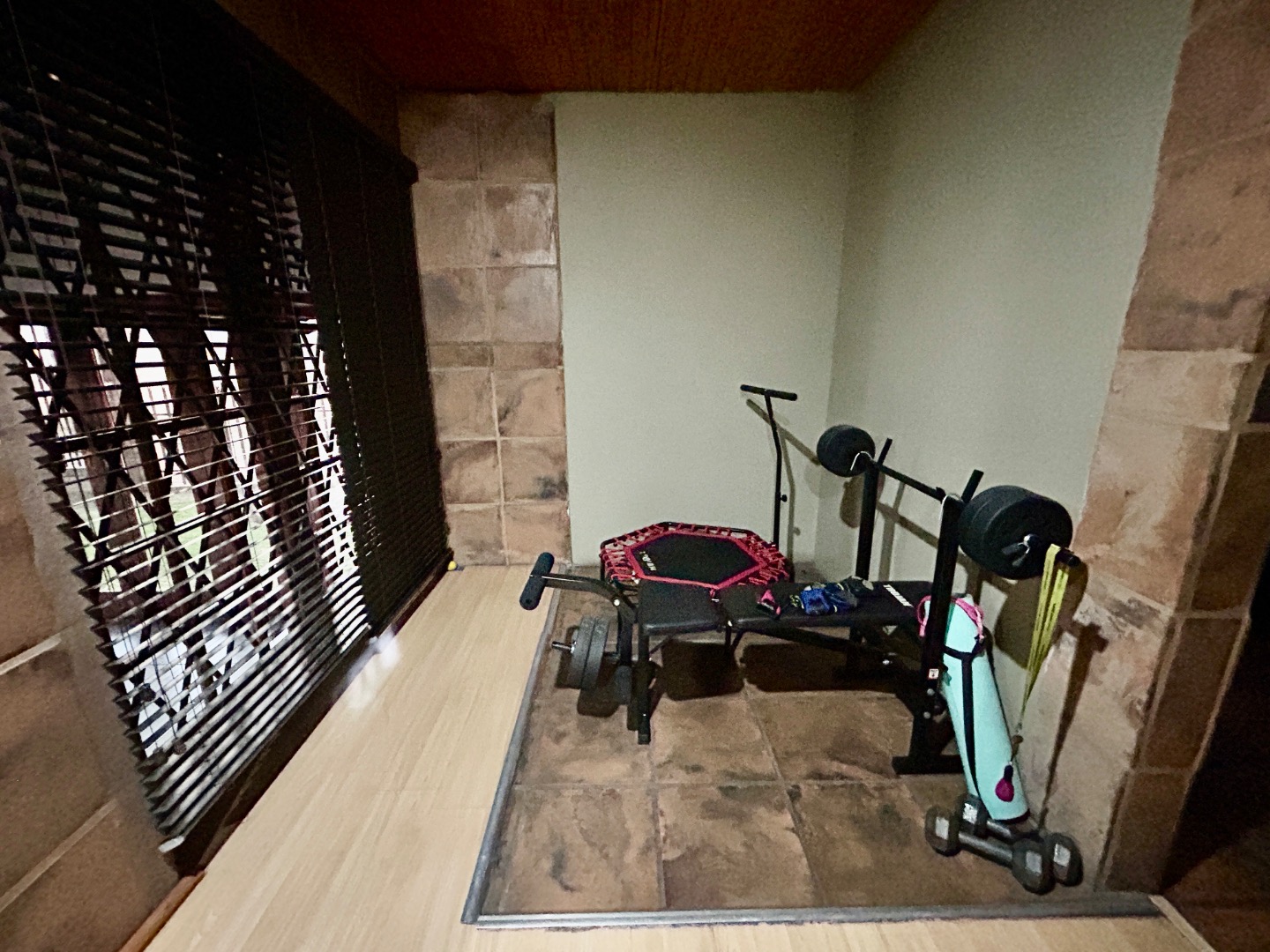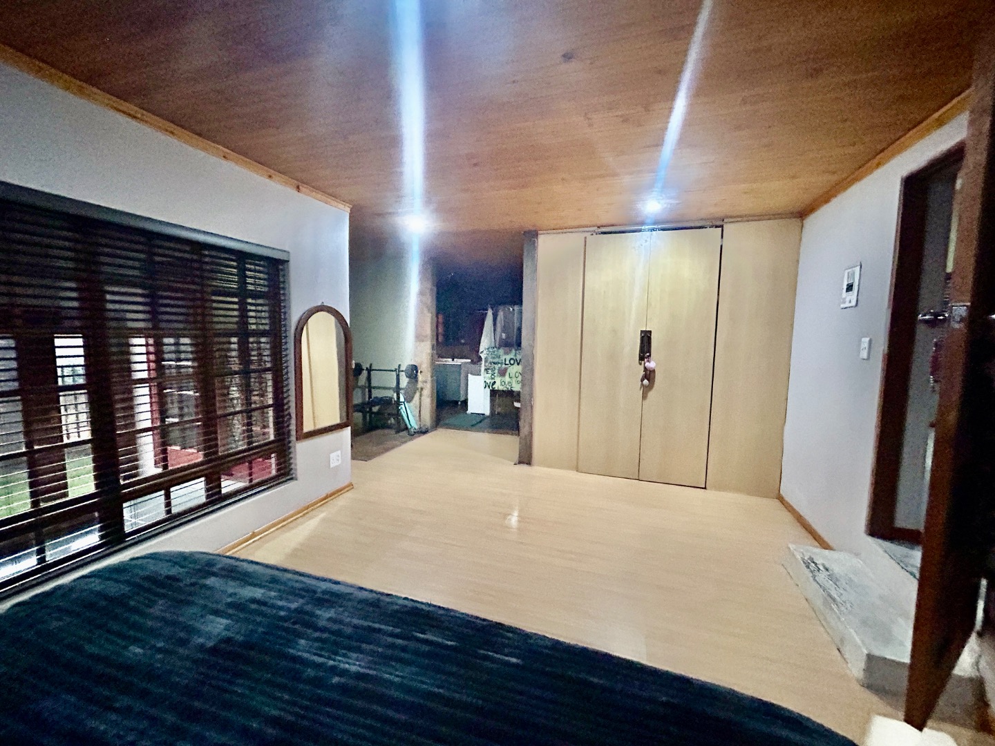 The main bedroom with corner for a Gim/ private little lounge.