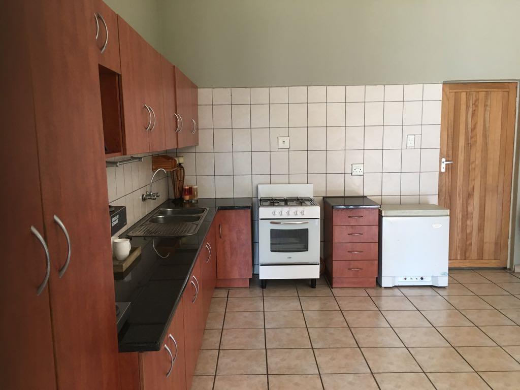 The kitchen has a gas stove and space for your double fridge/freezer.