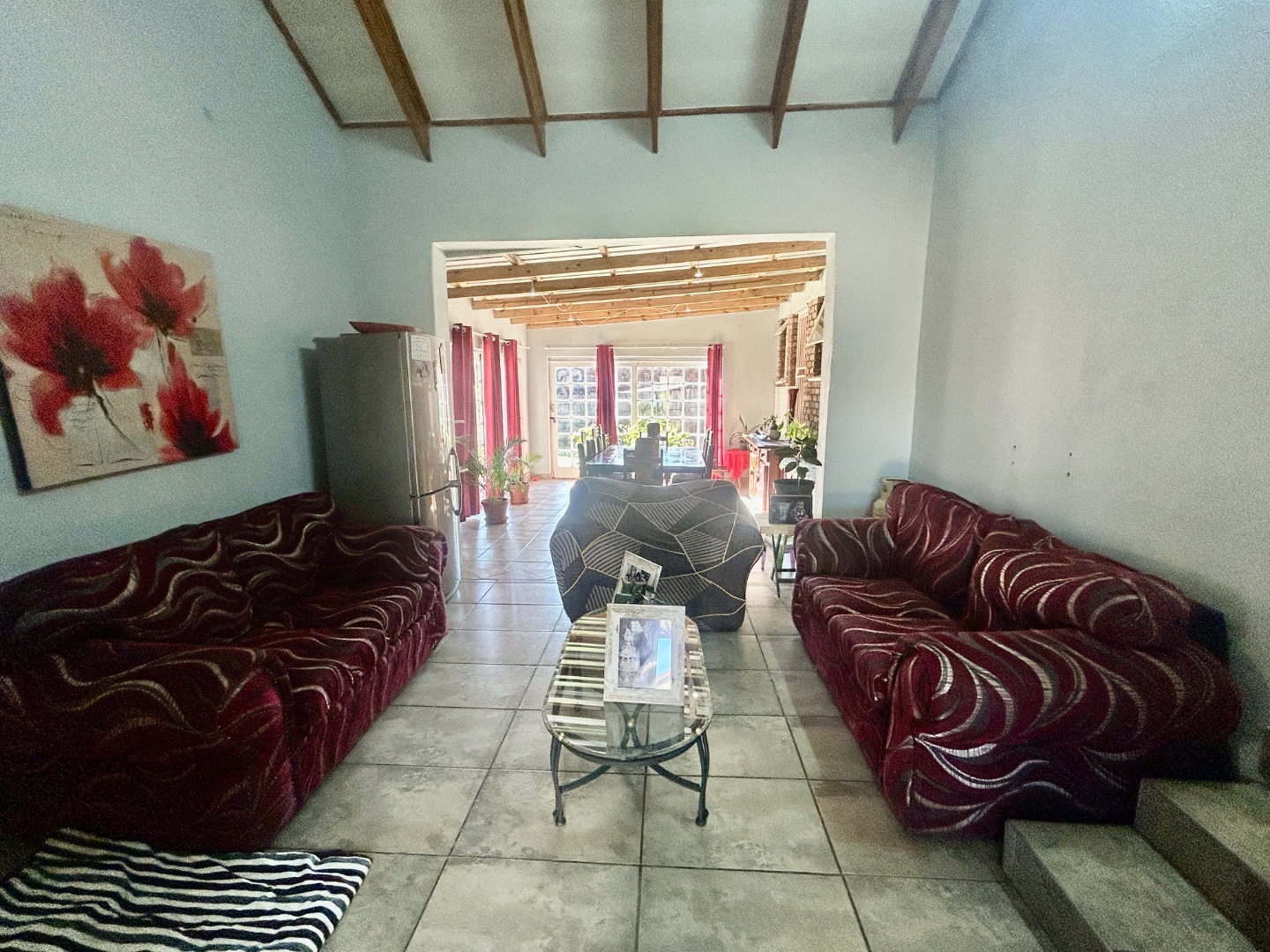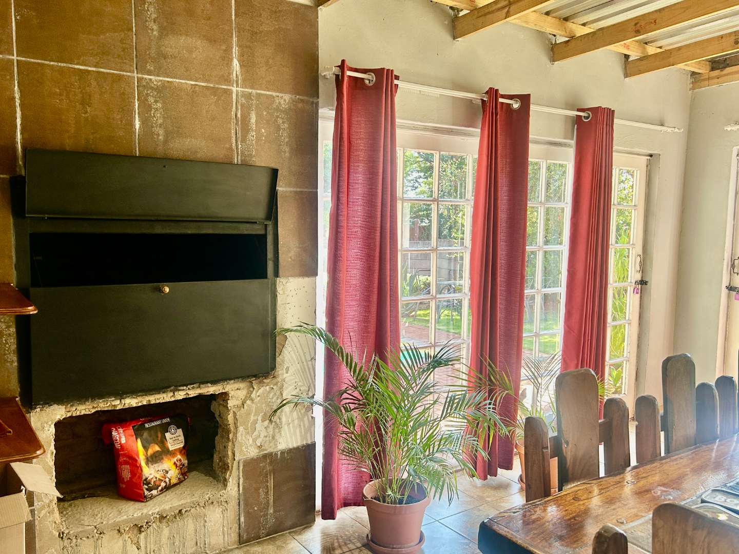 Inside, the residence presents a spacious layout with three lounges, a dedicated dining room, and two fully equipped kitchens, perfect for entertaining or accommodating extended family. Enjoy the warmth of a fireplace and the character of vaulted ceilings with exposed wooden beams, complemented by durable tiled flooring throughout. The open-plan design ensures a seamless flow between living areas.
