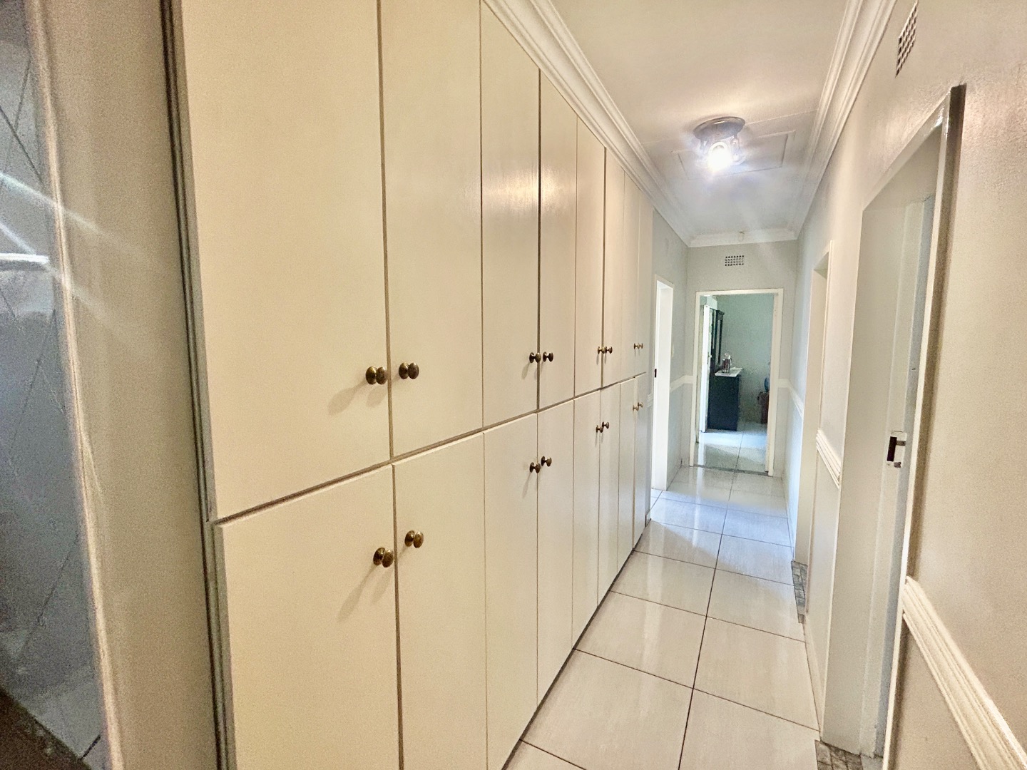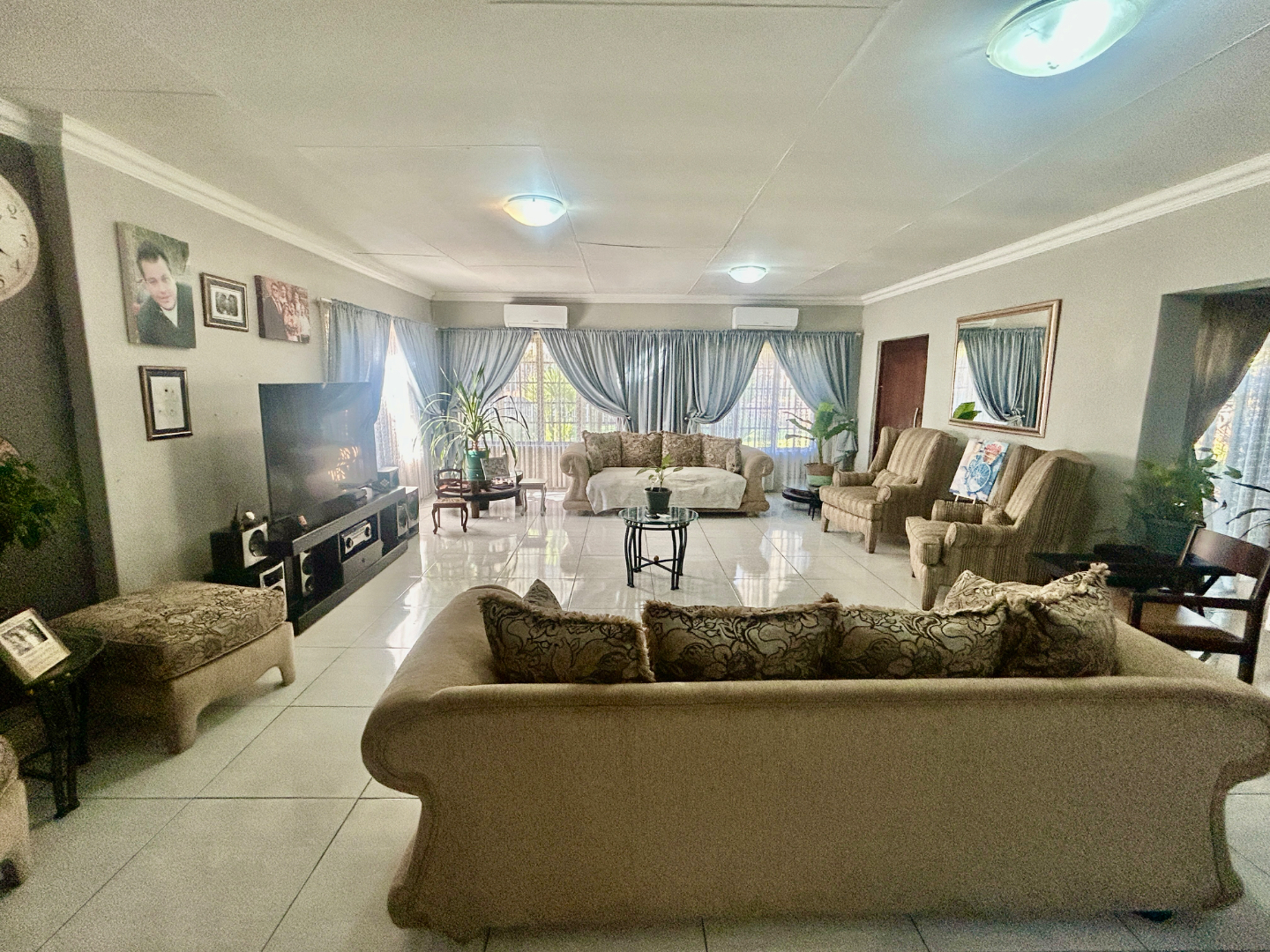 Comfort is paramount with six generously sized bedrooms and five-and-a-half bathrooms, including four luxurious ensuites. Practical amenities such as a pantry, laundry, and an entrance hall add to the home's functionality. Outdoor living is a delight with a patio, deck, built-in braai, and a refreshing pool, all set within a private garden.