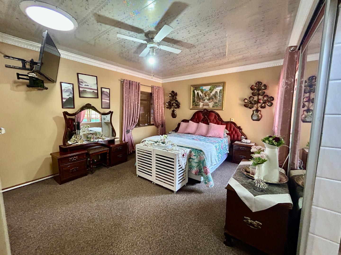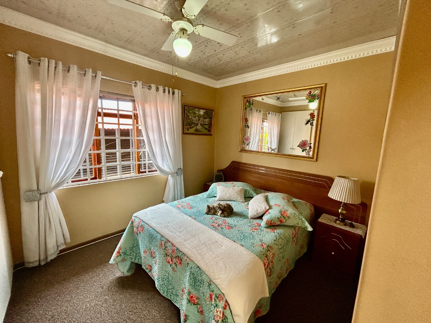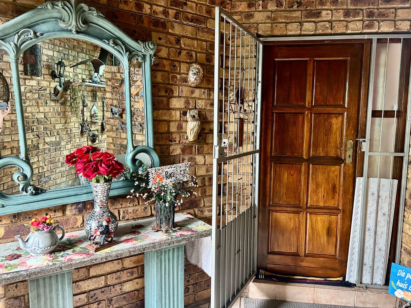 Security is robust with an alarm system, access gate, electric fencing, security gate, and burglar bars. This home is equipped for modern, efficient living with fibre connectivity, solar panels, and a battery inverter. This well-regarded residential area is known for its family-friendly environment and convenient access to local amenities.