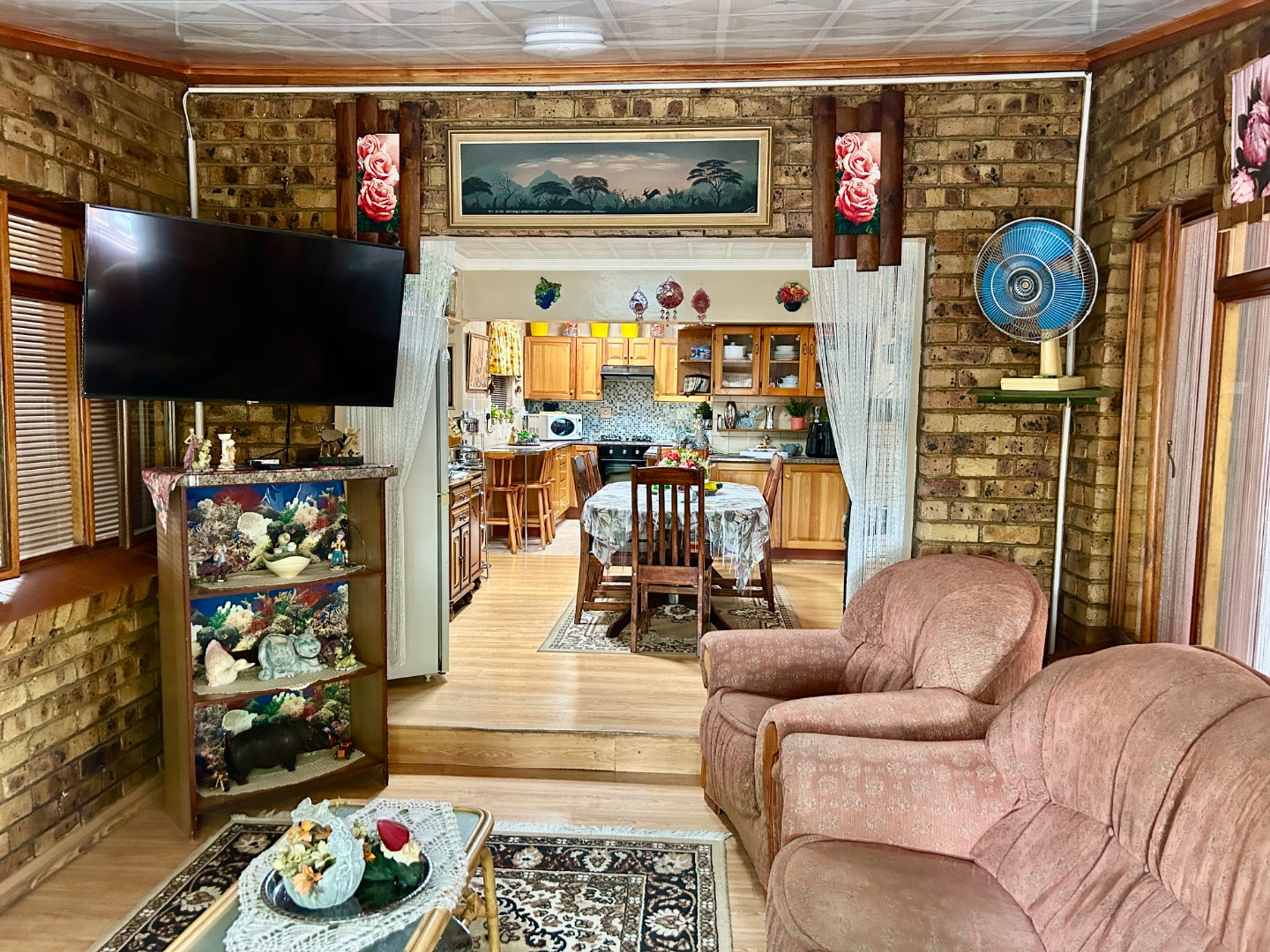 Discover this inviting 3-bedroom, 2-bathroom family home in Gholfsig, Middelburg, South Africa. The property features a durable brick exterior, a modern wood-look double garage door, and a neatly paved driveway. Spanning 221.33 sqm on a 578 sqm erf, this residence offers an open-plan interior. It includes two lounges, a dining room, a family TV room, a well-appointed kitchen, and room for a study. A cozy fireplace and pressed ceilings enhance the living spaces.