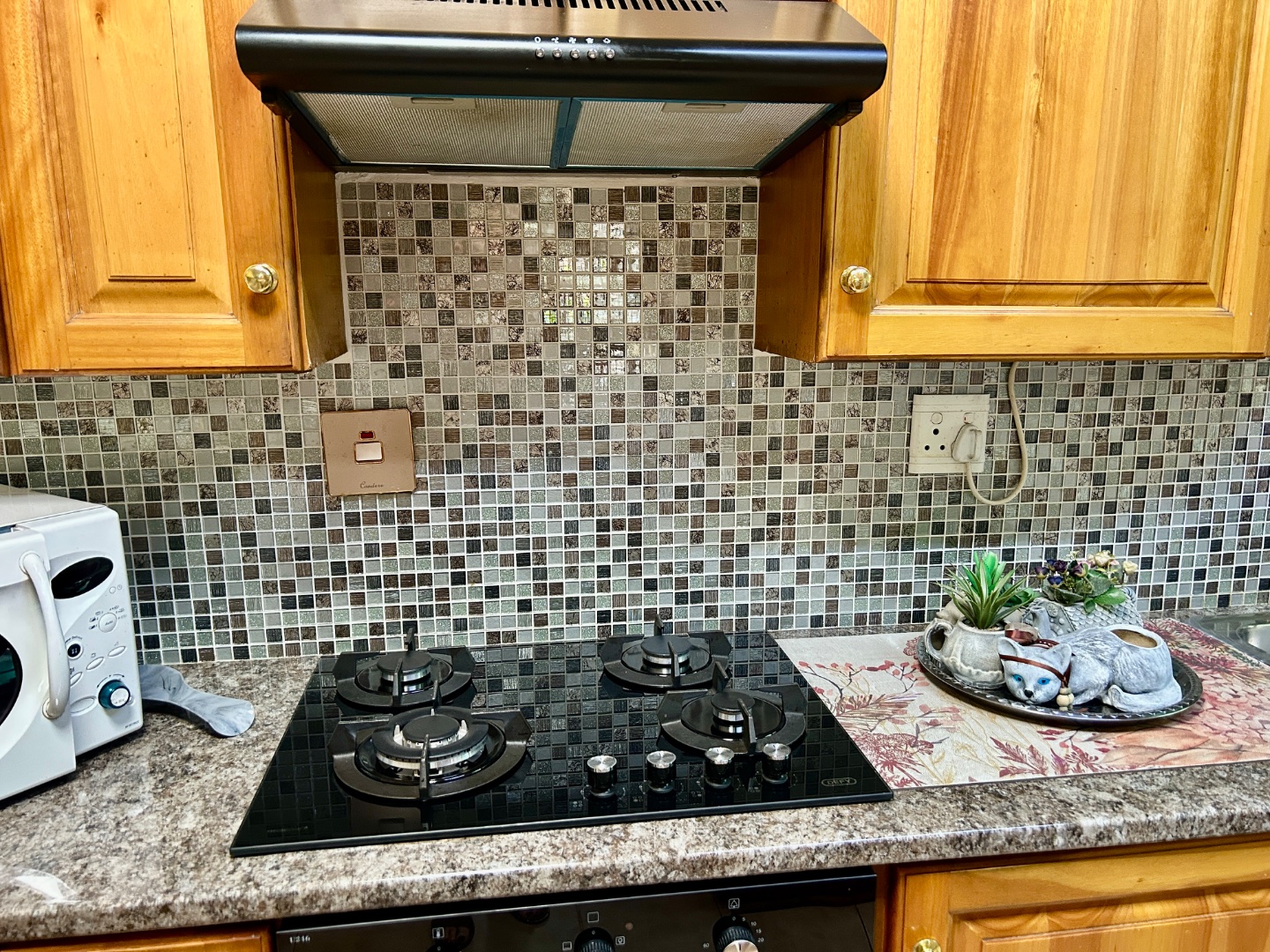 Gas hob stove, four plate with 9kg gas bottle in cupboard