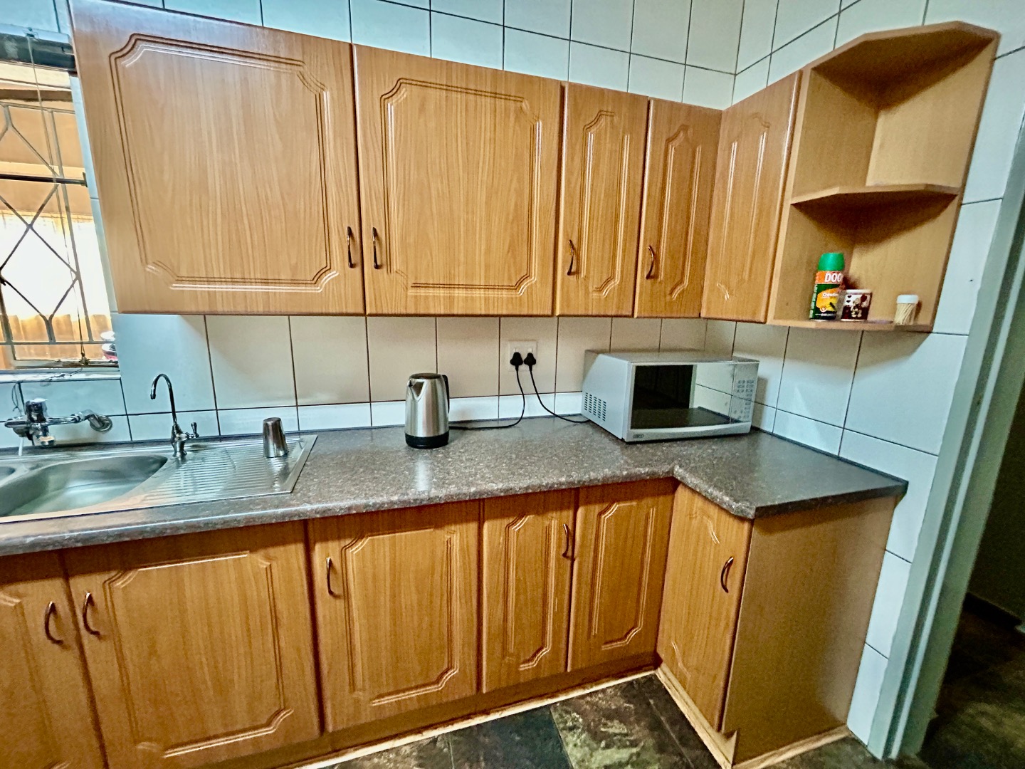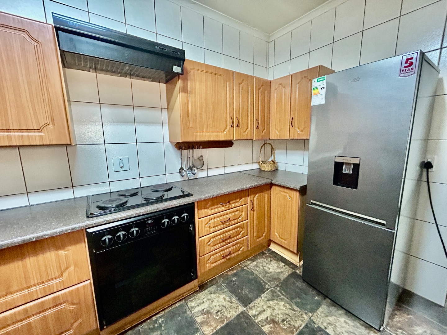 * Enhanced Security: Alarm, Burglar Bars, Security Gate, Walled Perimeter and beams.