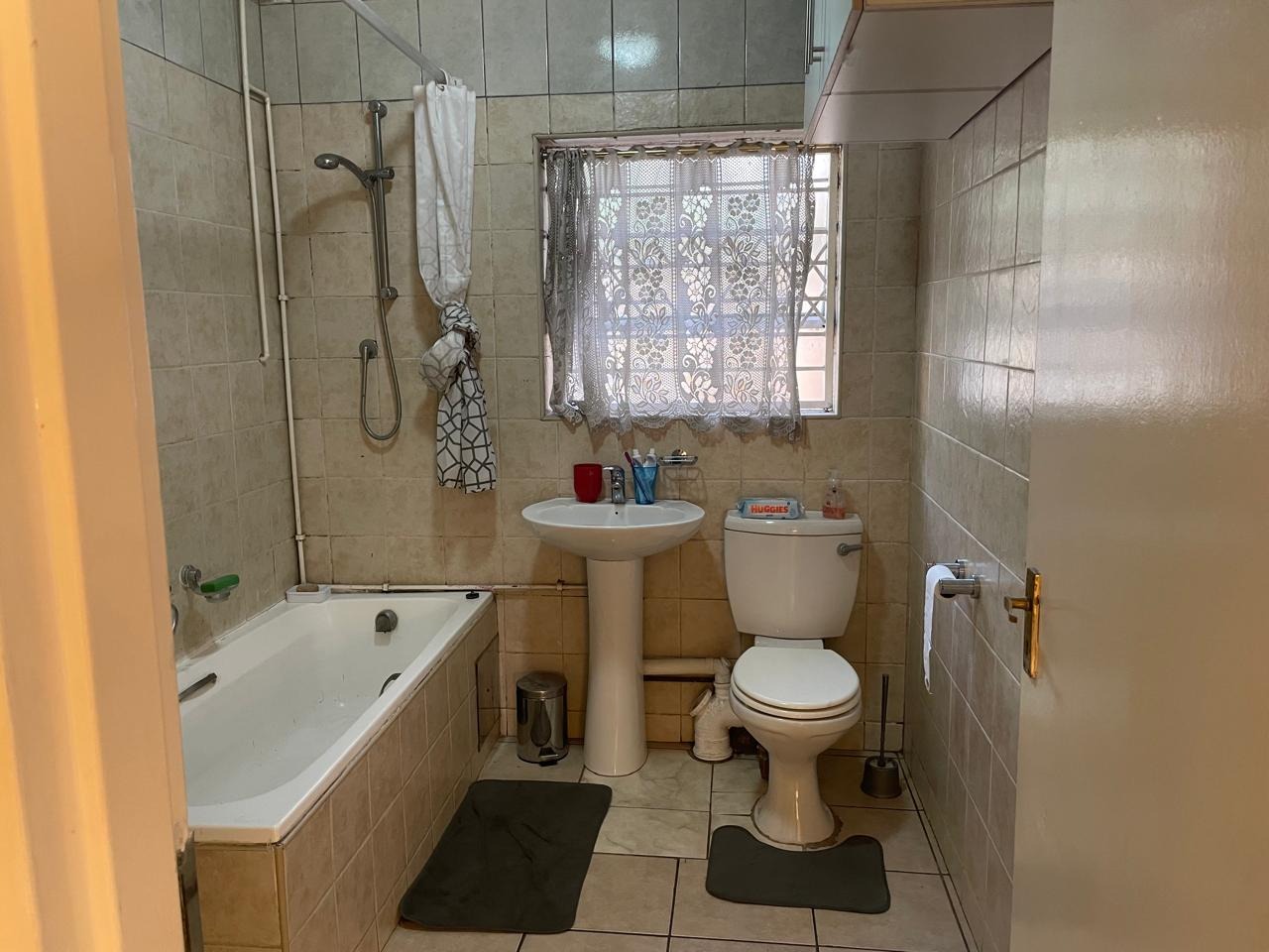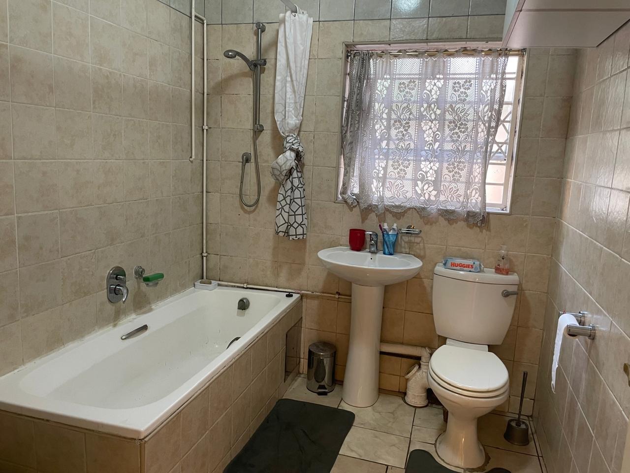 The home comprises two comfortable bedrooms, each featuring tiled flooring and good natural light. One bedroom includes a spacious built-in wardrobe for organised storage. The single bathroom is fully tiled and includes a bathtub with an overhead shower, a pedestal sink, and a toilet, ensuring all necessary facilities are available.