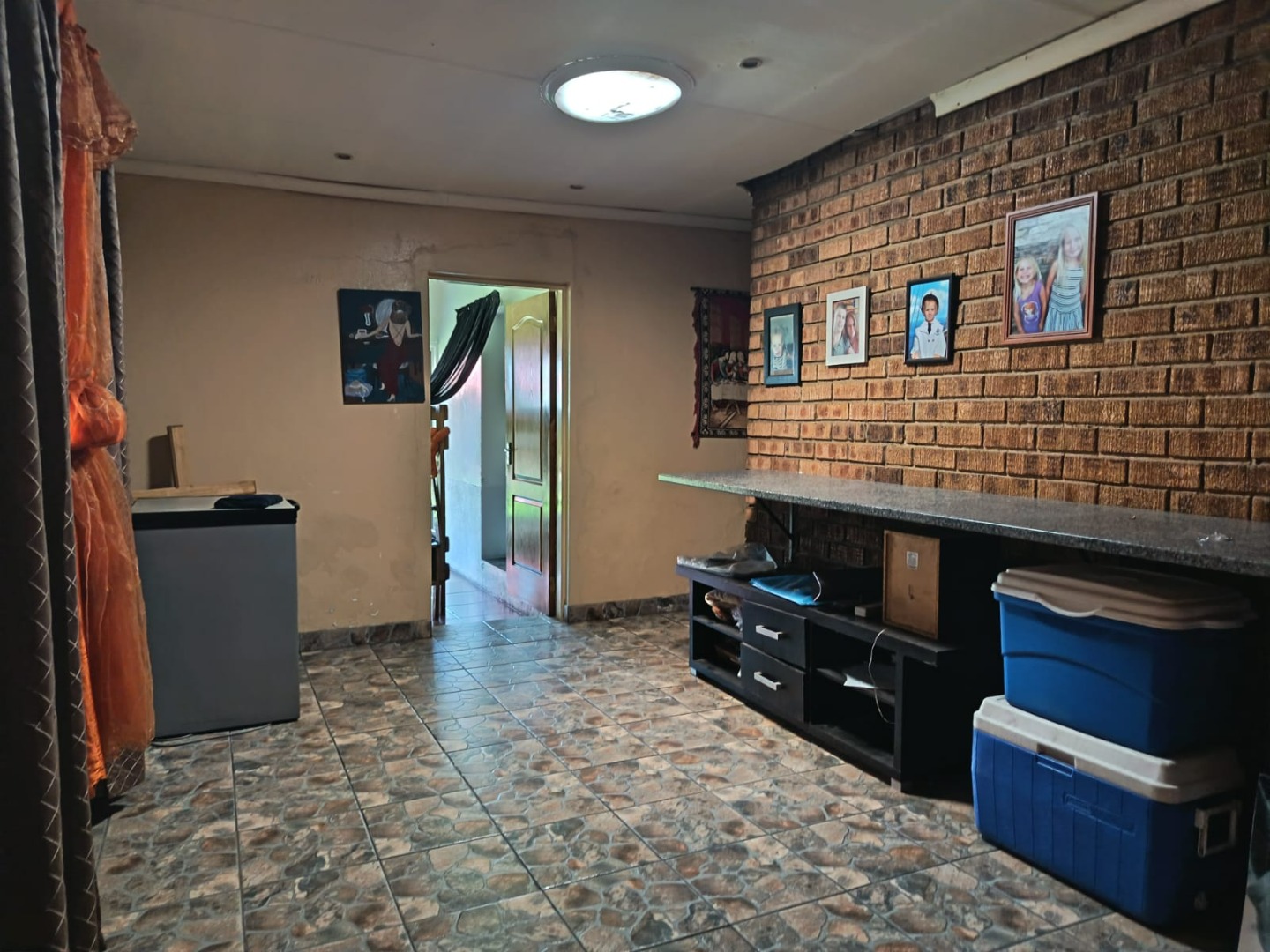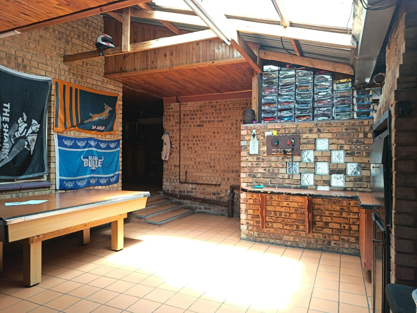 An enclosed veranda provides a versatile space that can be used as a home office. Additional conveniences include a dedicated braai room and a separate laundry room.