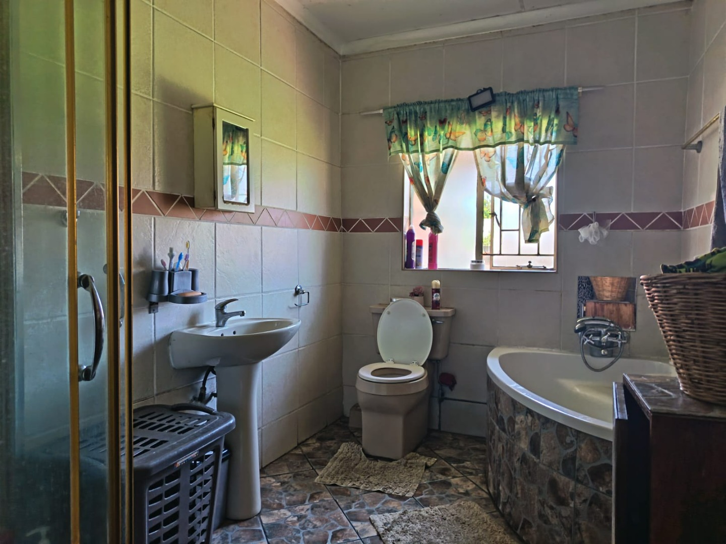 - Full bathroom with basin, bath, and shower