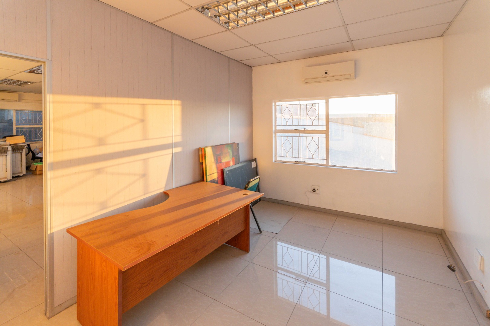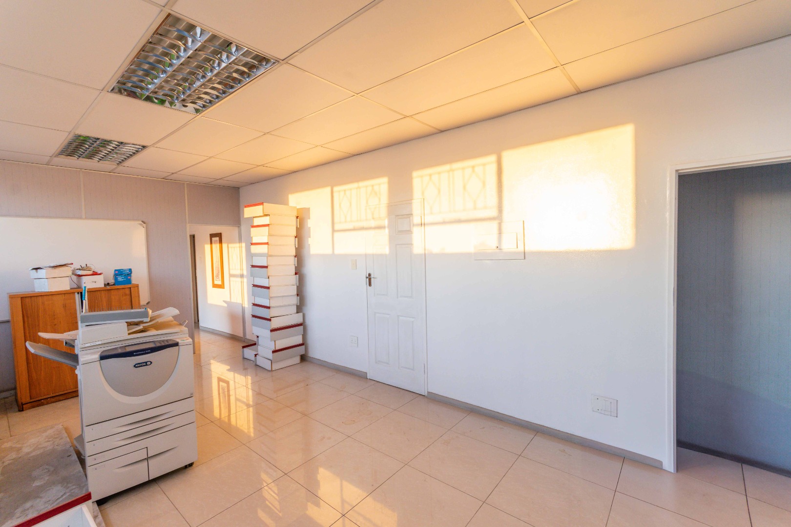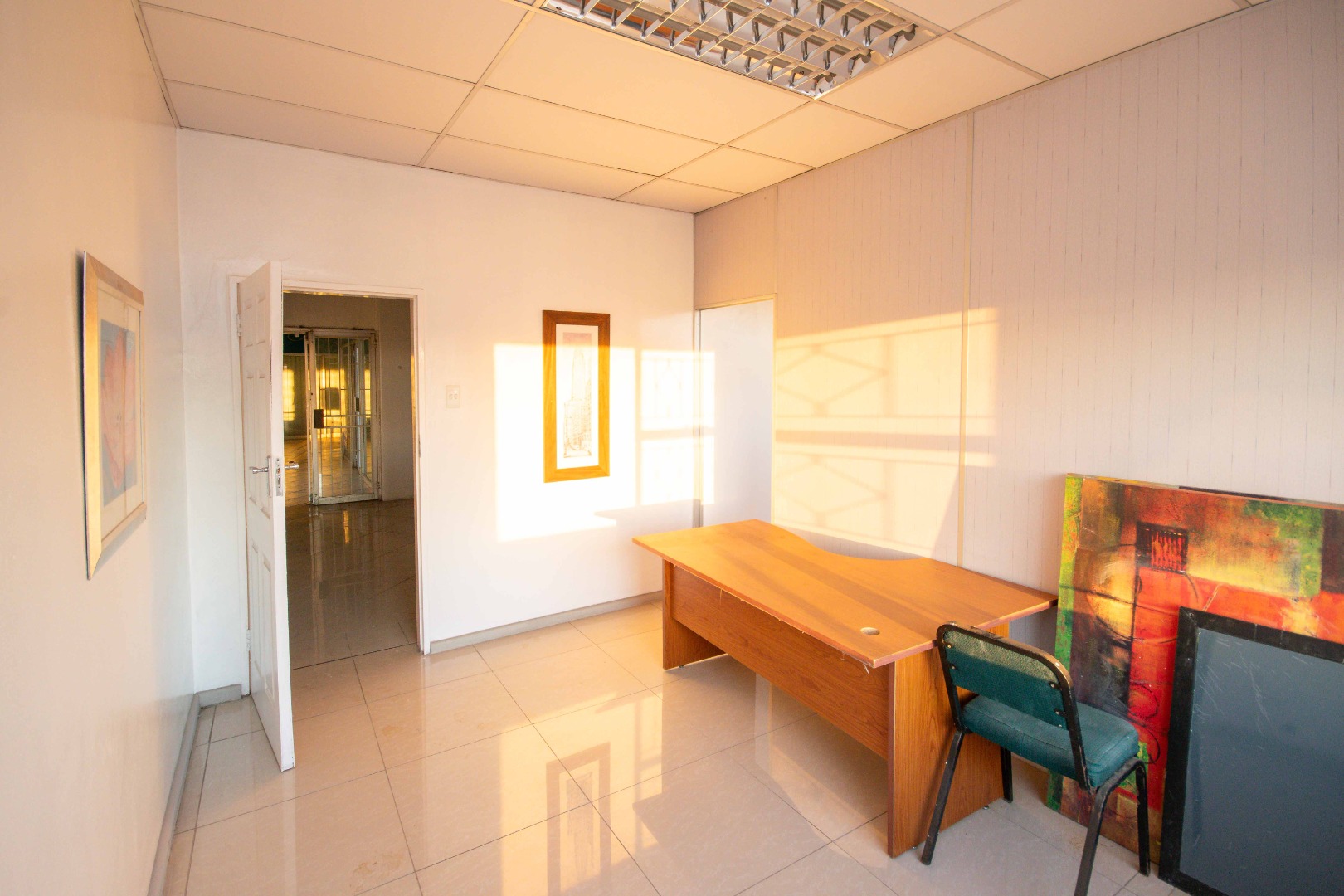 This commercial property presents a versatile opportunity in the heart of Middelburg Central, South Africa. Spanning 104 square meters of floor space, this first floor building offers adaptable layouts suitable for various business operations. The interior features a combination of open-plan areas and partitioned offices, all benefiting from ample natural light and clean tiled flooring. The current layout features 3 offices, boardroom and reception. A functional kitchen and shared bathroom facilities are included, providing essential amenities for staff and clients.