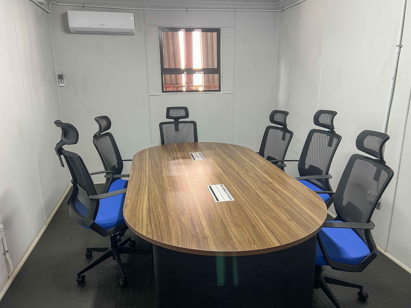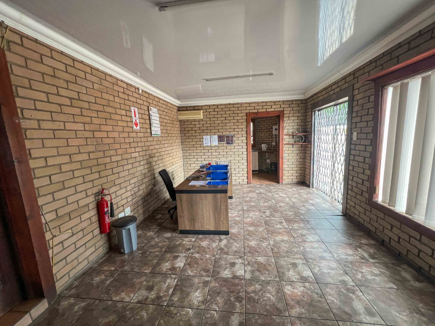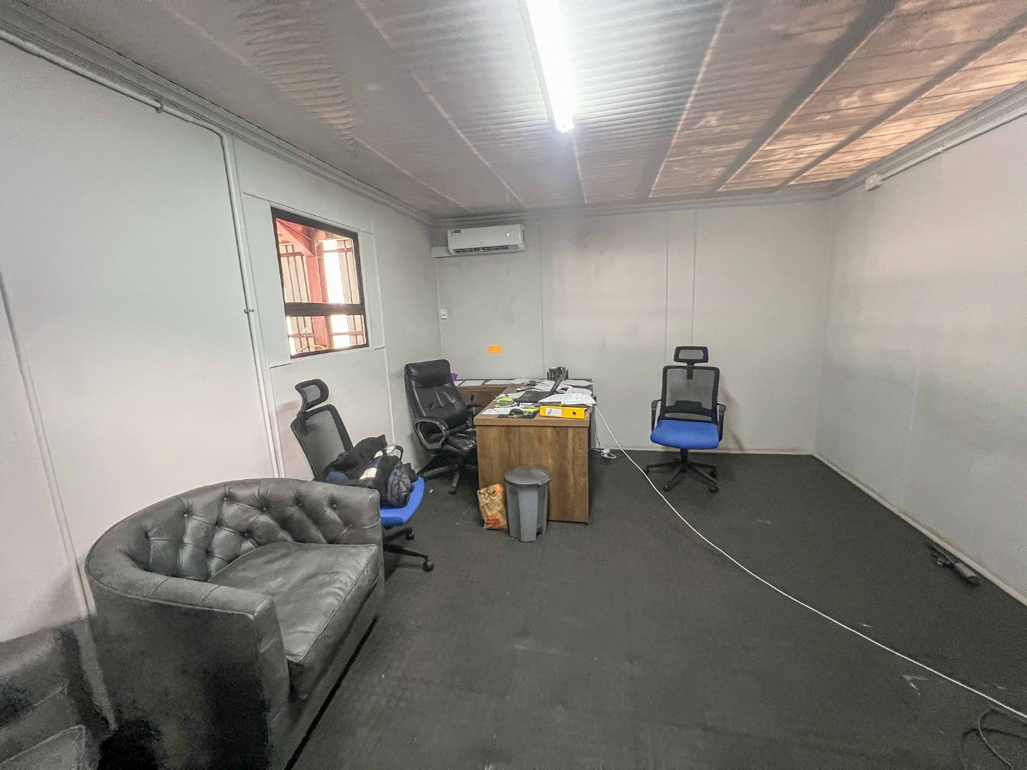 Security is addressed with a secure entrance and security gate, while there are five air conditioners installed in the offices. The current business uses single phase electricity, but cabling is installed to upgrade to 3-phase.