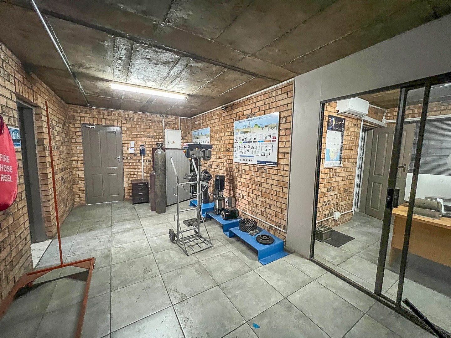 These workshops provide an opportunity for businesses seeking a prominent location with considerable space. The building floor area of 770.00 sqmis divided into two workshops, one about 200m2 and the other about 350m2. The combined office space is about 200m2. Most of the office space is in building 1 with a double storey.