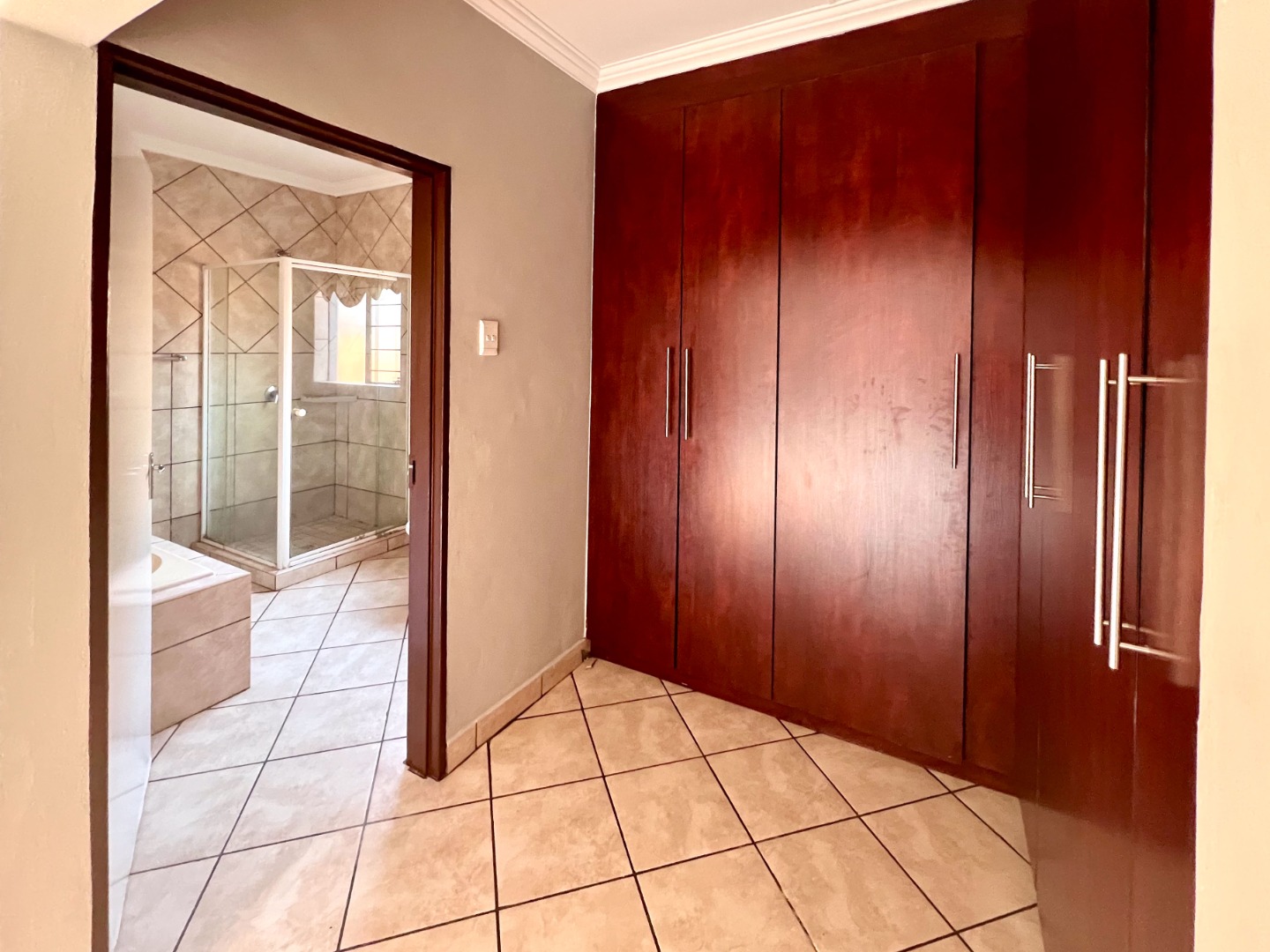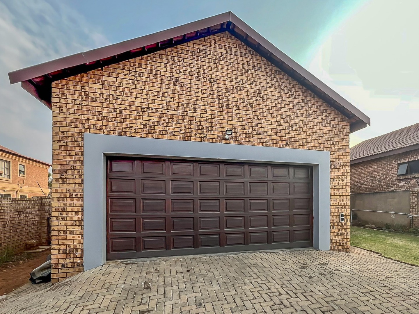 This delightful property offers three spacious bedrooms, two full bathrooms, and a double garage. The main bedroom includes ample cupboard space for your convenience. The living area opens up to a stoep with a built-in braai, ideal for entertaining guests. You’ll also enjoy a private back garden, perfect for relaxation.