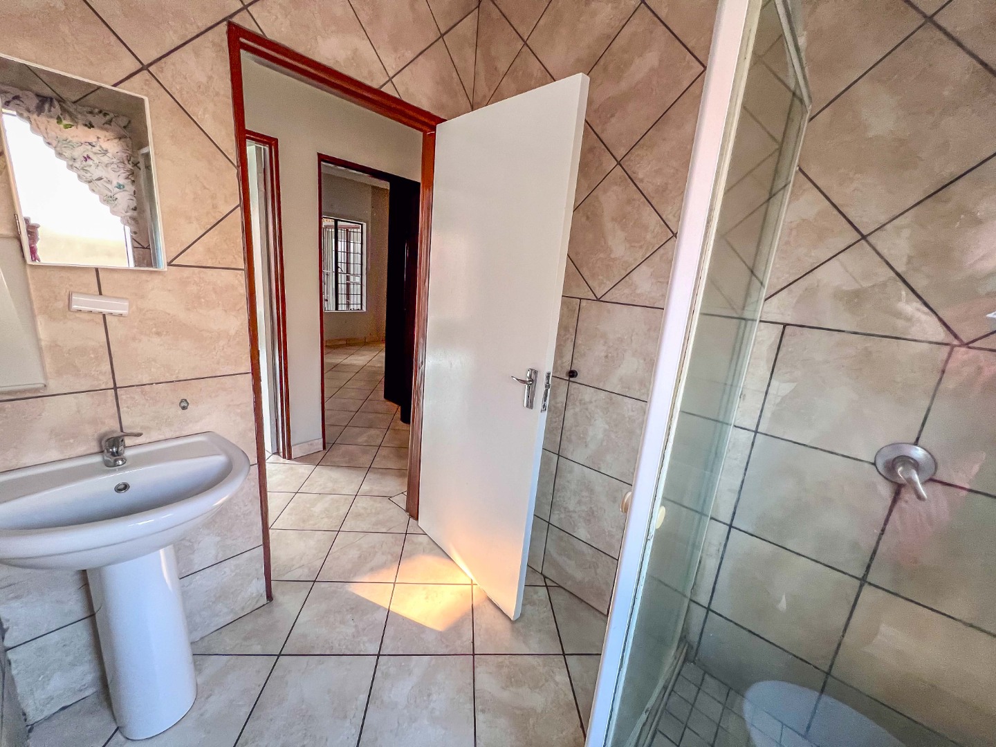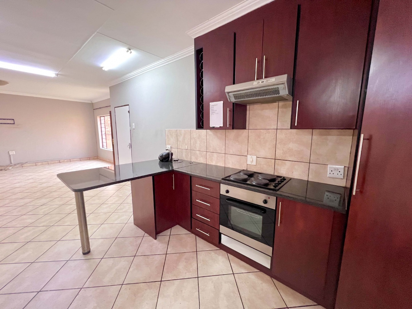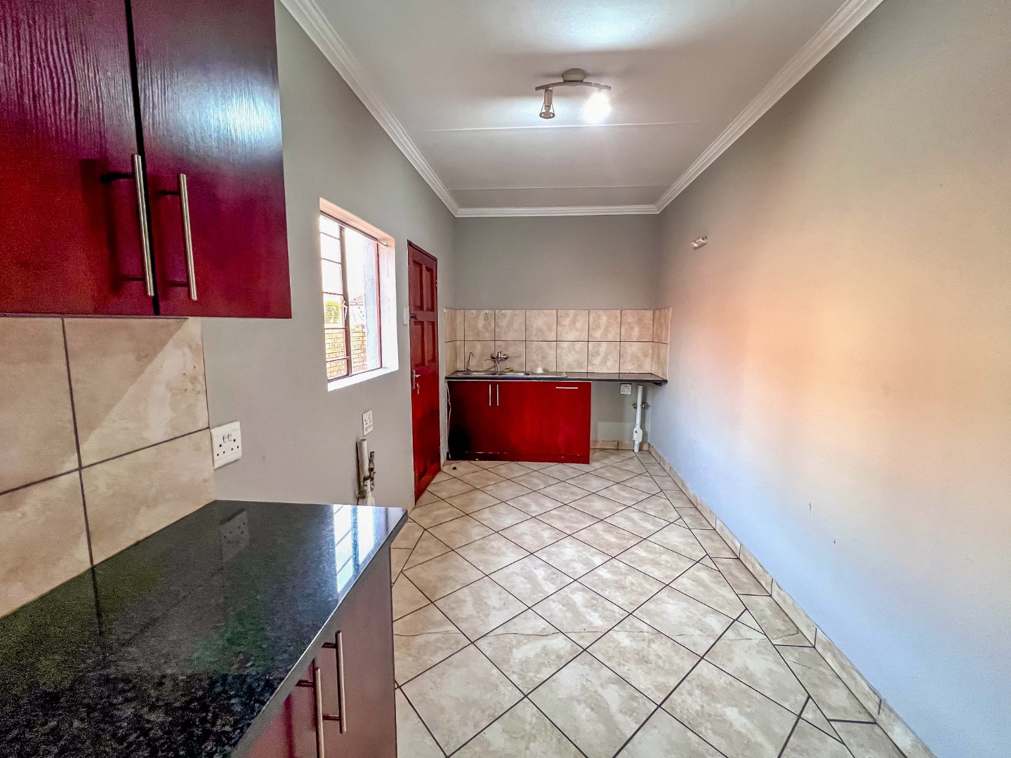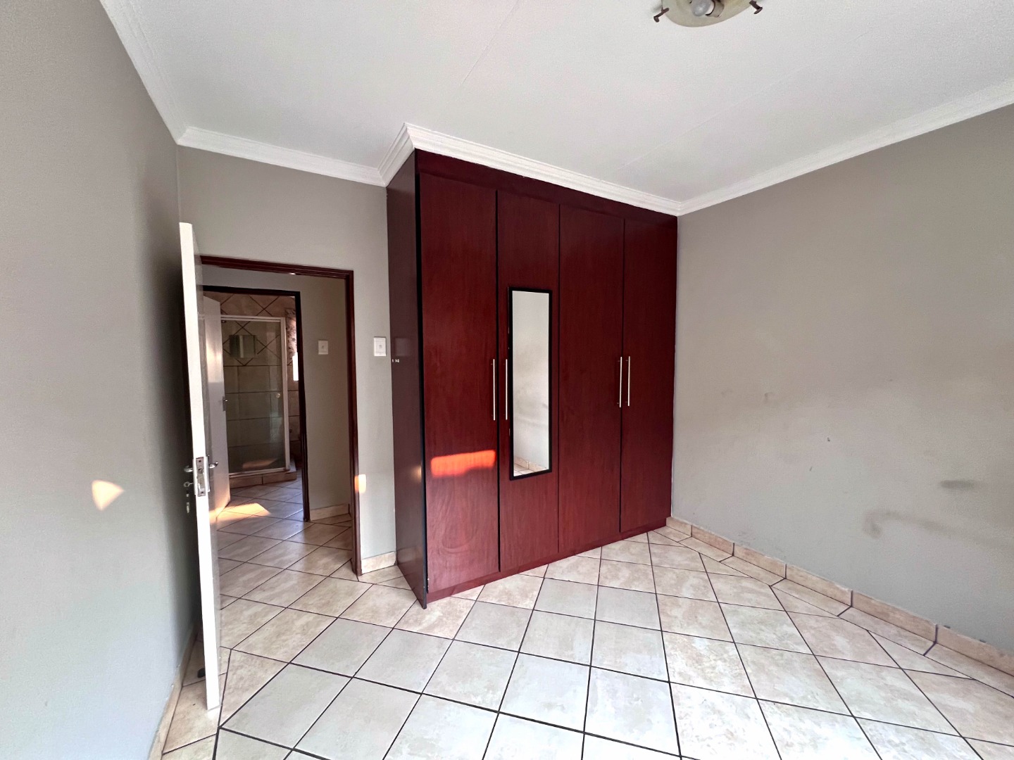 This delightful property offers three spacious bedrooms, two full bathrooms, and a double garage. The main bedroom includes ample cupboard space for your convenience. The living area opens up to a stoep with a built-in braai, ideal for entertaining guests. You’ll also enjoy a private back garden, perfect for relaxation.
