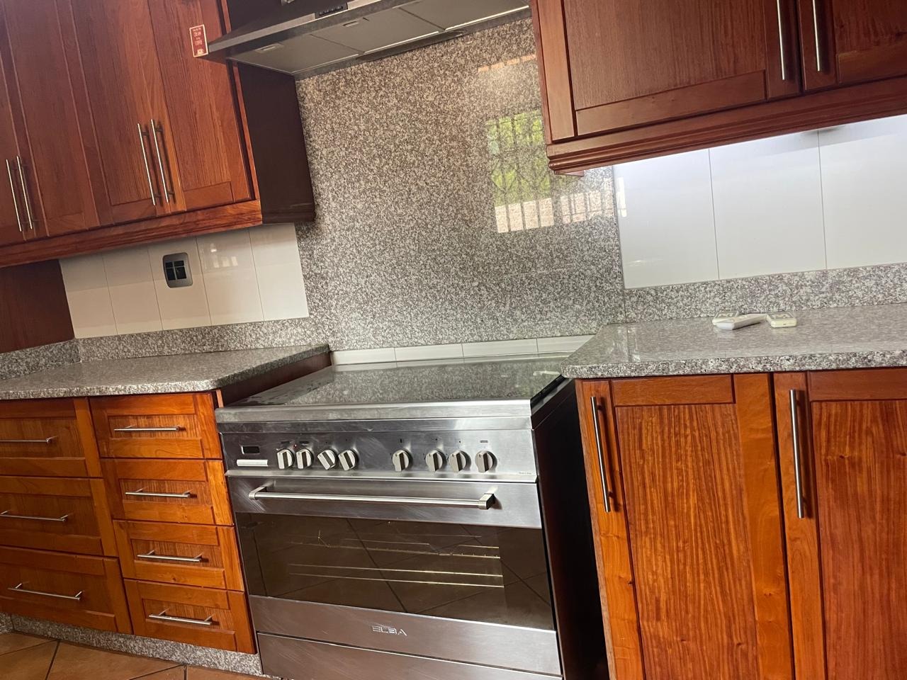 Emphasizing sustainability and efficiency, the home is equipped with solar panels and a solar geyser, contributing to reduced utility costs. A borehole and water tanks further enhance water resilience, providing a reliable water supply. For peace of mind, burglar bars are fitted on windows, and air conditioning ensures comfort throughout the seasons, making this a secure and energy-conscious rental option.