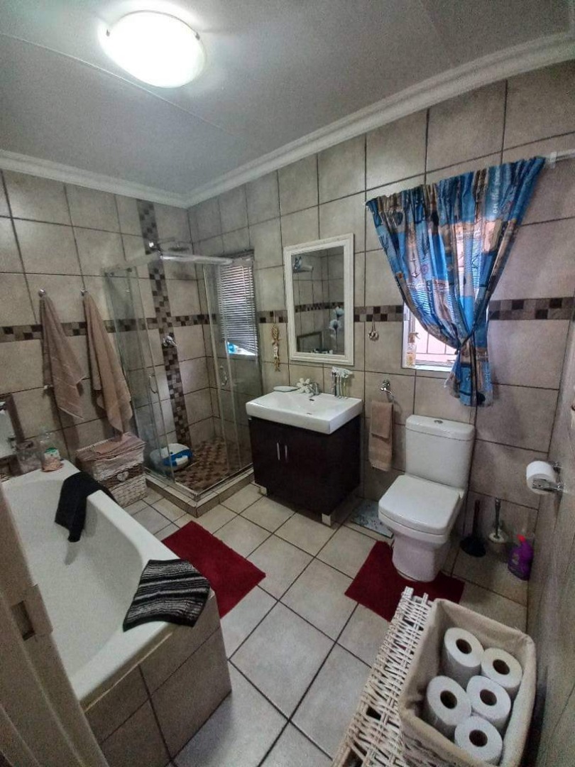 This inviting 3-bedroom, 2-bathroom home is available for rent in the suburban area of Kanonkop, Middelburg. The interior boasts a functional open-plan layout, seamlessly connecting the dining area with the kitchen and living space. Throughout the home, durable tiled flooring ensures easy maintenance, complemented by distinctive exposed brick accent walls that add character and a modern industrial touch. The kitchen is well-appointed with dark cabinetry and features a convenient breakfast bar, ideal for casual dining or entertaining. Modern track lighting illuminates the main living areas, enhancing the contemporary feel. The property offers excellent outdoor amenities, including a double garage and a paved driveway with an additional carport, providing ample secure parking for residents and guests. The exterior features a well-maintained green lawn area, bordered by practical brick paving, creating a pleasant outdoor space for relaxation. Brick boundary walls enhance privacy and security, contributing to a comfortable living environment. Designed for practical living, this home is well-suited for families or professionals seeking a comfortable and accessible rental property. Security features include burglar bars on windows, providing peace of mind. While some areas show signs of ongoing updates, the core structure and features offer a solid foundation for a welcoming home. Kanonkop is a well-established suburban neighbourhood in Middelburg, offering a tranquil residential atmosphere. Residents benefit from convenient access to local amenities, schools, and transport routes, making it a desirable location for those seeking a balanced lifestyle. Key Features: * 3 Bedrooms, 2 Bathrooms * Open-plan Living & Dining Area * Modern Kitchen with Breakfast Bar * Tiled Flooring Throughout * Exposed Brick Accent Walls * Double Garage & Carport * Paved Driveway & Garden Area * Suburban Location