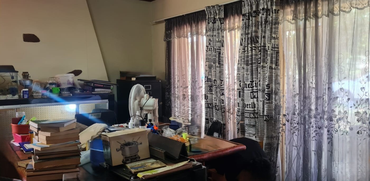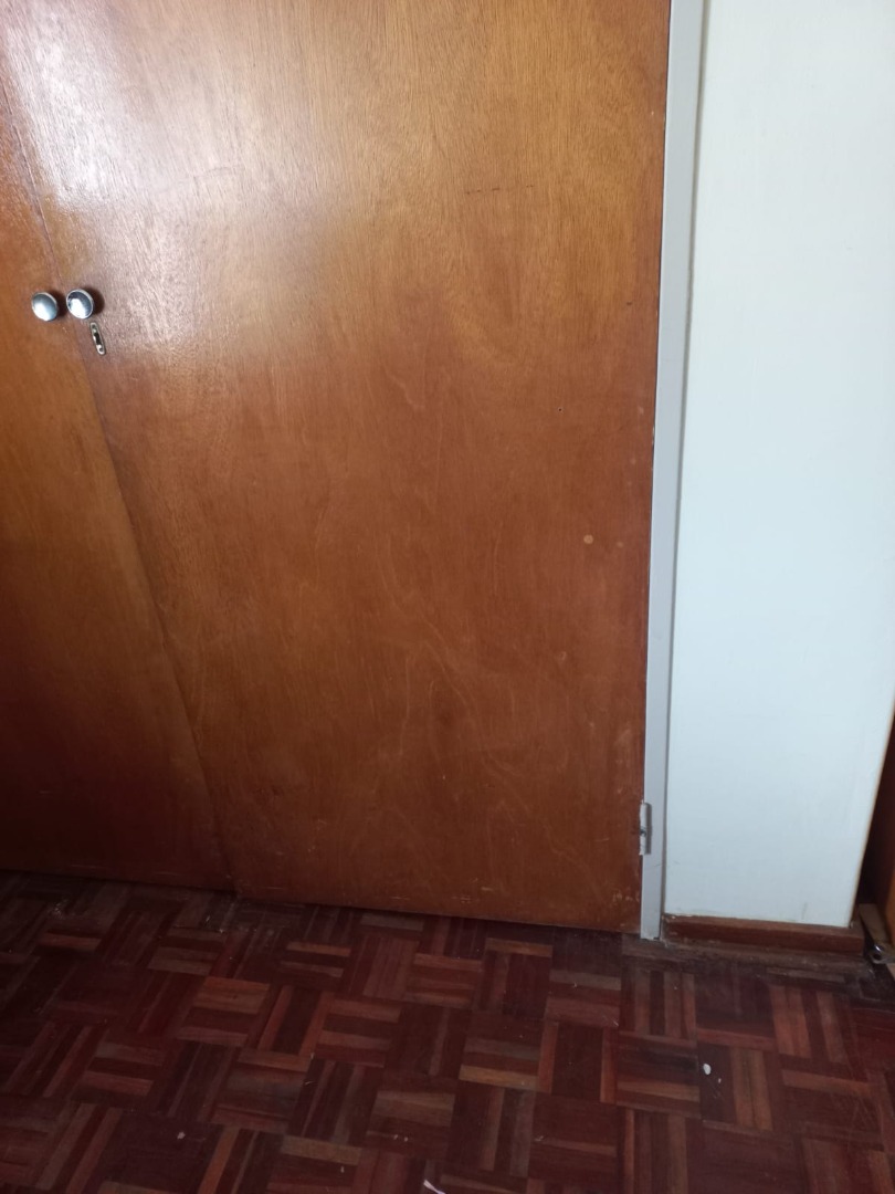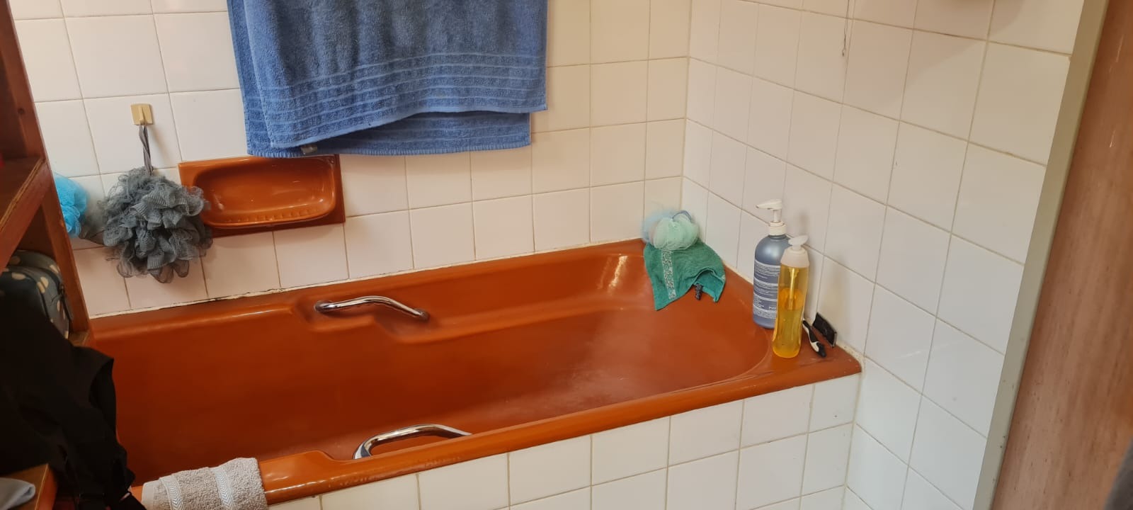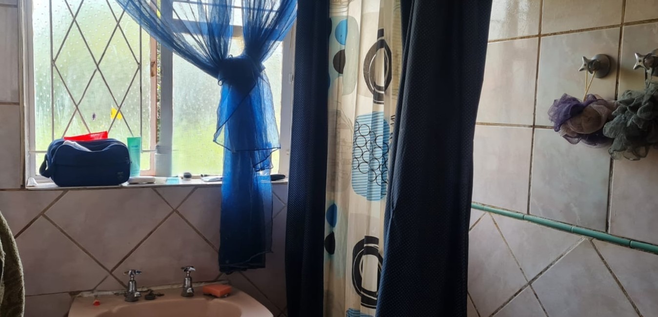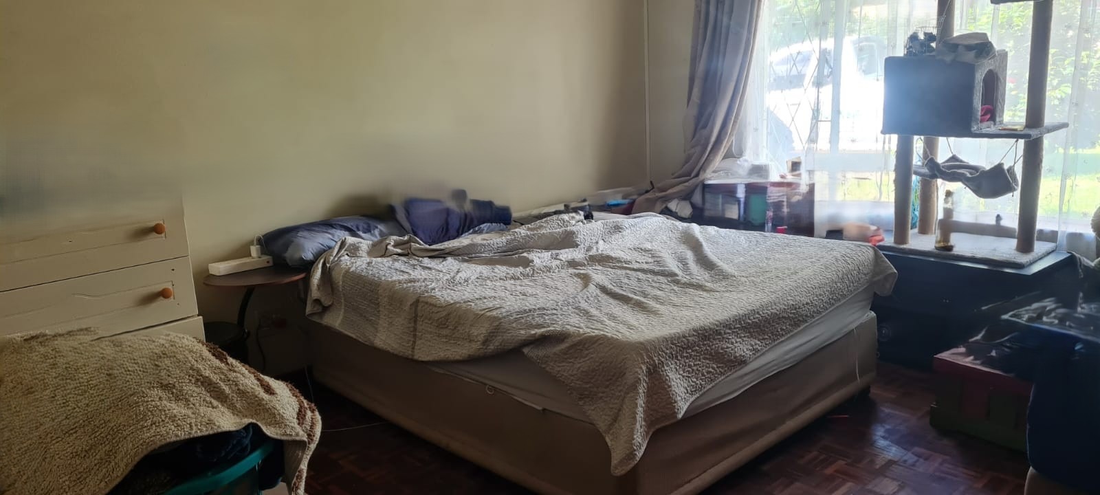 This spacious 4-bedroom, 2-bathroom residence, including one en-suite, offers comfortable living in the suburban area of Kanonkop, Middelburg. The home has a dedicated lounge and dining room, providing ample space for relaxation and entertaining. The kitchen, while presenting a dated aesthetic, boasts numerous cabinets for storage, a tiled backsplash, and accommodates a modern stainless steel side-by-side refrigerator. Good counter space is available, awaiting a tenant's personal touch to modernise. Throughout certain areas, you'll find classic parquet wood flooring and a natural wood plank ceiling, adding character to the interior.