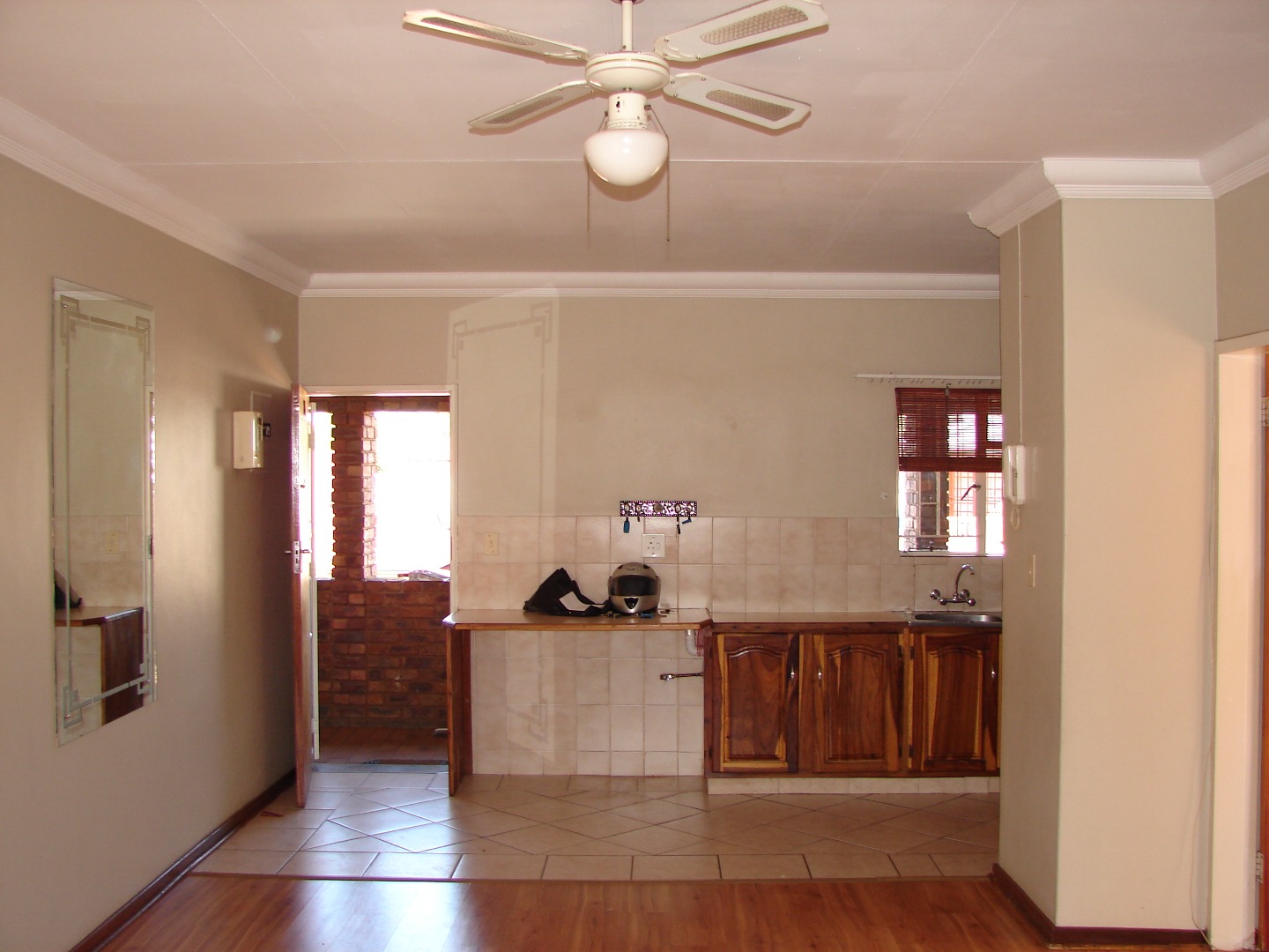 Discover comfortable living in this inviting 1-bedroom, 1-bathroom apartment located within a well-established residential development. This rental property offers a functional layout, featuring a dedicated lounge area and a practical kitchen. The kitchen is equipped with ample wooden cabinetry, tiled floors, and a freestanding stove, providing a convenient space for daily meal preparation. The bathroom includes tiled finishes and a bathtub with an integrated shower screen. An open-plan living area seamlessly connects to a private balcony, offering an ideal spot for relaxation or enjoying the suburban surroundings. Additionally, a versatile enclosed brick-walled room with a window provides extra space, perfect for a small study or a cozy reading nook. Residents benefit from well-maintained communal grounds featuring lush lawns and mature trees, enhancing the property's appeal. This lock-up-and-go unit is ideal for a single professional or a couple seeking a secure and manageable living space. Security features include burglar bars, a security gate, and an access gate, ensuring peace of mind within this suburban environment. Situated in Middelburg Central, this property offers convenient access to local amenities and transport links, making it a practical choice for those seeking a central location. Key Features: * 1 Bedroom, 1 Bathroom * 1 Lounge, 1 Kitchen * Private Balcony * Secure Residential Development * 1 Parking Bay * Burglar Bars & Security Gate * Access Gate * Well-maintained Grounds