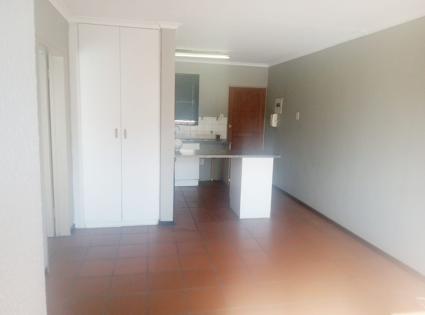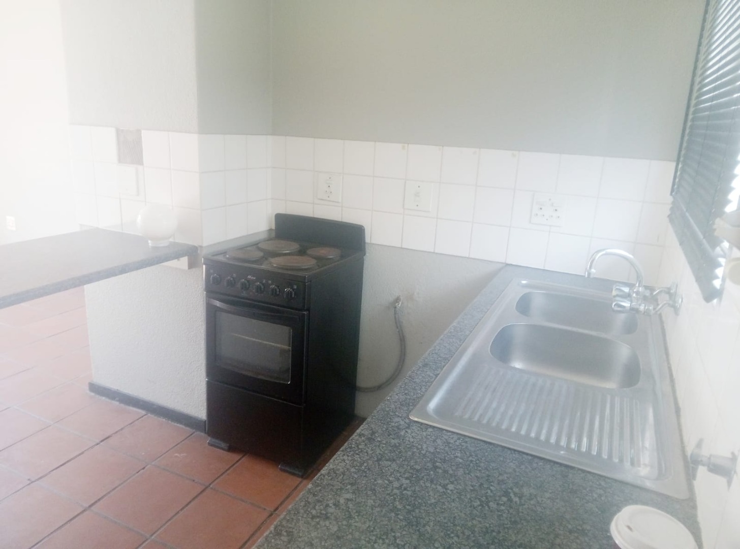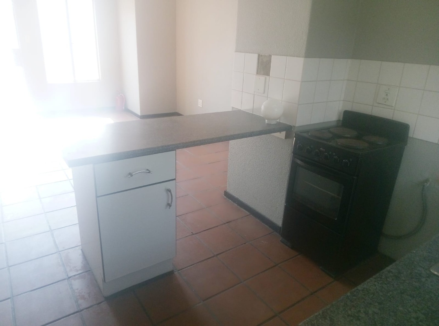 The unit includes a well-appointed bathroom with a bathtub and integrated shower, catering to all your needs. Built-in cupboards offer practical storage solutions, contributing to the unit's efficient design. Residents of this complex can also enjoy access to communal amenities, including a refreshing swimming pool and a lapa, perfect for relaxation and social gatherings.