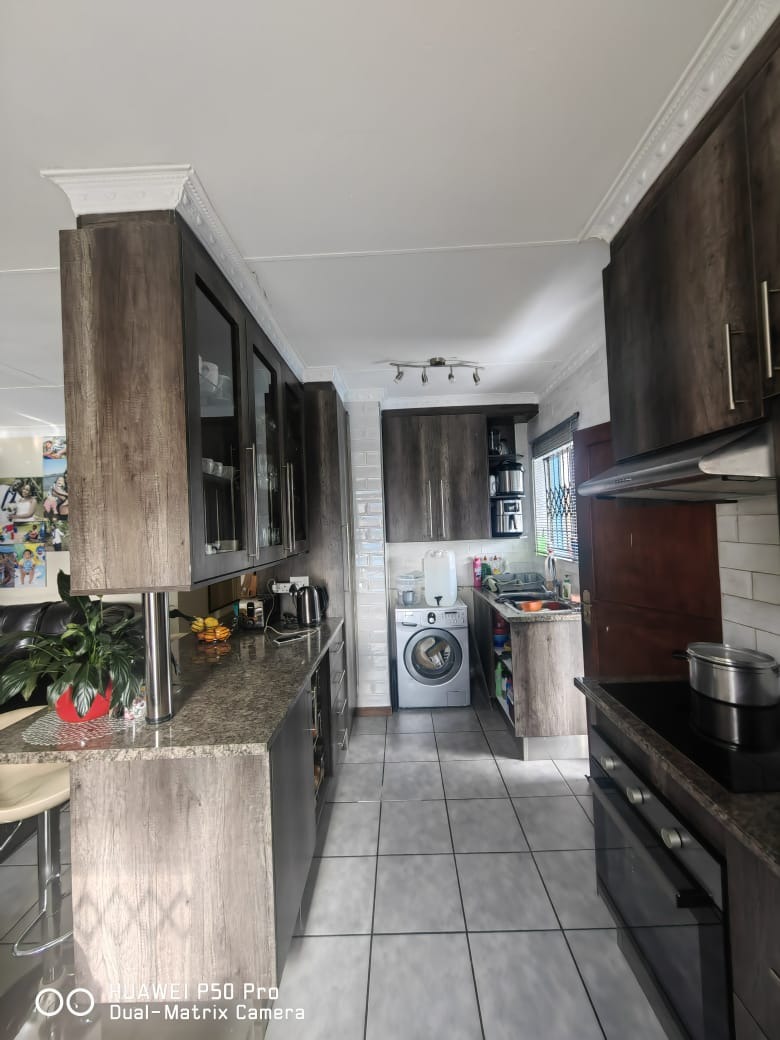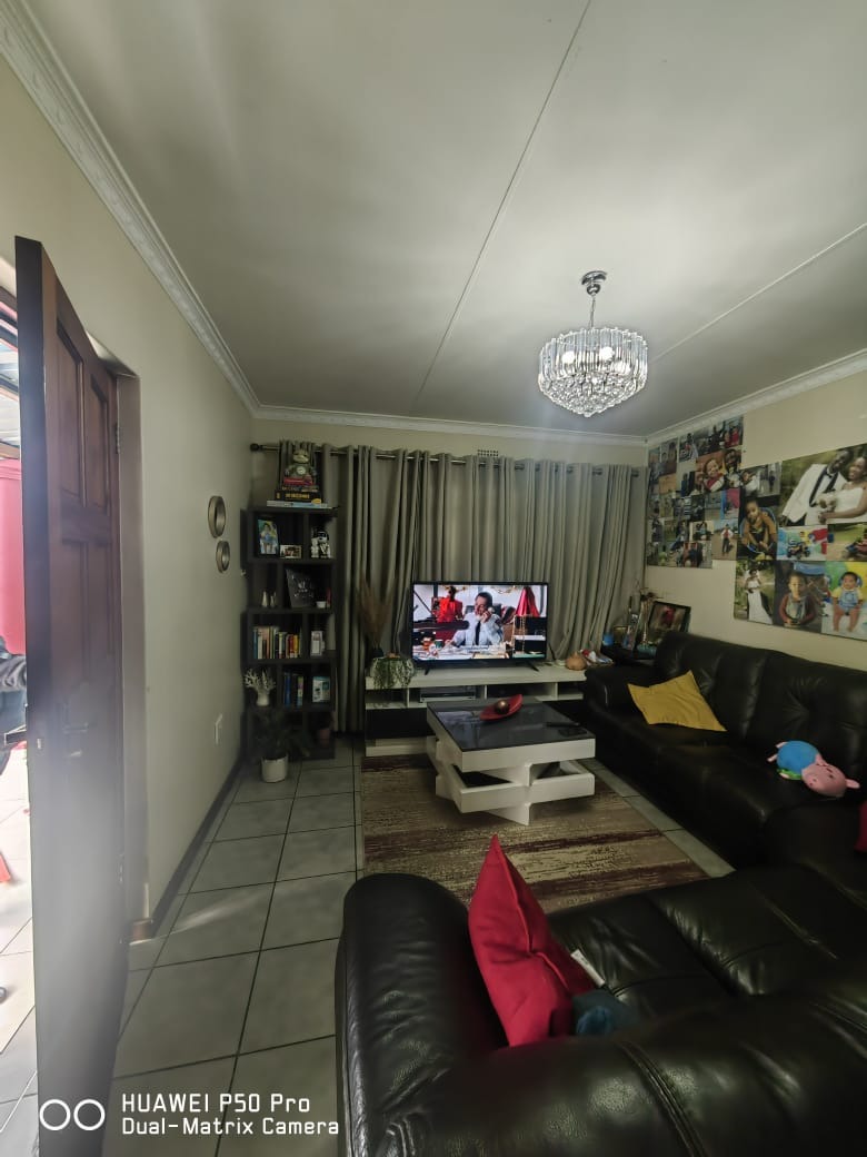 A charming 3-bedroom house in Sam Rose Valley featuring built-in cupboards, with the main bedroom offering an en-suite bathroom. The home boasts a modern open-plan kitchen, dining, and living room, as well as a carport for 2 cars. It is conveniently located near Columbus and other industrial areas, providing easy access to the N4. The property includes a walled yard and a secure gate.